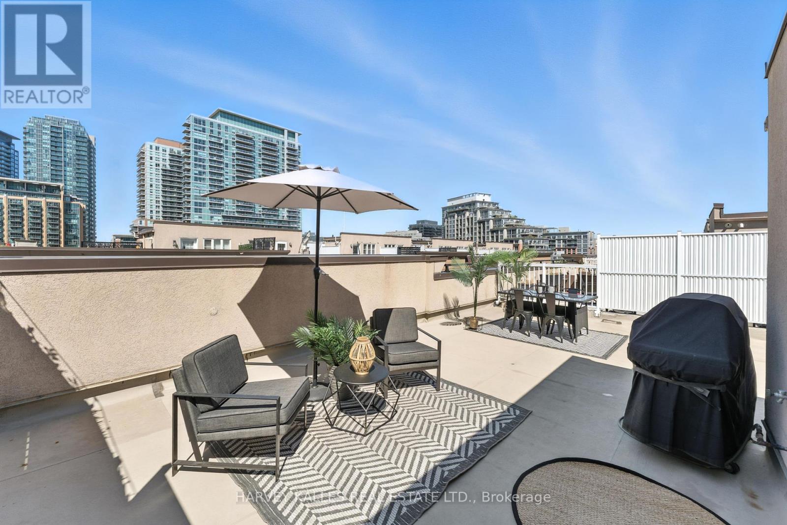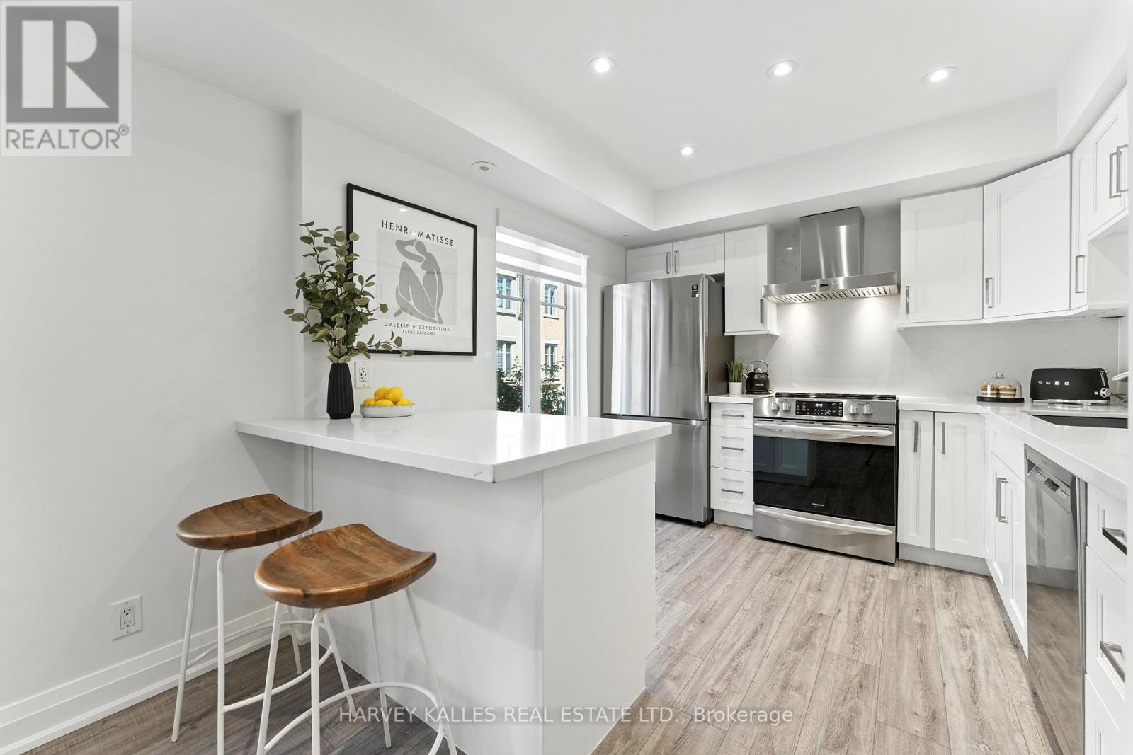Rarely offered, this stunning 2+1 bedroom, 3 bathroom executive townhome is the largest model in the complex, featuring 2,047SF of total liveable space (1,565SF interior plus a 482SF private rooftop terrace). Set in a vibrant, central location with a true neighborhood vibe, this beautifully renovated home offers an elegant and spacious alternative to typical "cookie cutter" condo living. The wide layout is filled with natural light from six west-facing windows and has been thoughtfully updated throughout with high-end finishes and attention to detail. The main floor offers formal living and dining areas, a versatile den that can serve as a home office, third bedroom, or secondary dining room, a stylish powder room, and a stunning chefs kitchen with ample storage, premium appliances, and a breakfast bar. Upstairs, you'll find a generously sized second bedroom, a full 4-piece bathroom, and a convenient upper-level laundry area. The impressive 15' x 17' primary suite features a walk-in closet and a spa-inspired 3-piece ensuite bathroom. Enjoy outdoor living at it's finest on the expansive rooftop terrace, perfect for entertaining, relaxing, or gardening, with open views in all directions. This home also includes a storage locker and a premium underground parking spot located right at the entrance to the garage. Move-in ready and truly one of a kind! (id:51158)