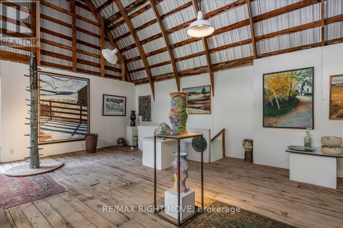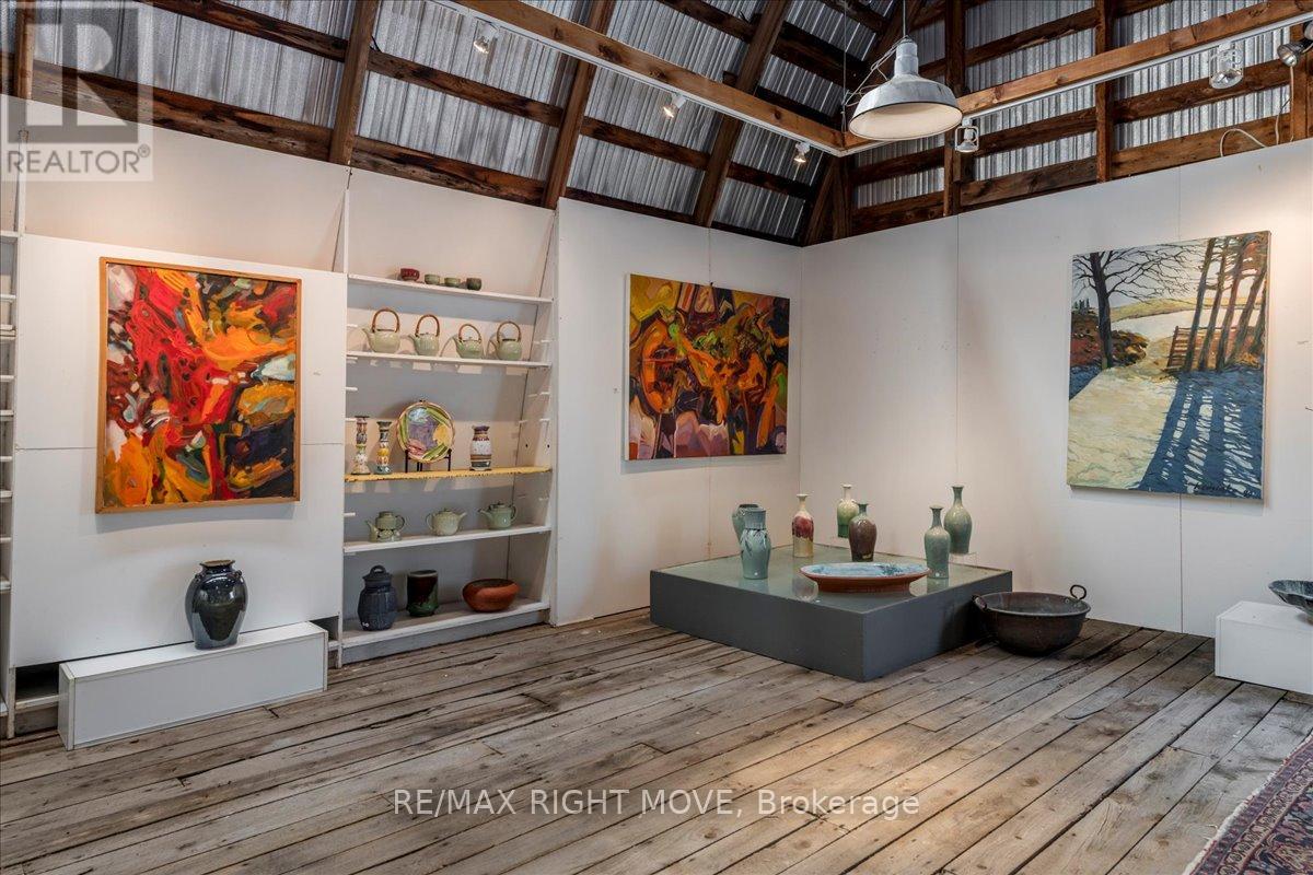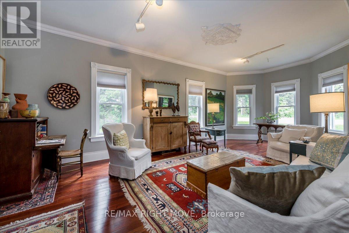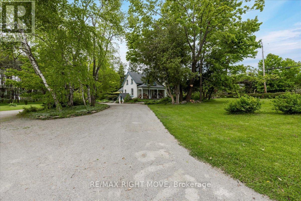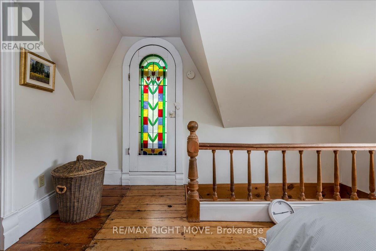 Step back in time at this beautifully preserved 1830s storybook home nestled in the picturesque village of Jarratt. This 1 acre, 4-bedroom, 2-bathroom gem blends vintage charm with thoughtful modern updates. While the original section of the house was built in the 1800s, the Gothic style addition was added in 1910, and once served as the post office and general store in the community. Original hardwood floors flow throughout, complemented by the cozy glow of an airtight wood stoveperfect for peaceful evenings and added ambiance. Custom terracotta tiles span the spacious country kitchen, a space offering both warmth and function, ideal for hosting family and friends. The main floor living room boasts panoramic nature views, and a main floor den provides opportunity for an in-home office or guest room. Two separate staircases to the second floor lead to four bedrooms with ample natural light, and a half bath with an antique clawfoot soaker tub. Major updates allow peace of mind, including a new furnace (2024), new drilled well, and a 2024 roof. The 200 amp electrical panel and in-house generator ensure reliability, while Bell Fibe Internet is available for high-speed connectivity.Outside youll enjoy a backyard oasis with ample mature trees, gardens, and an interlocking stone patio. Another star feature is the versatile 50 x 20 barn, featuring two full floors, hydro, gas heater, cold running water, and an insulated sliding glass door. Whether you're seeking a hobby space, workshop, or future studio, the possibilities are endless. Plus, a drive shed with a gas powered reduction kiln provides additional outdoor storage. Located only minutes away from town and major highways, youll find nature and bike trails in walking distance. Don't miss this rare opportunity to own a piece of history with all the modern amenities in the heart of Jarratt. (id:51158)