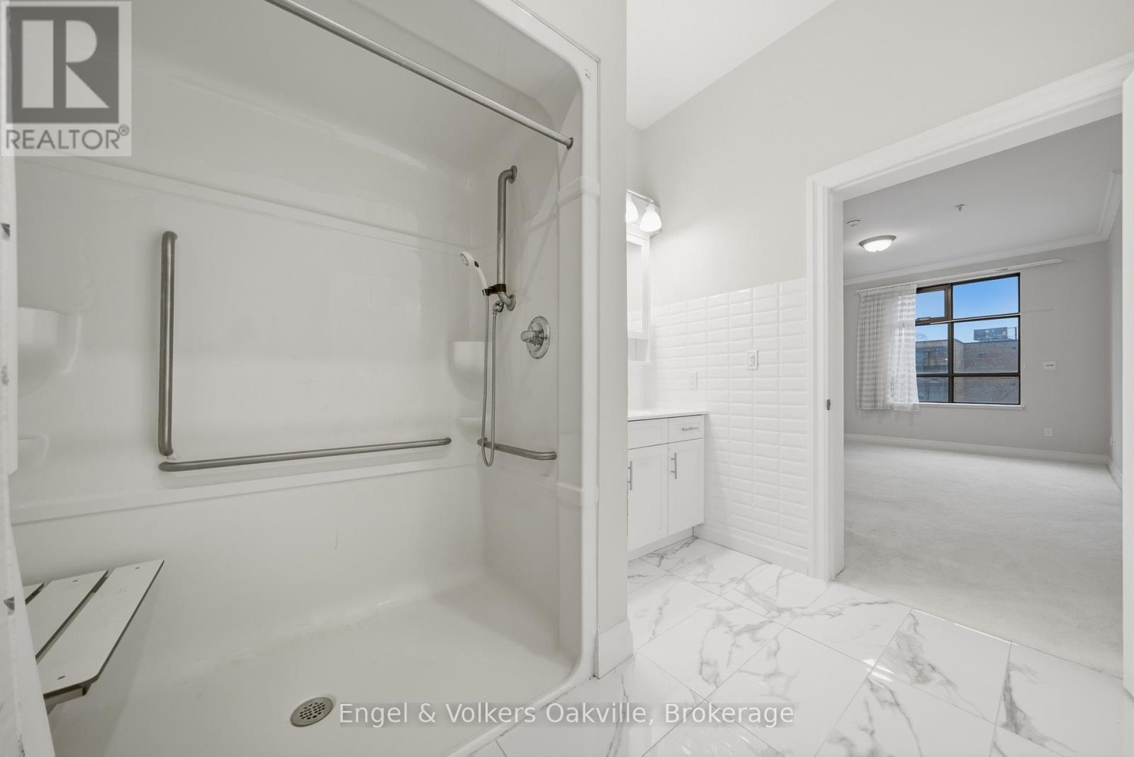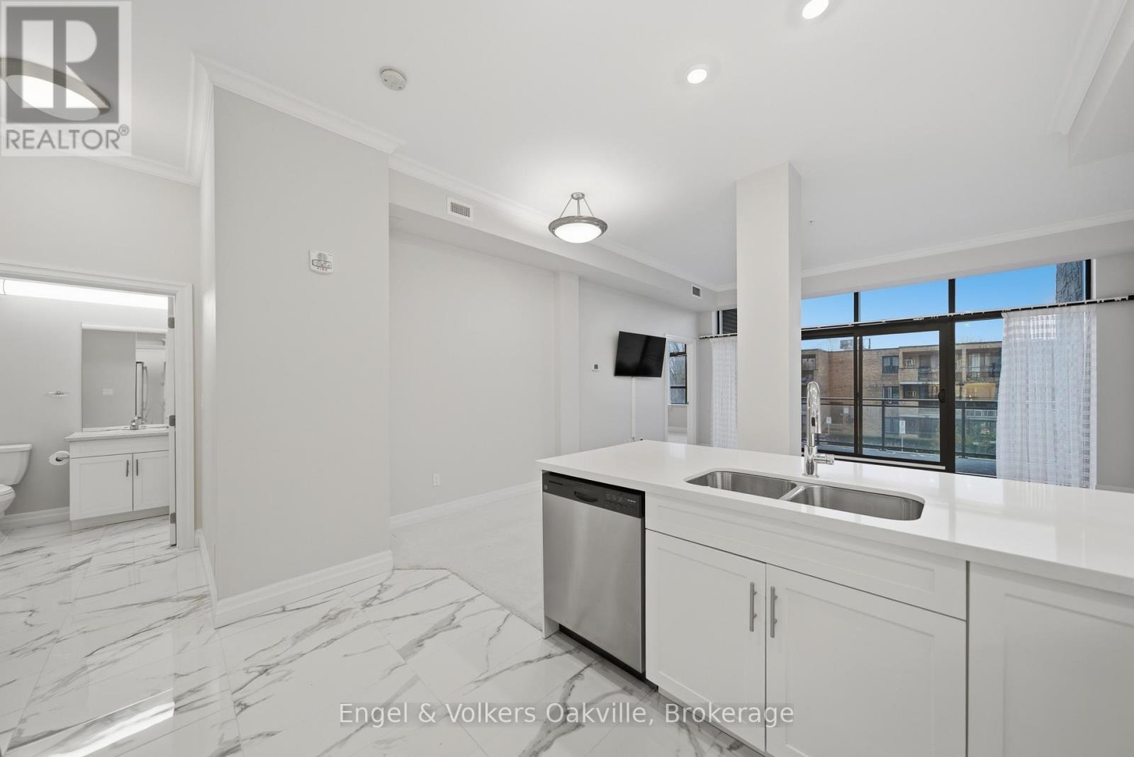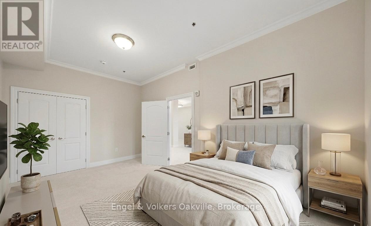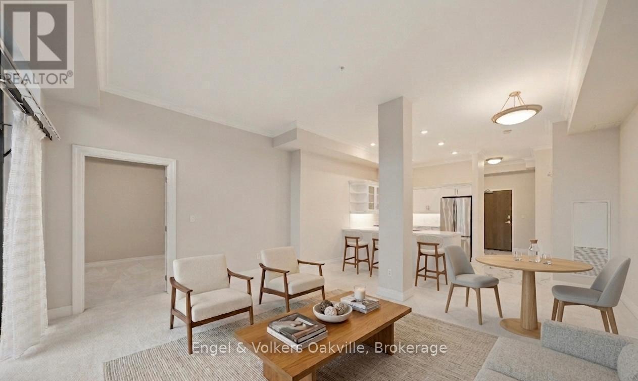 $1,563.85 MonthlyOne of a kind retirement living opportunity in sought-after Maranatha Gardens in a desirable 55+ Community near downtown Burlington.This bright 2 bed and 2 bath main floor corner unit showcasing 1296 sq ft has a private oversized balcony featuring side views of the park area bringing in lots of natural light! Spacious open-concept layout, high ceilings, crown moulding w/smooth ceilings, pot-lights, white kitchen w/ stainless steel appliances and dedicated laundry room. Primary ensuite with roll in shower + grab bars, wheelchair friendly. The building is wheelchair accessible and features excellent amenities including workshop, lounge, fitness and party rooms, terrace, underground parking and lockers. Conveniently located close to shopping, dining, and all downtown amenities south Burlington has to offer! **TAXES INCLUDED IN MONTHLY FEES** No condo information due to Life Lease. Follow Your Dream, Home. (id:51158)