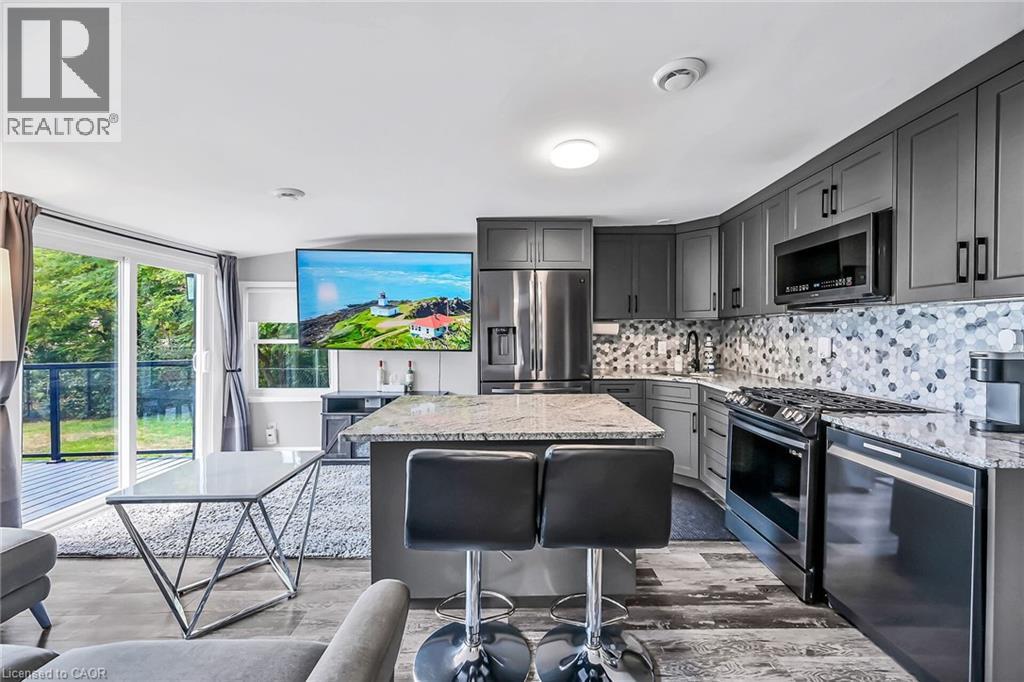 Presenting a stunning four-season Lake Erie home/cottage offering the perfect mix of comfort, investment potential, and breathtaking lake views. This home has received over $100,000 in upgrades in the last three years and is move-in ready. Featuring two bedrooms including a spacious master suite with patio door walkout to a lakeview deck plus a bedroom for guests. Enjoy a brand-new kitchen with granite countertops, marble backsplash, and $20,000 in premium stainless-steel appliances including a stackable washer & dryer. The bathroom has elegant porcelain tiles and a glass-enclosed shower with a rain shower head. Comfort is ensured with forced air furnace, central air-conditioning and efficient radiant heat drawn from the hot water tank into the furnace. Additional improvements include a new 200-amp electrical panel, natural gas hookups, lake-fed seep well, a2000-gal water cistern, 2000 gal holding tank, an insulated crawl space, and attic storage. The exterior features include a glass-railed deck with a comfortable seating area, views of the lake, a premium 2021 Grizzly hot tub from Arctic Spas, and a fully fenced yard. Enjoy deeded access to a private sand beach just steps from the property, including a parking space. The Port Maitland pier/lighthouse, marina, sailing club, golf club and public boat launch are all within walking distance. Enjoy all that the Lake Erie lifestyle has to offer; great fishing, bird watching, boating, watersports, bonfires, beautiful sunrises & sunsets or just leisurely strolls along the shoreline. Dunnville’s amenities and the hospital are about a 10-min drive. Hamilton, Niagara or Toronto are about 1 to 2 hour commutes. For builders or those dreaming bigger, the sale includes previously home plans for a brand-new dwelling with a walkout basement and garage. Whether seeking a personal retreat, an income-generating property, or an optimal site for custom construction, this lakeside residence delivers versatility and value. (id:51158)