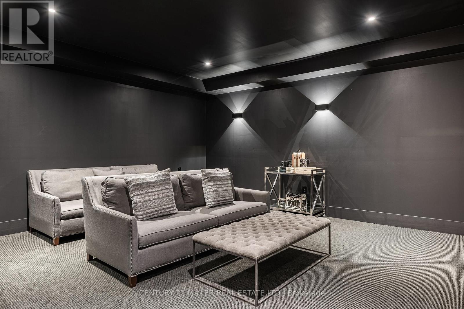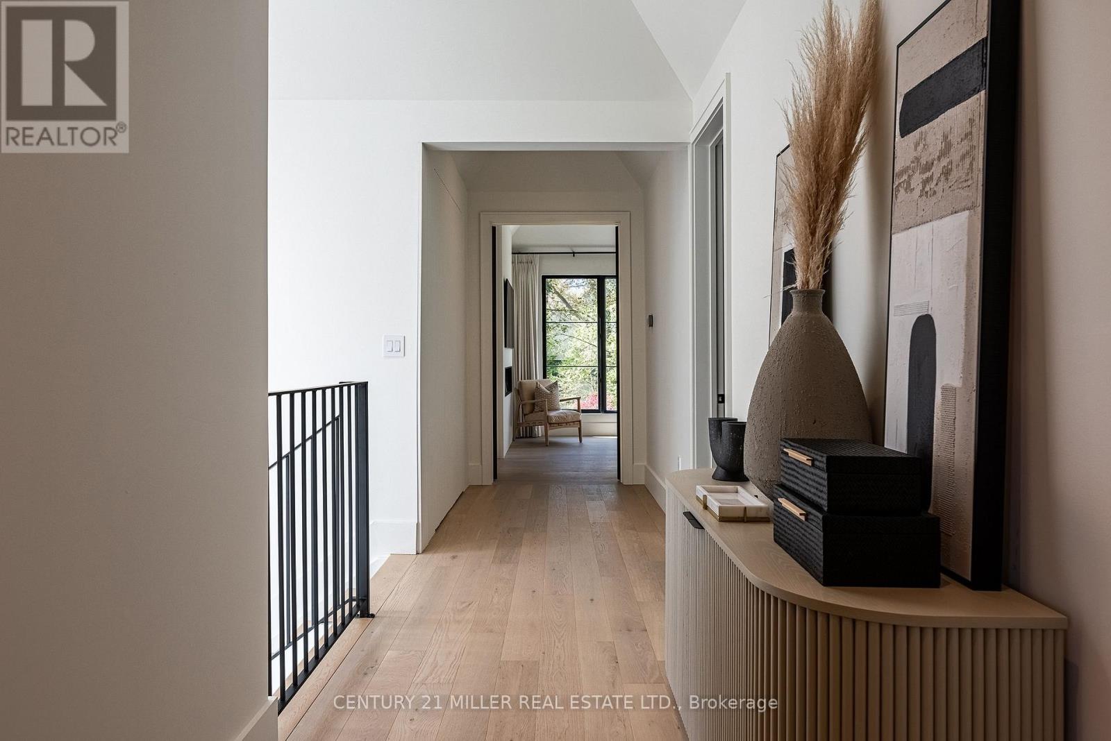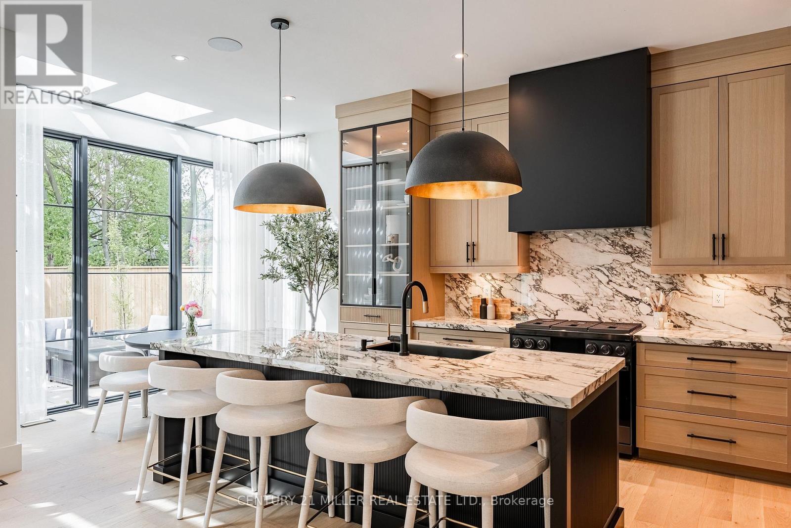 Located in one of Oakville's most desirable pockets this new custom home creates a stylish atmosphere that will impress even the most detailed buyer. Architecture by Hicks Design Studio and built by Gasparro Homes this home features over 3,100 square feet above grade as well as a rare double car garage. The transitional design layered with soft textures and high-end light fixtures make it the ultimate retreat! The foyer provides a clean sightline through the rear of the home which highlights the near floor to ceiling windows. Double metal French doors, with beveled privacy glass, lead you into the home office with wall-to-wall cabinetry. From the dining room, walk through the butlers pantry into the open concept kitchen and family room. The kitchen, by Barzotti Woodworking, is extremely functional and features white oak cabinetry with black/glass accents, an oversized island, and cozy breakfast nook. The second level of this home has a bright and airy feel with gorgeous skylights and semi-vaulted ceilings in every room allowing for extended ceiling heights. The primary suite spans the rear of the home with stylish ensuite and large walk-in closet with custom organizers. Two additional bedrooms share access to a jack-and-jill washroom. The final bedroom upstairs enjoys its own private ensuite and has a walk-in closet. The lower level of this home features 10ft ceilings and radiant in floor heating. The recreation room, with custom wet bar overlooks the glass enclosed home gym. A fifth bedroom along with full washroom is also found on this level. This level is finished off with a cozy home theatre. This home also features two furnaces and two air conditioners for ultimate home comfort. The private rear yard is freshly landscaped with a full irrigation system as well as landscape lighting. The back patio features retractable screens and naturally extends the indoor living space. The ultimate turn-key package. (id:51158)