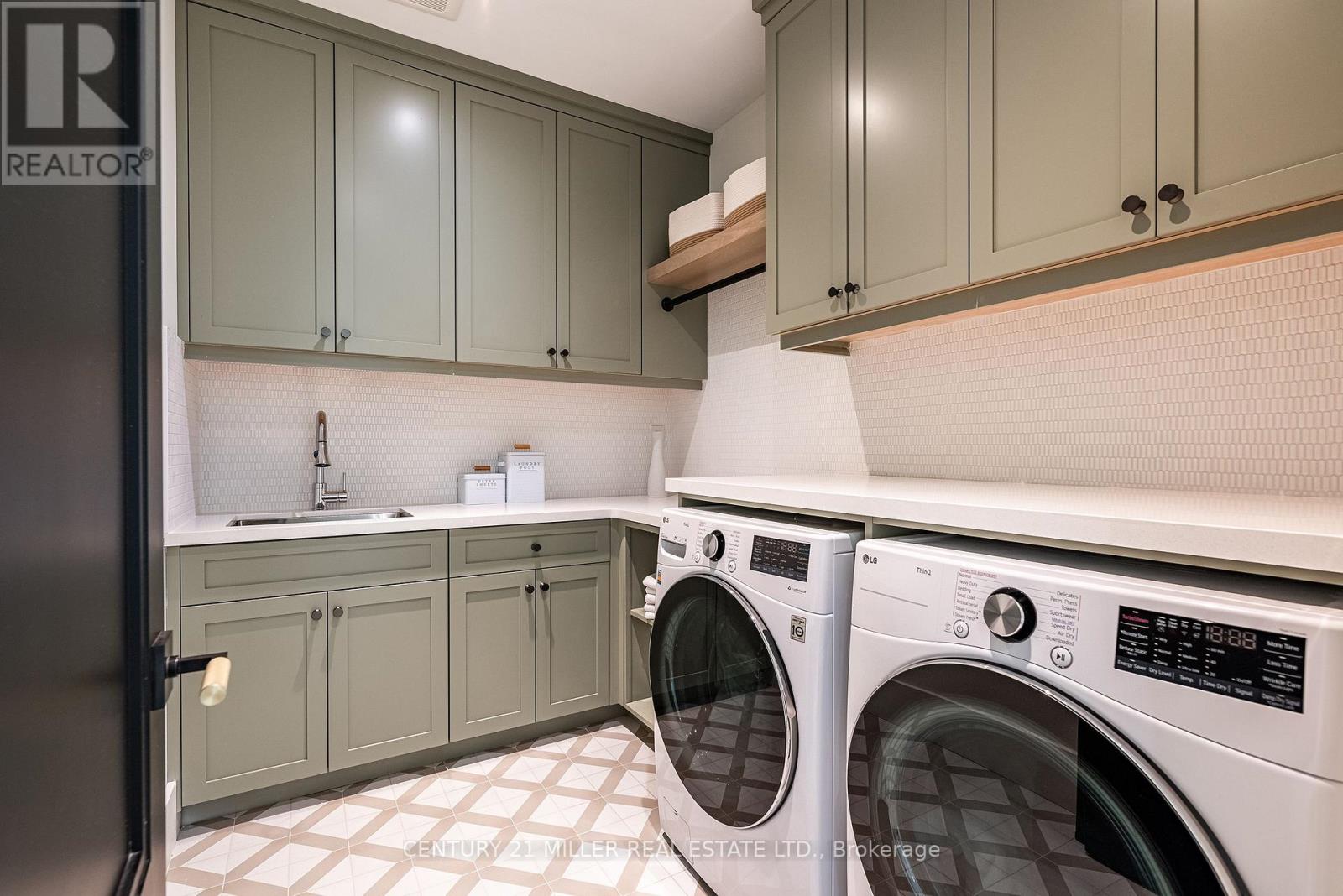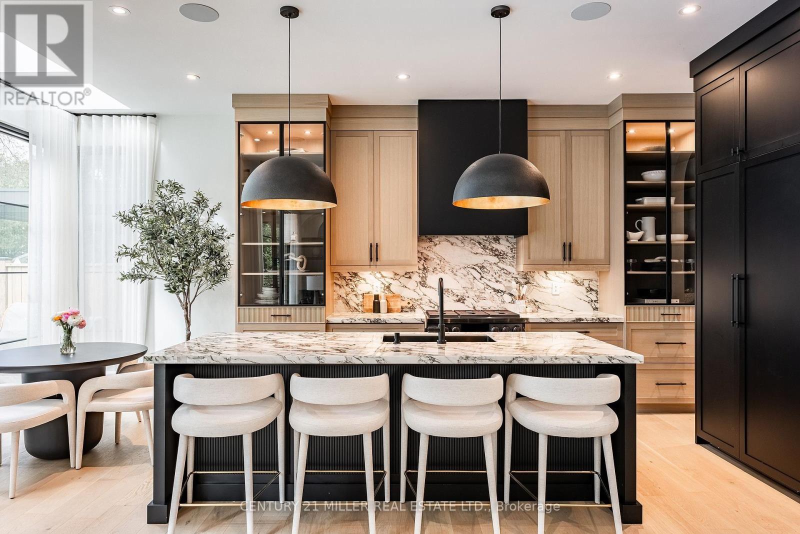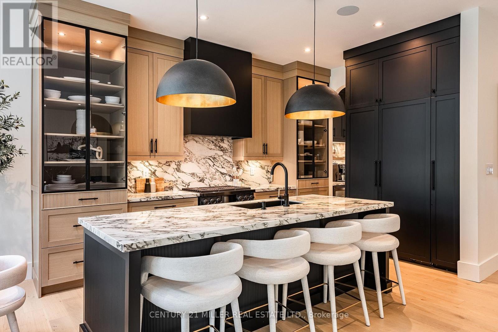 Located in one of Oakville's most desirable pockets this new custom home creates a stylish atmosphere that will impress even the most detailed buyer. Architecture by Hicks Design Studio and built by Gasparro Homes this home features over 3,100 square feet above grade as well as a rare double car garage. The transitional design layered with soft textures and high-end light fixtures make it the ultimate retreat! The foyer provides a clean sightline through the rear of the home which highlights the near floor to ceiling windows. Double metal French doors, with beveled privacy glass, lead you into the home office with wall-to-wall cabinetry. From the dining room, walk through the butlers pantry into the open concept kitchen and family room. The kitchen, by Barzotti Woodworking, is extremely functional and features white oak cabinetry with black/glass accents, an oversized island, and cozy breakfast nook. The second level of this home has a bright and airy feel with gorgeous skylights and semi-vaulted ceilings in every room allowing for extended ceiling heights. The primary suite spans the rear of the home with stylish ensuite and large walk-in closet with custom organizers. Two additional bedrooms share access to a jack-and-jill washroom. The final bedroom upstairs enjoys its own private ensuite and has a walk-in closet. The lower level of this home features 10ft ceilings and radiant in floor heating. The recreation room, with custom wet bar overlooks the glass enclosed home gym. A fifth bedroom along with full washroom is also found on this level. This level is finished off with a cozy home theatre. This home also features two furnaces and two air conditioners for ultimate home comfort. The private rear yard is freshly landscaped with a full irrigation system as well as landscape lighting. The back patio features retractable screens and naturally extends the indoor living space. The ultimate turn-key package. (id:51158)