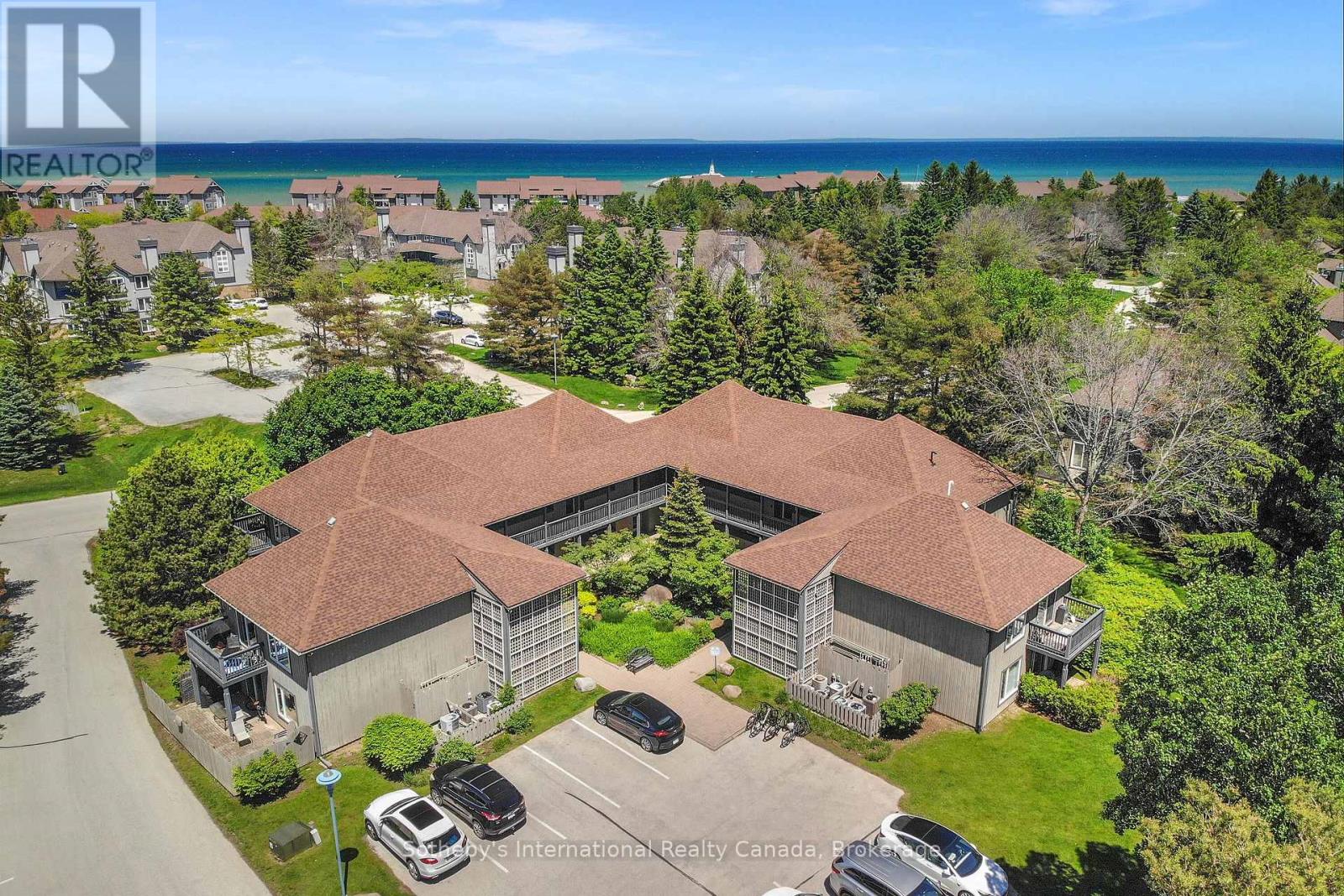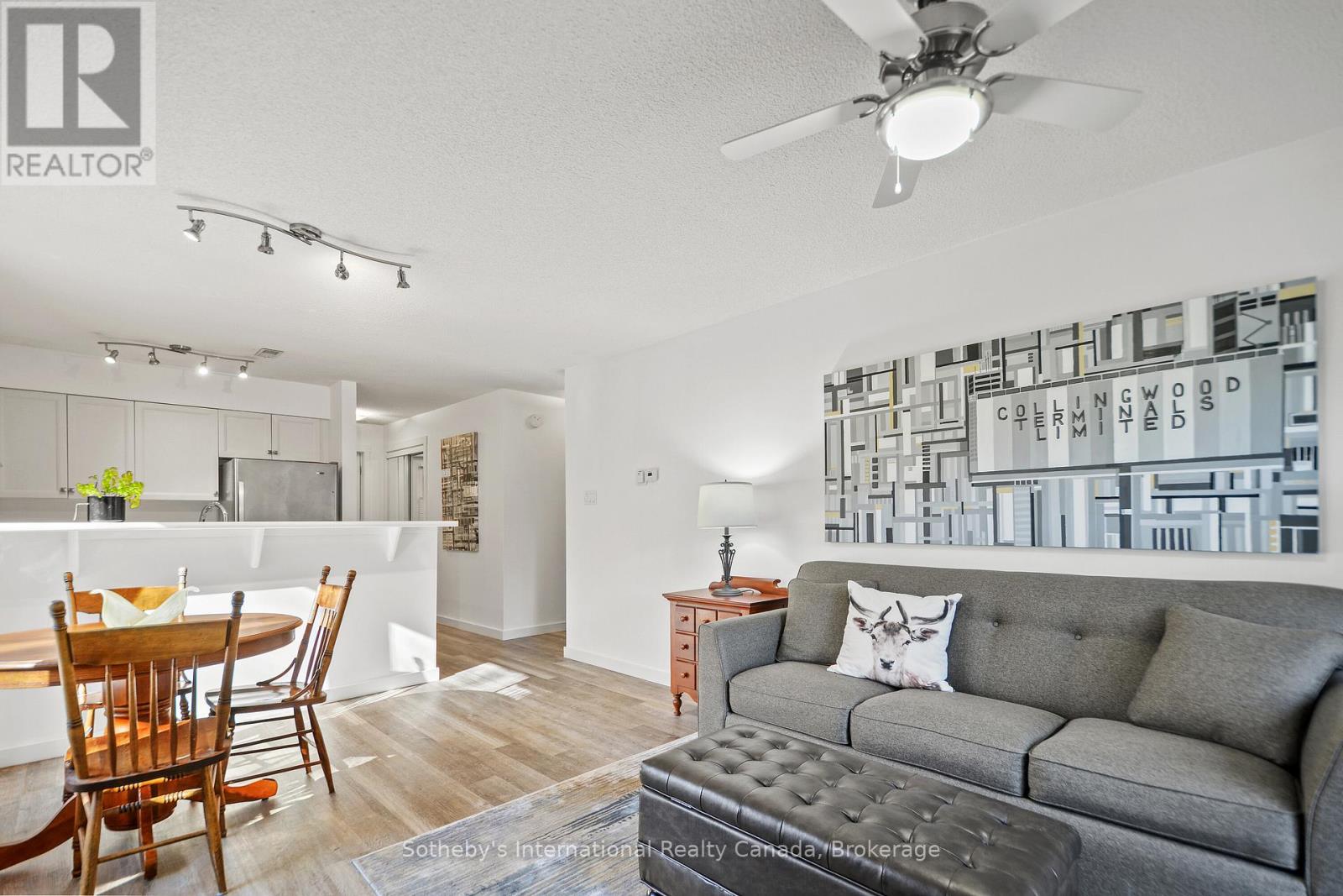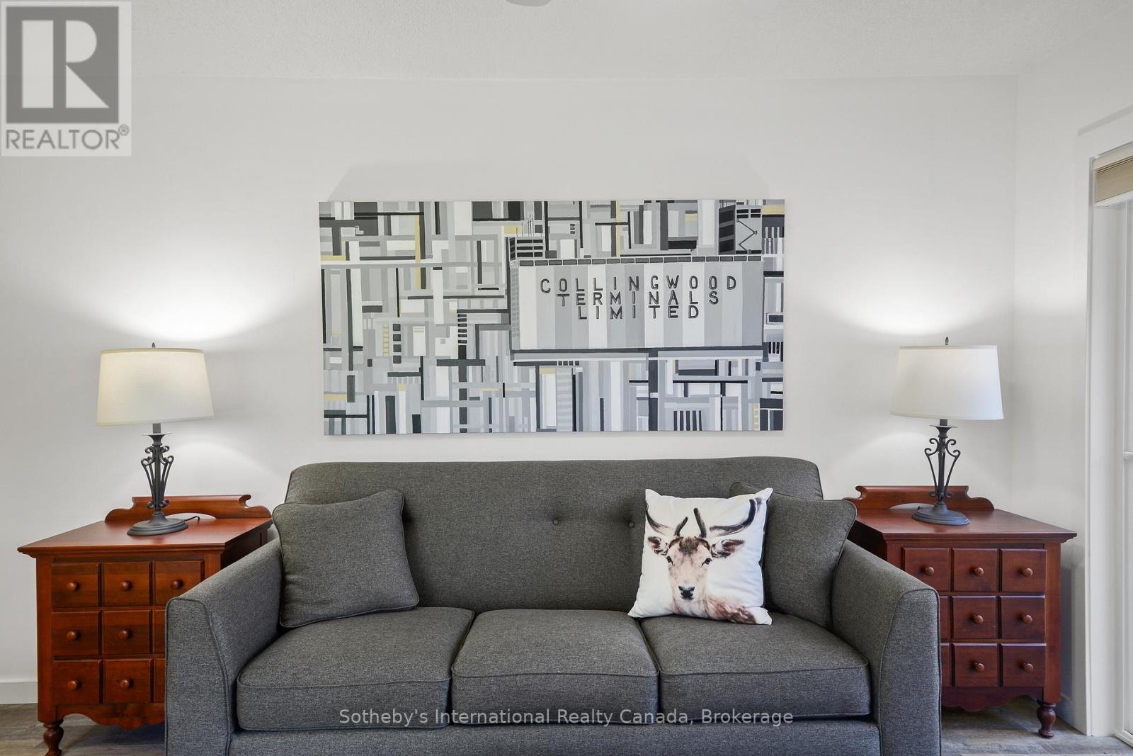 This 2 bedroom, 2 bathroom, 2nd floor unit has gorgeous forest\\landscape views out of the primary suite and living area. An open and bright livingroom with gas f/p, dining area and kitchen that features stainless steel appliances. The Primary suite has double closets and ensuite bath with shower. One large guest bedroom plus a second full bath. Enjoy over 1 mile of walking paths in the community, with over 10 acres of environmentally protected lands including a private marina and boat house, 7 tennis courts, 4 pickleball courts, 2 outdoor pools, a sandy beach, two additional beaches and a deep swimming area off the yacht pier, a volleyball court, kayak racks\\access and putting green. The recreation centre is huge and has an indoor pool, spas, sauna, gym, games room, library, double kitchen, outdoor patio seating, social room with piano and more! Just minutes to shopping or entertainment at the Gayety Theatre, the ski hills at Blue Mountain, and on route to the quaint town of Thornbury, not to mention having Georgian Bay and Wasaga Beach at your finger tips!. Updates include; flooring and trim (2024), water heater (2023), windows (2021), gas line to BBQ (2019). The deck has a view of beautiful trees\\forest which provides a very private and enjoyable outdoor experience. You would own two outdoor storage lockers and have access to two more common storage areas. There is one parking space with additional guest parking in the immediate parking area. (id:51158)
