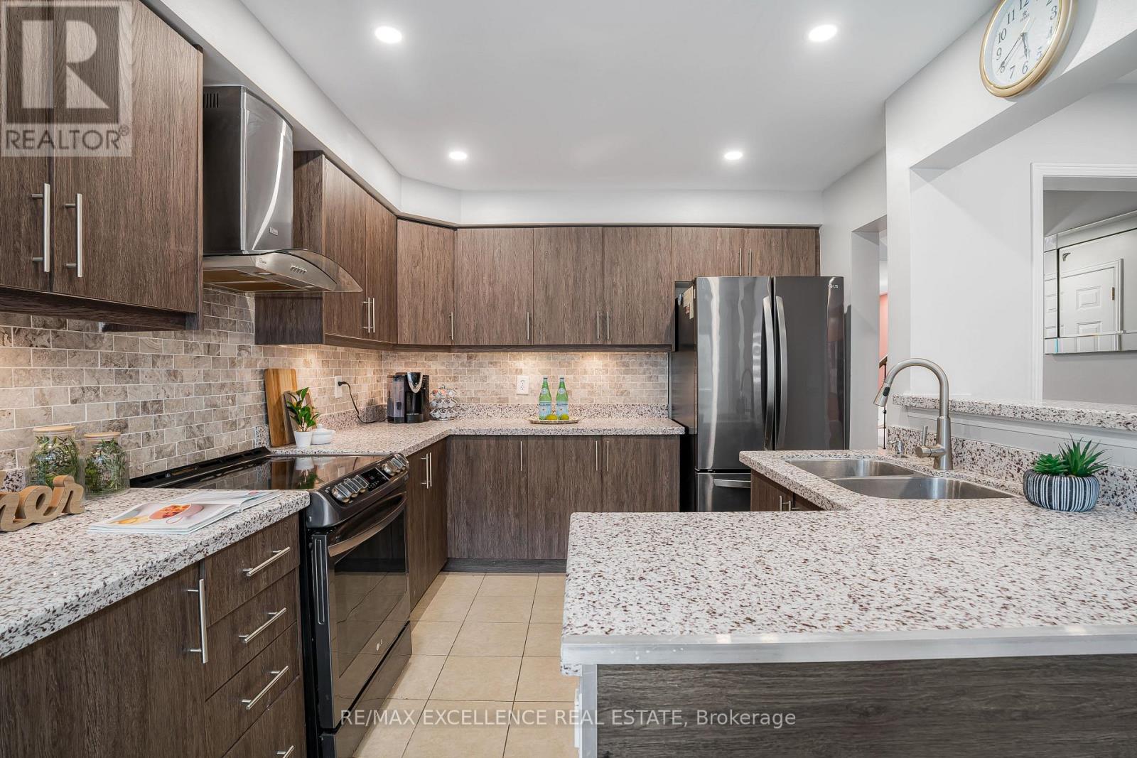 Welcome to this beautifully upgraded 3+1 bedroom, 4-bathroom freehold townhome in the highly sought-after Alton Village! Boasting elegant hardwood floors throughout and a fully finished basement offering additional living space, this home is ideal for first time home buyers,investors, downsizers alike. The main floor features a bright, open-concept layout with a modern kitchen, stainless steel appliances, and a spacious living and dining area-perfect for every day living and hosting guests. Upstairs, you'll find three generously sized bedrooms,including a luxurious primary suite complete with a walk-in closet and a private ensuite bathroom. Additional highlights include a private backyard with deck, an attached garage with convenient inside entry, and parking for up to three vehicles. Located just steps from top-rated schools, scenic parks, a community recreation center, shopping, and offering easy access to Hwy 407 and the QEW, this home combines comfort and convenience. Don't miss this fantastic opportunity in one of Burlington's most desirable neighborhoods!                                                       Bonus: Owned hot water tank-no rental fees! (id:51158)
