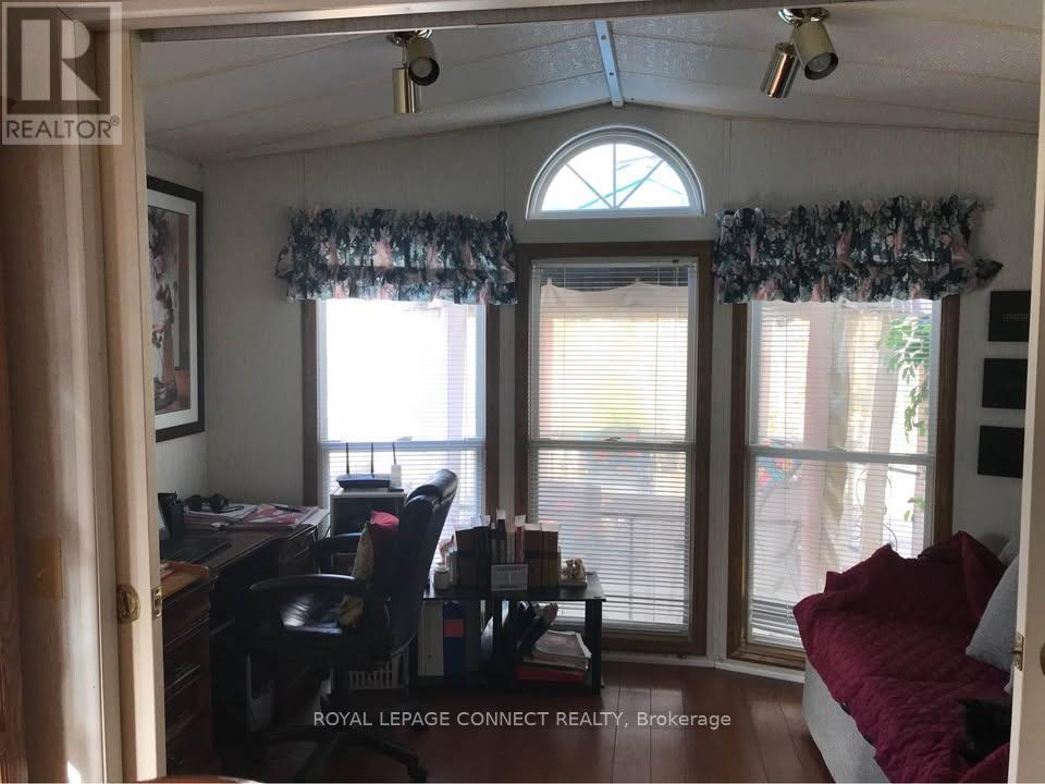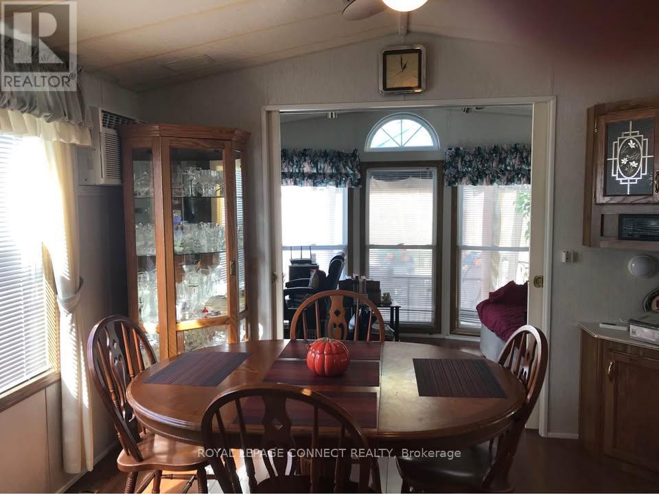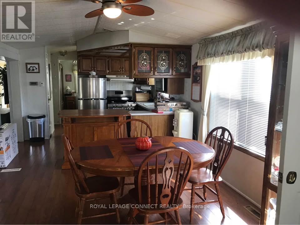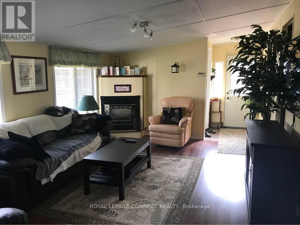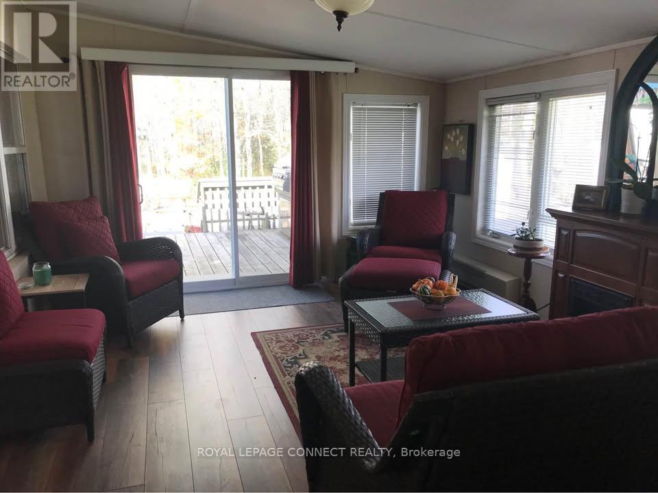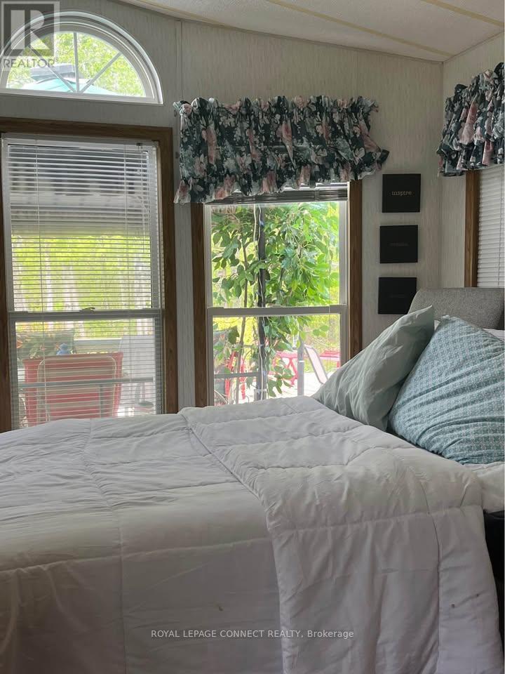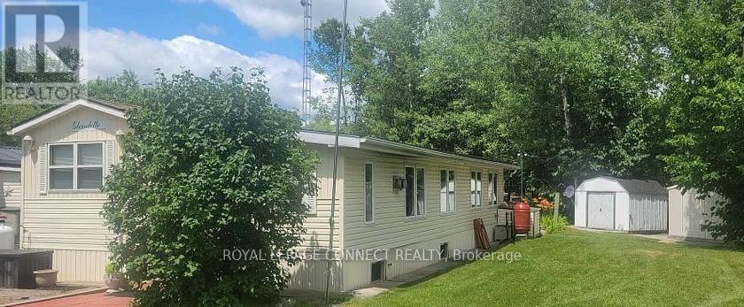 This is a very large, spacious, and well kept modular home. Backing onto forested area, this seasonal getaway has a firepit, gazebo, great deck with a built in BBQ and fridge, two sheds to store everything you need, and it comes with a wired in generator for hydro outages! This family park includes a store, pool and wading pool, playground, shuffleboard, horse shoe pits, and a recreation hall. Lease fees are 2,486 per season and include water, septic, garbage pickup, and use of the amenities in the park. (id:51158)
