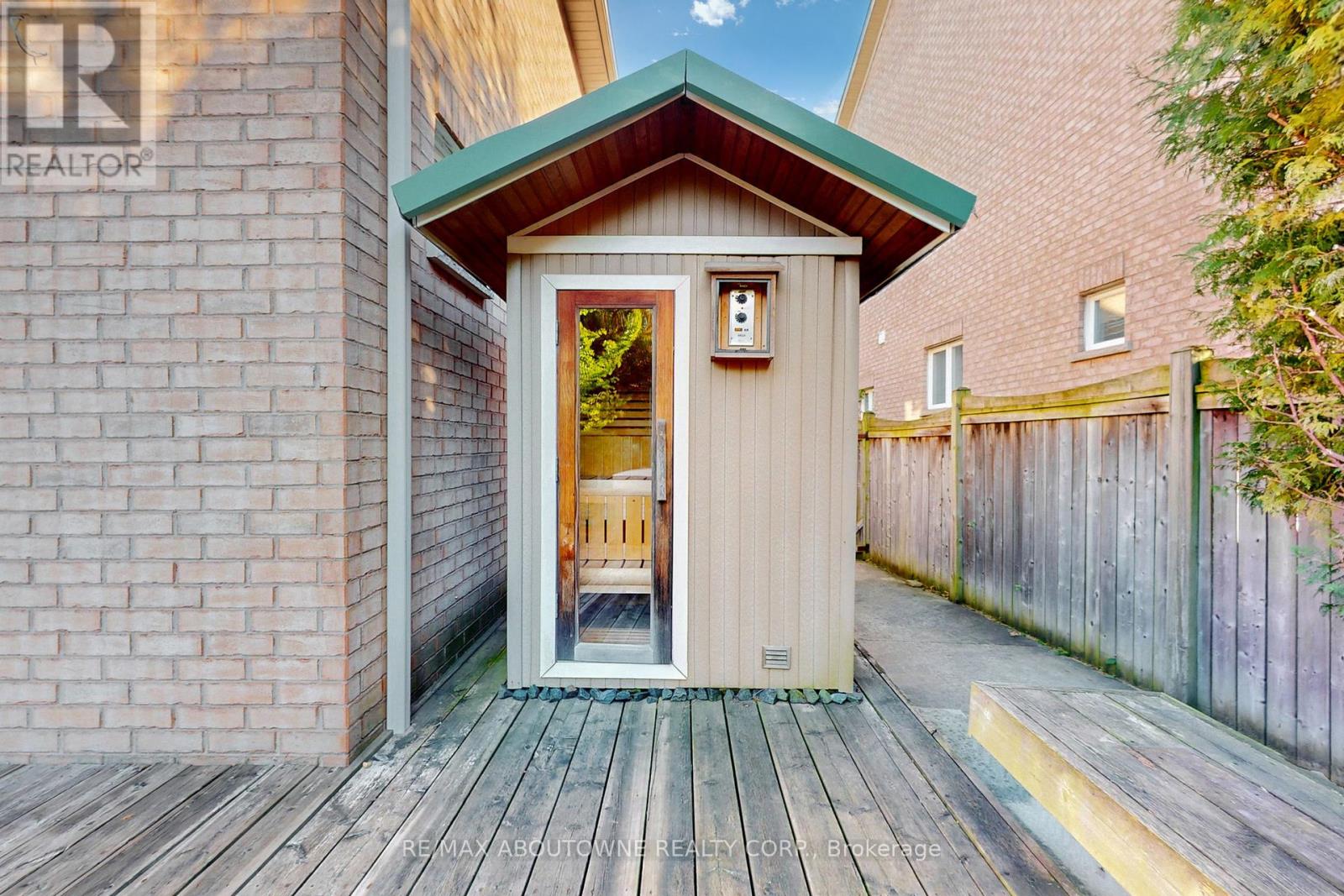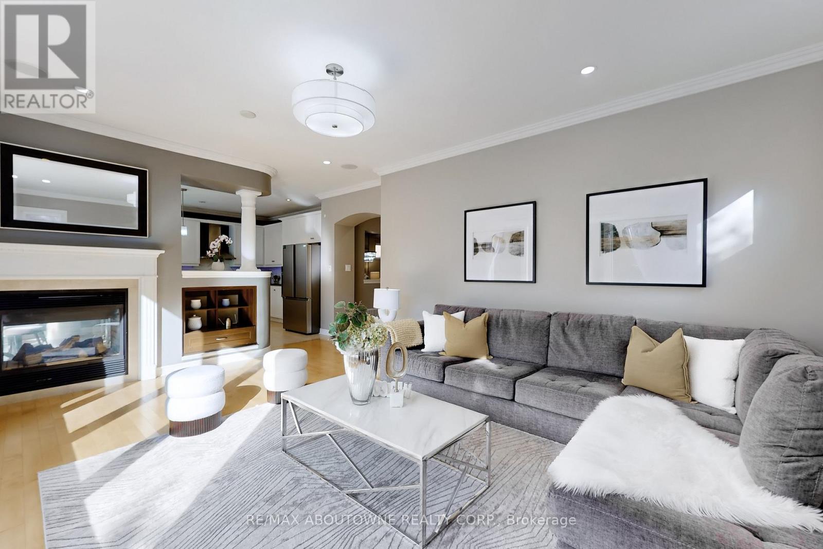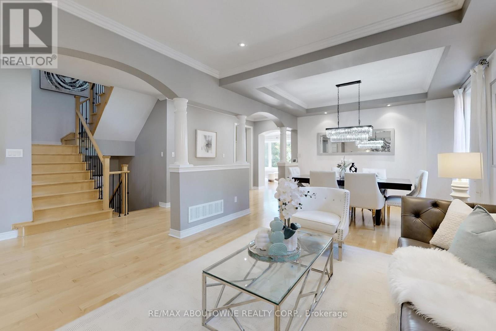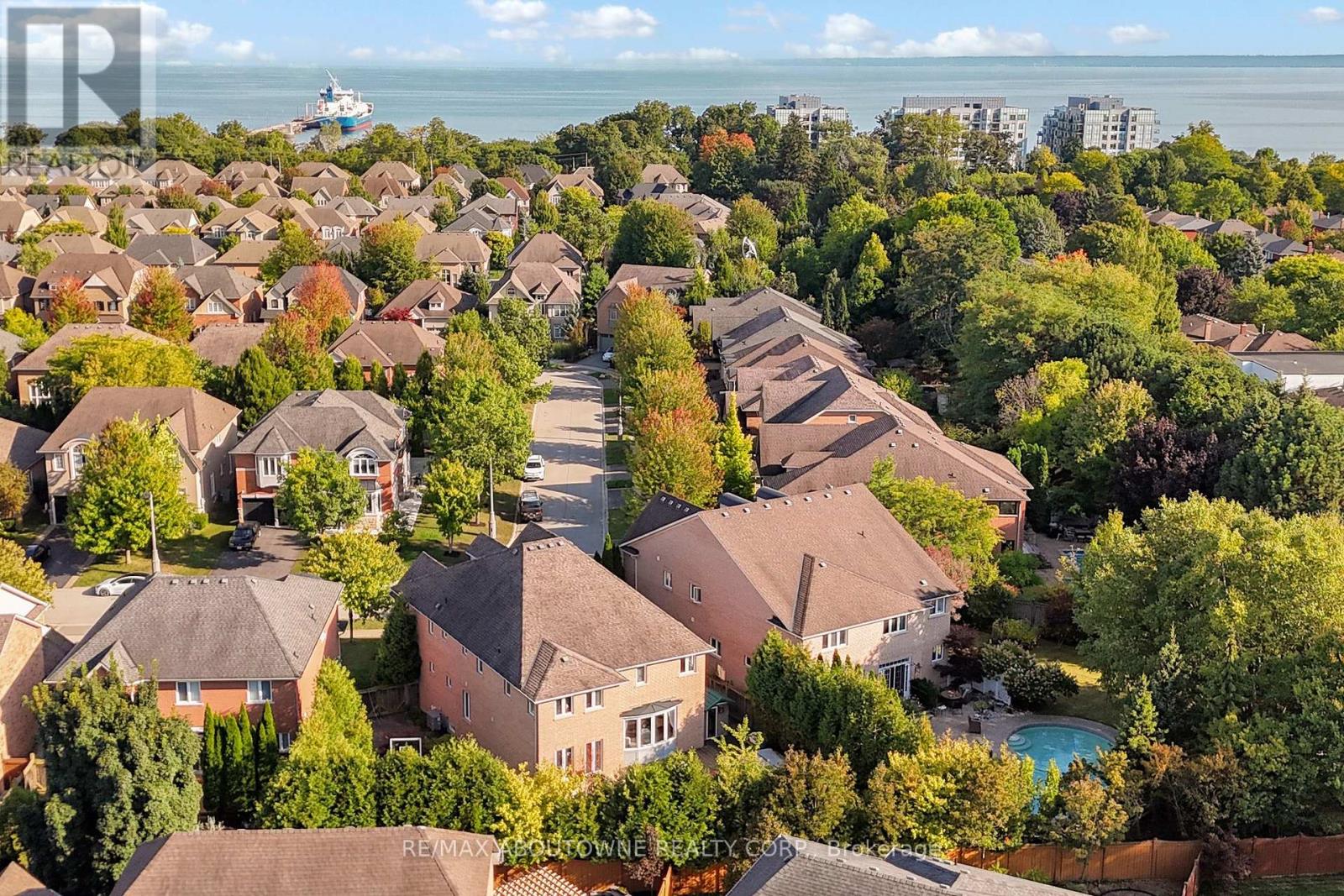 Prestigious Lakeshore Woods community! This exceptional residence sits on a rare pie-shaped lot that widens at the back, offering one of the largest and most private yards in the neighbourhood. With over 5000 sq ft of elegant living space plus a tandem 3-car garage, the home combines timeless curb appeal with modern comfort. A double-door entry leads to a soaring 10 ft foyer with walk-in closet, flanked by a bright front office. Formal living and dining rooms with coffered ceilings provide an elegant setting, while the gourmet white kitchen features granite counters, induction cooktop, LG built-in oven, newer fridge, chefs desk and triple pantry. The adjoining breakfast area is filled with natural light and overlooks the backyard, opening to the family room with two-sided fireplace, soaring windows and chandelier. A large laundry/mudroom and powder room complete the main level. Upstairs, four spacious bedrooms each have ensuite baths and walk-in closets. The luxurious primary retreat offers a king-sized bedroom, sitting area with decorative columns, sunroom-style alcove, two walk-in closets with built-ins and windows, and a spa-like ensuite with dual vanities, makeup station, soaker tub, glass shower, private toilet room and bonus storage. A generous walk-in linen closet adds practicality. The professionally finished lower level expands living space with a recreation and billiards area, media/TV lounge, fitness zone, kitchenette, guest bedroom, full bath and storage. Outdoor living includes a multi-level deck with gas line for BBQ, hot tub and outdoor sauna (both in as is condition), a half basketball court and mature trees for complete privacy. A reinforced pad at the front allows boat parking. Steps from Lake Ontario, Shell Park, trails and dog park, this is a rare lifestyle opportunity in one of Oakvilles most desirable neighbourhoods. (id:51158)