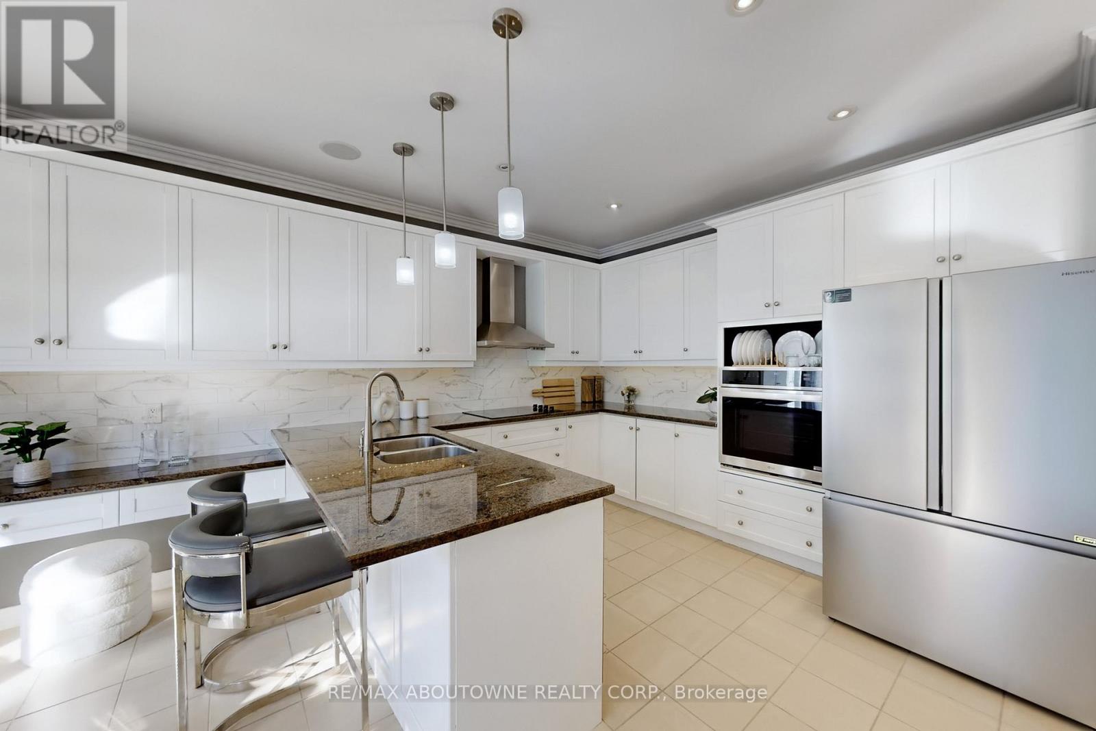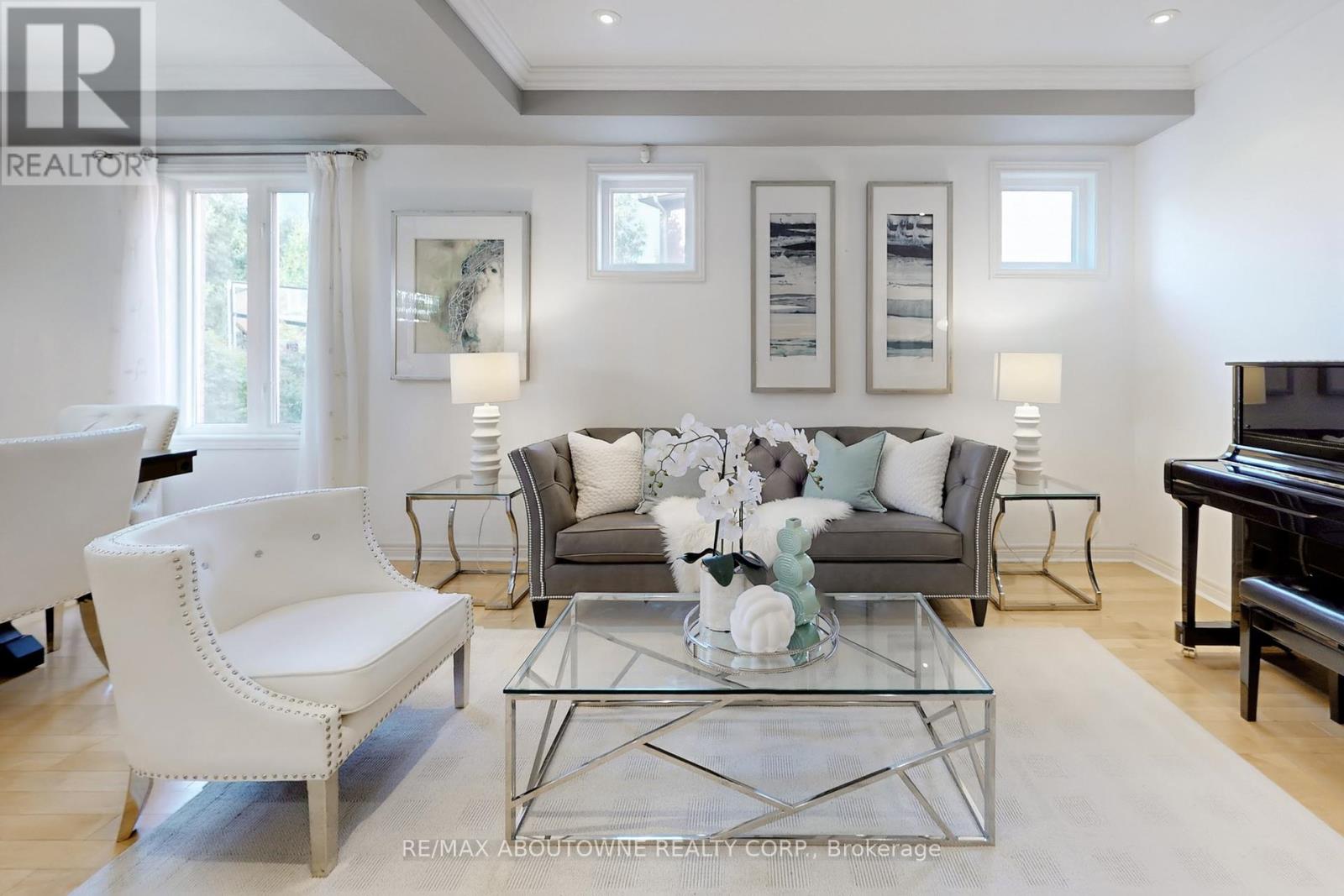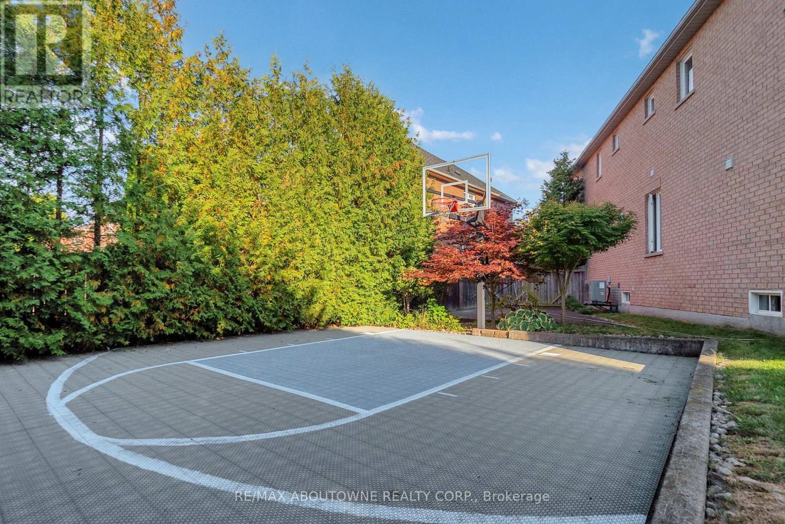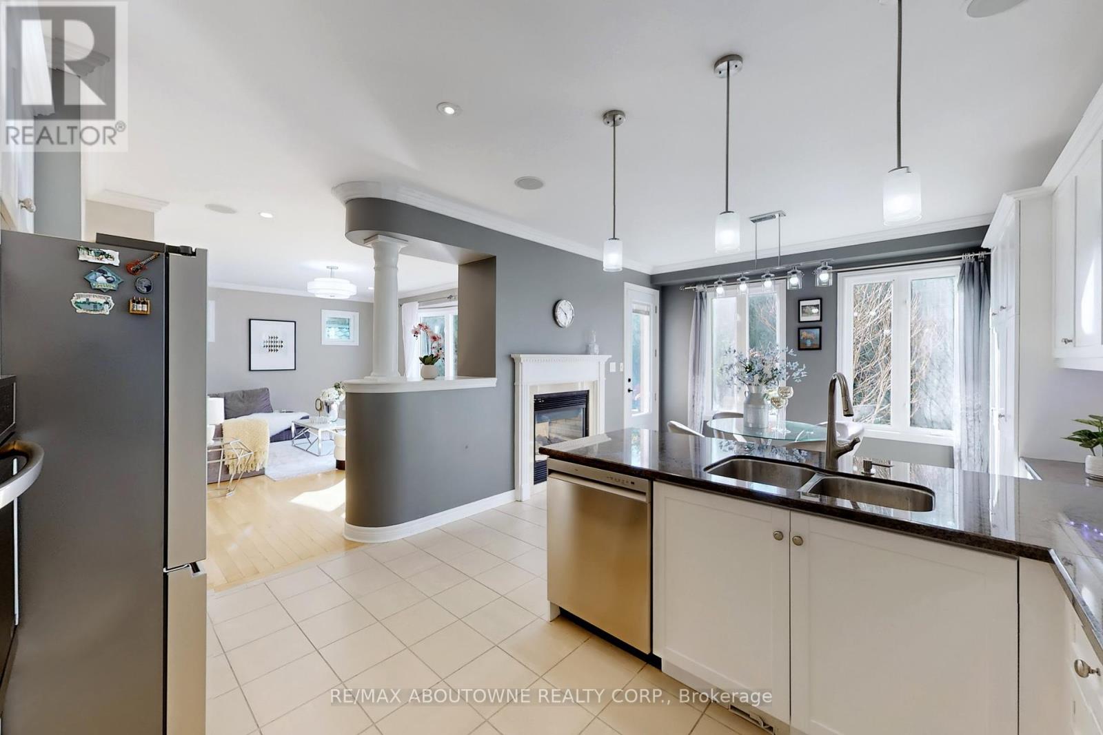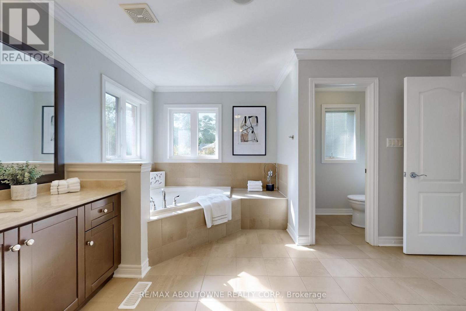 Prestigious Lakeshore Woods community! This exceptional residence sits on a rare pie-shaped lot that widens at the back, offering one of the largest and most private yards in the neighbourhood. With over 5000 sq ft of elegant living space plus a tandem 3-car garage, the home combines timeless curb appeal with modern comfort. A double-door entry leads to a soaring 10 ft foyer with walk-in closet, flanked by a bright front office. Formal living and dining rooms with coffered ceilings provide an elegant setting, while the gourmet white kitchen features granite counters, induction cooktop, LG built-in oven, newer fridge, chefs desk and triple pantry. The adjoining breakfast area is filled with natural light and overlooks the backyard, opening to the family room with two-sided fireplace, soaring windows and chandelier. A large laundry/mudroom and powder room complete the main level. Upstairs, four spacious bedrooms each have ensuite baths and walk-in closets. The luxurious primary retreat offers a king-sized bedroom, sitting area with decorative columns, sunroom-style alcove, two walk-in closets with built-ins and windows, and a spa-like ensuite with dual vanities, makeup station, soaker tub, glass shower, private toilet room and bonus storage. A generous walk-in linen closet adds practicality. The professionally finished lower level expands living space with a recreation and billiards area, media/TV lounge, fitness zone, kitchenette, guest bedroom, full bath and storage. Outdoor living includes a multi-level deck with gas line for BBQ, hot tub and outdoor sauna (both in as is condition), a half basketball court and mature trees for complete privacy. A reinforced pad at the front allows boat parking. Steps from Lake Ontario, Shell Park, trails and dog park, this is a rare lifestyle opportunity in one of Oakvilles most desirable neighbourhoods. (id:51158)