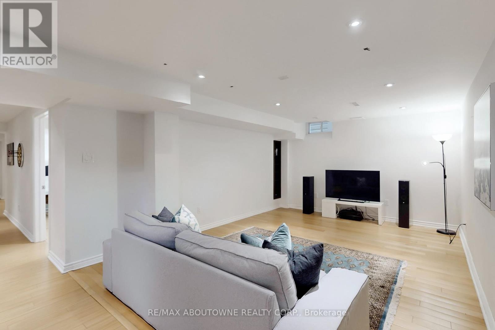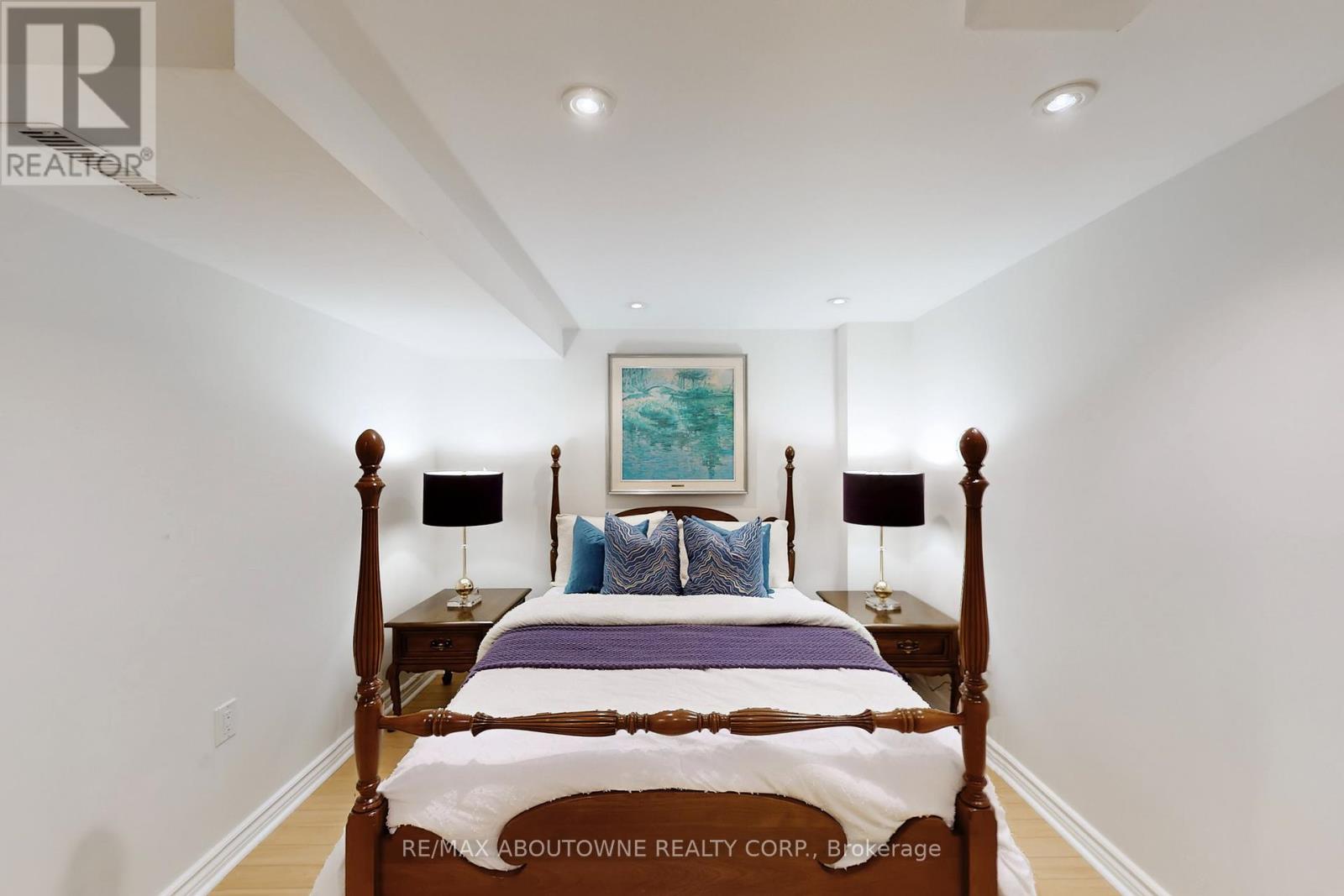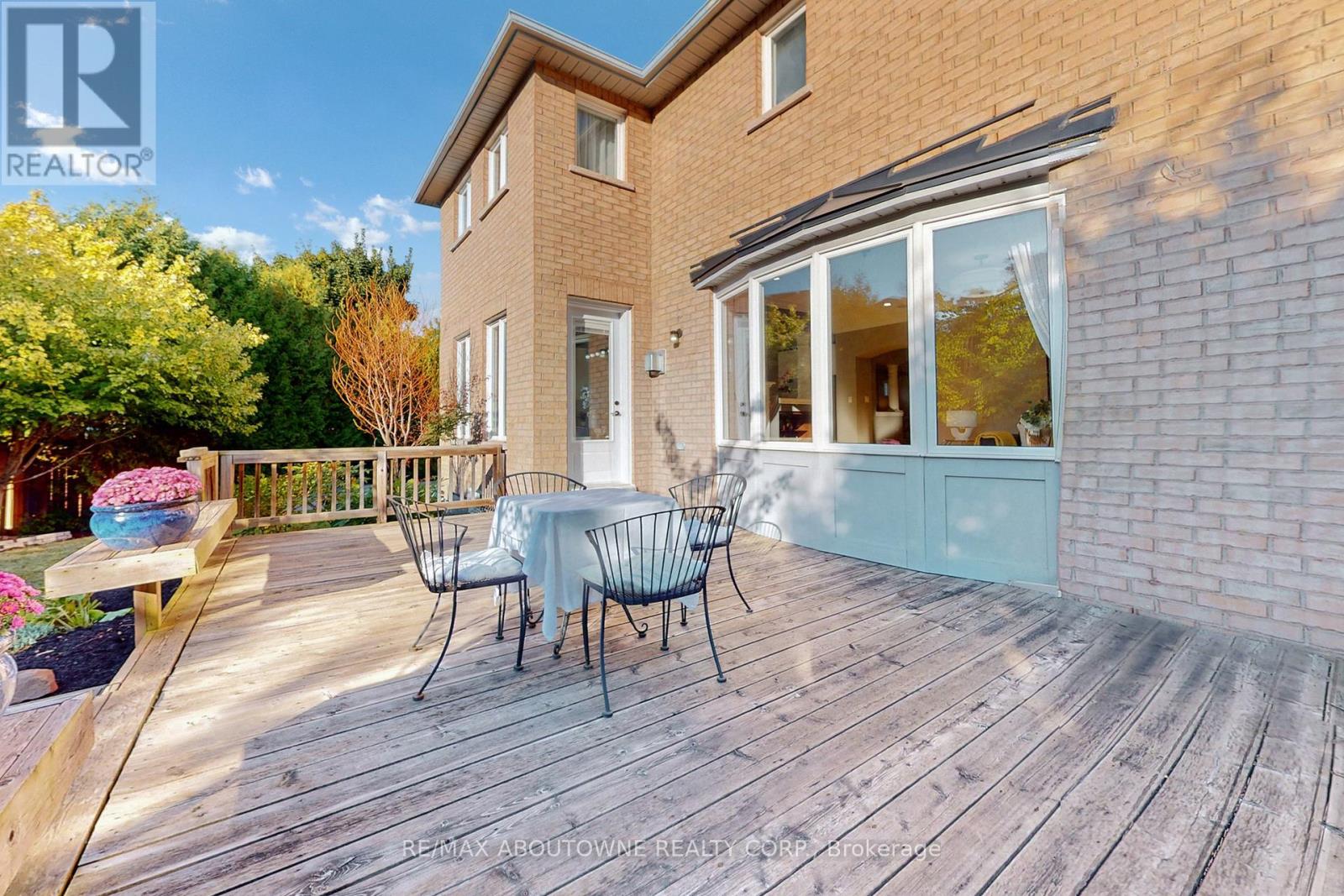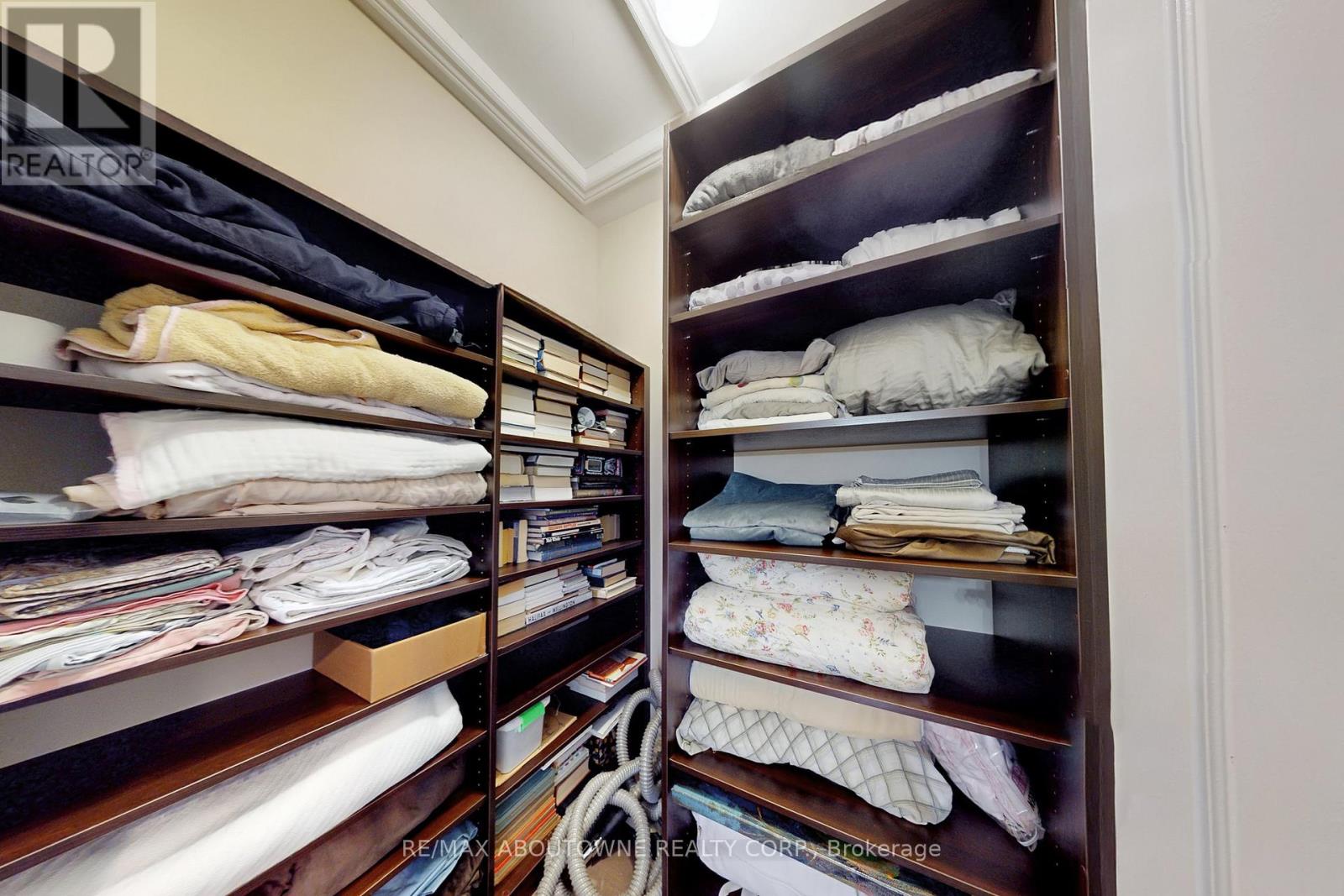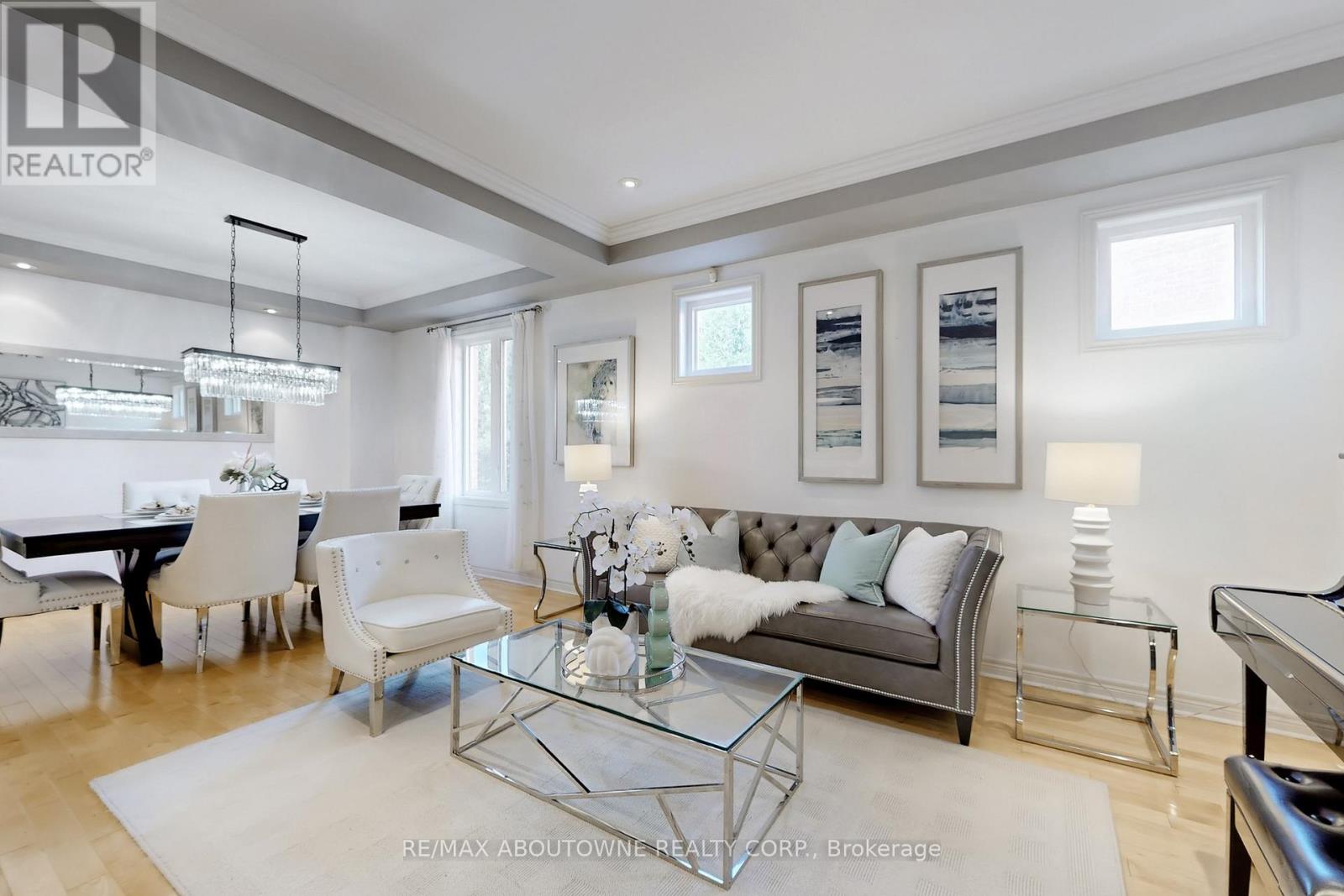 Prestigious Lakeshore Woods community! This exceptional residence sits on a rare pie-shaped lot that widens at the back, offering one of the largest and most private yards in the neighbourhood. With over 5000 sq ft of elegant living space plus a tandem 3-car garage, the home combines timeless curb appeal with modern comfort. A double-door entry leads to a soaring 10 ft foyer with walk-in closet, flanked by a bright front office. Formal living and dining rooms with coffered ceilings provide an elegant setting, while the gourmet white kitchen features granite counters, induction cooktop, LG built-in oven, newer fridge, chefs desk and triple pantry. The adjoining breakfast area is filled with natural light and overlooks the backyard, opening to the family room with two-sided fireplace, soaring windows and chandelier. A large laundry/mudroom and powder room complete the main level. Upstairs, four spacious bedrooms each have ensuite baths and walk-in closets. The luxurious primary retreat offers a king-sized bedroom, sitting area with decorative columns, sunroom-style alcove, two walk-in closets with built-ins and windows, and a spa-like ensuite with dual vanities, makeup station, soaker tub, glass shower, private toilet room and bonus storage. A generous walk-in linen closet adds practicality. The professionally finished lower level expands living space with a recreation and billiards area, media/TV lounge, fitness zone, kitchenette, guest bedroom, full bath and storage. Outdoor living includes a multi-level deck with gas line for BBQ, hot tub and outdoor sauna (both in as is condition), a half basketball court and mature trees for complete privacy. A reinforced pad at the front allows boat parking. Steps from Lake Ontario, Shell Park, trails and dog park, this is a rare lifestyle opportunity in one of Oakvilles most desirable neighbourhoods. (id:51158)