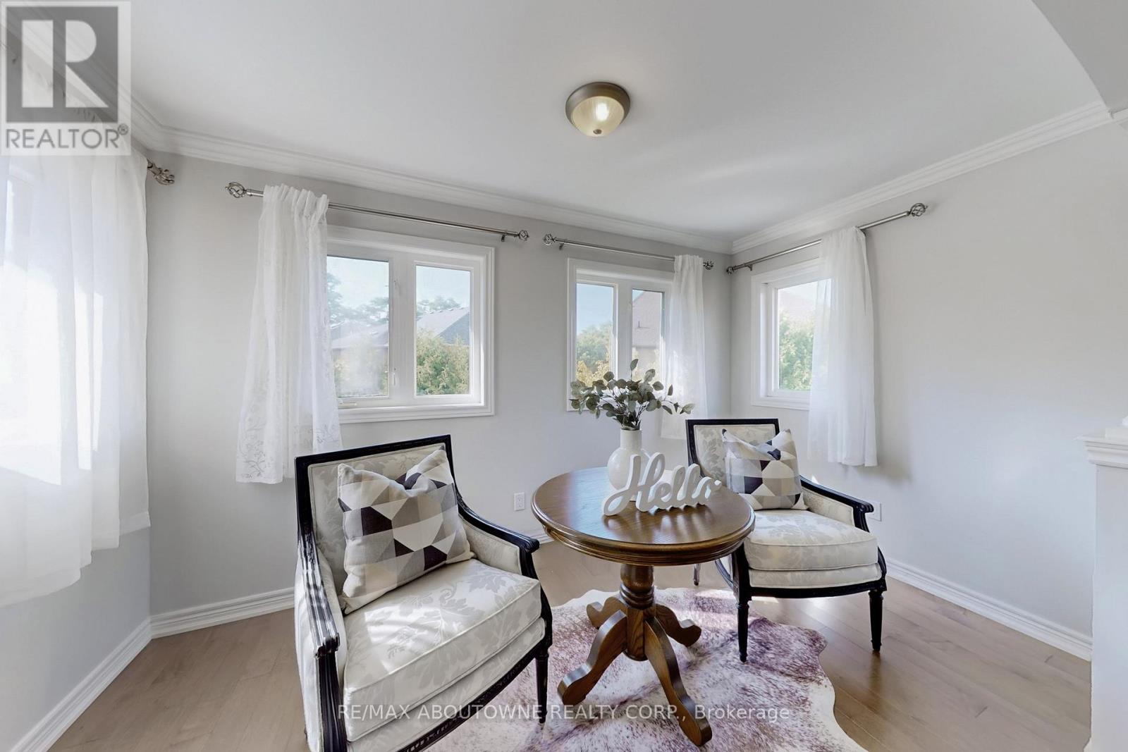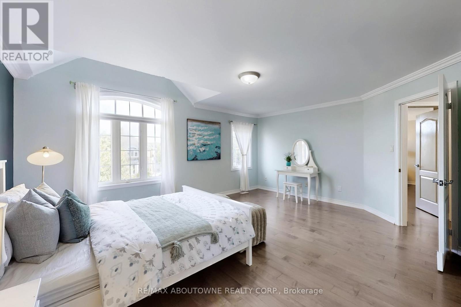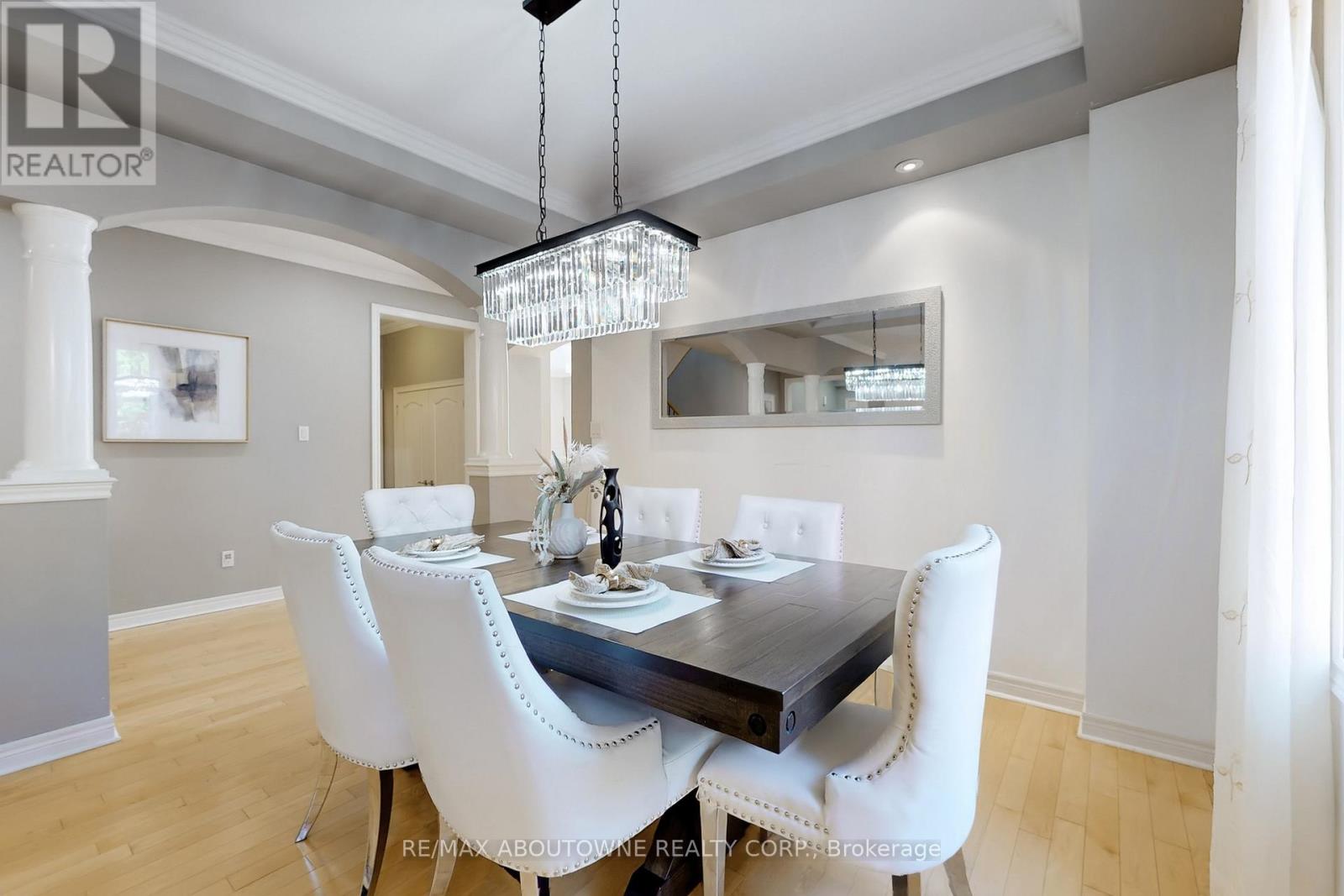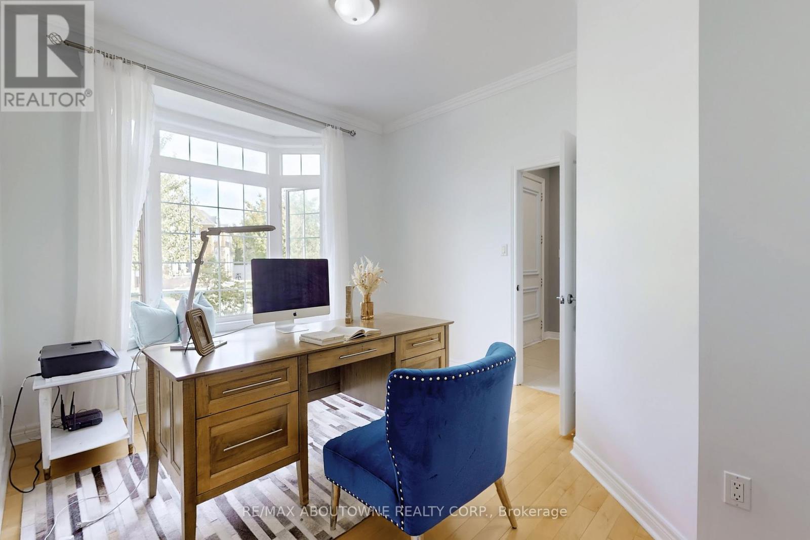 Prestigious Lakeshore Woods community! This exceptional residence sits on a rare pie-shaped lot that widens at the back, offering one of the largest and most private yards in the neighbourhood. With over 5000 sq ft of elegant living space plus a tandem 3-car garage, the home combines timeless curb appeal with modern comfort. A double-door entry leads to a soaring 10 ft foyer with walk-in closet, flanked by a bright front office. Formal living and dining rooms with coffered ceilings provide an elegant setting, while the gourmet white kitchen features granite counters, induction cooktop, LG built-in oven, newer fridge, chefs desk and triple pantry. The adjoining breakfast area is filled with natural light and overlooks the backyard, opening to the family room with two-sided fireplace, soaring windows and chandelier. A large laundry/mudroom and powder room complete the main level. Upstairs, four spacious bedrooms each have ensuite baths and walk-in closets. The luxurious primary retreat offers a king-sized bedroom, sitting area with decorative columns, sunroom-style alcove, two walk-in closets with built-ins and windows, and a spa-like ensuite with dual vanities, makeup station, soaker tub, glass shower, private toilet room and bonus storage. A generous walk-in linen closet adds practicality. The professionally finished lower level expands living space with a recreation and billiards area, media/TV lounge, fitness zone, kitchenette, guest bedroom, full bath and storage. Outdoor living includes a multi-level deck with gas line for BBQ, hot tub and outdoor sauna (both in as is condition), a half basketball court and mature trees for complete privacy. A reinforced pad at the front allows boat parking. Steps from Lake Ontario, Shell Park, trails and dog park, this is a rare lifestyle opportunity in one of Oakvilles most desirable neighbourhoods. (id:51158)