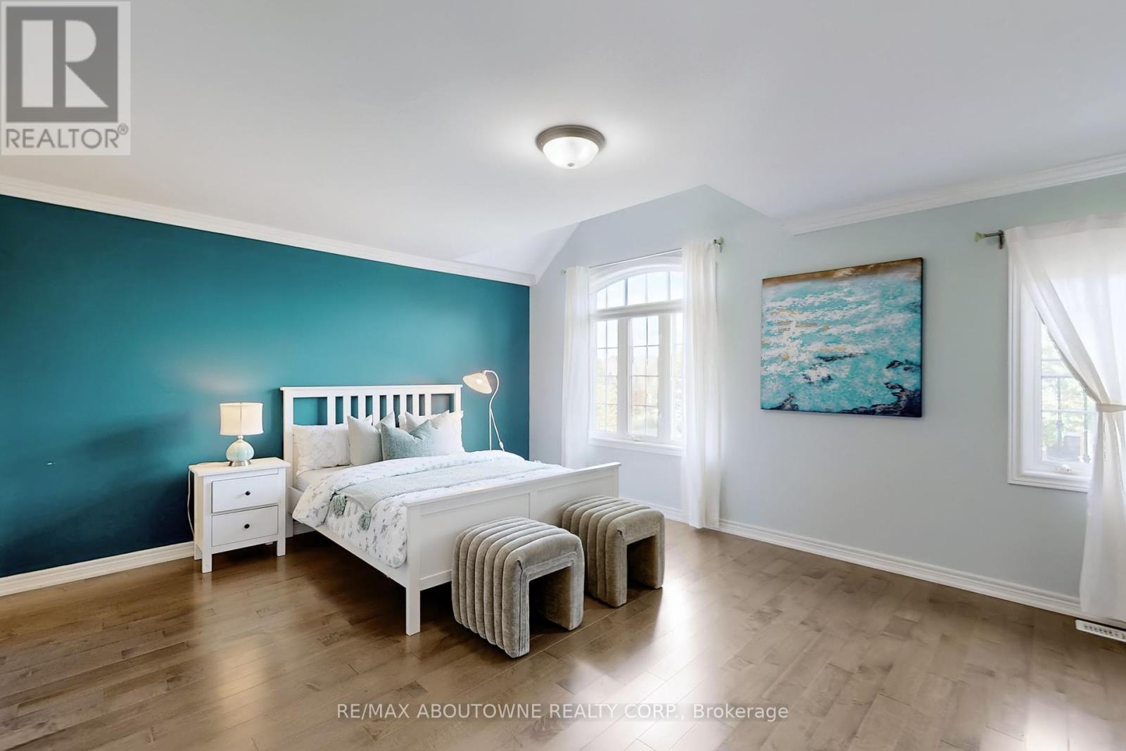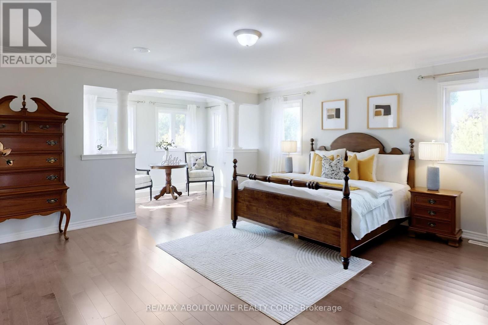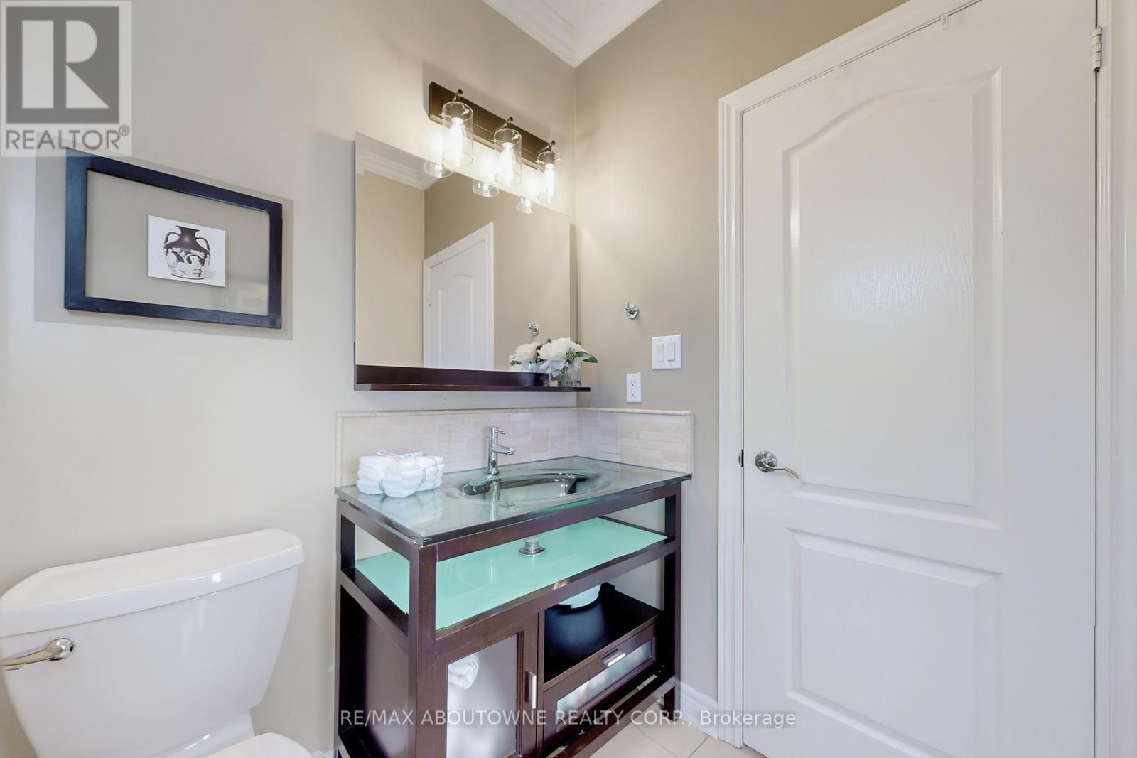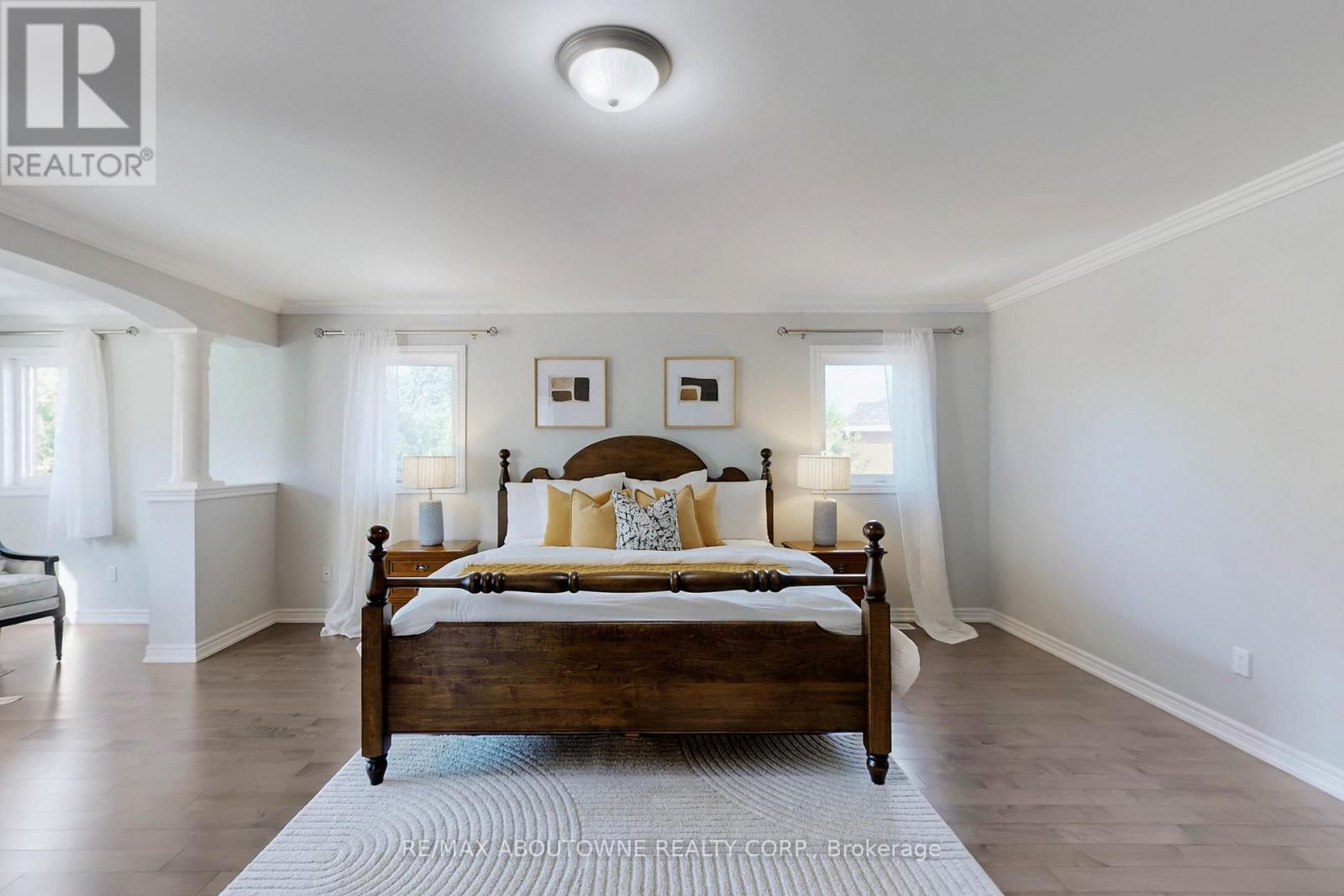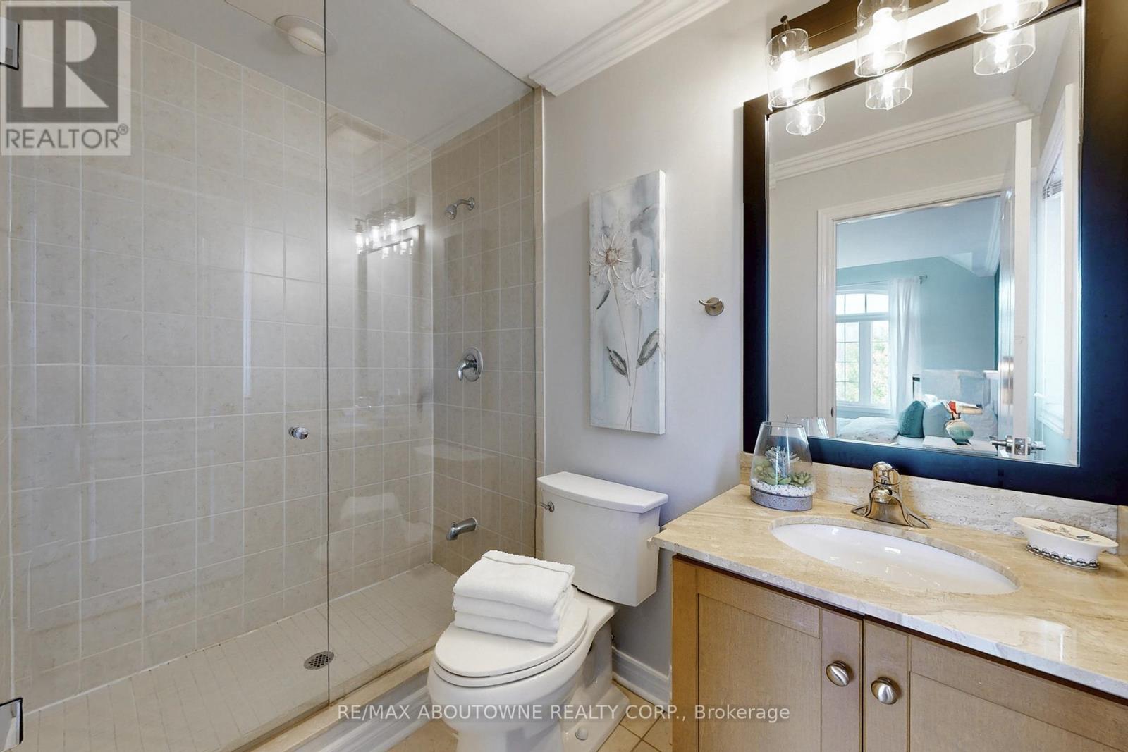 Prestigious Lakeshore Woods community! This exceptional residence sits on a rare pie-shaped lot that widens at the back, offering one of the largest and most private yards in the neighbourhood. With over 5000 sq ft of elegant living space plus a tandem 3-car garage, the home combines timeless curb appeal with modern comfort. A double-door entry leads to a soaring 10 ft foyer with walk-in closet, flanked by a bright front office. Formal living and dining rooms with coffered ceilings provide an elegant setting, while the gourmet white kitchen features granite counters, induction cooktop, LG built-in oven, newer fridge, chefs desk and triple pantry. The adjoining breakfast area is filled with natural light and overlooks the backyard, opening to the family room with two-sided fireplace, soaring windows and chandelier. A large laundry/mudroom and powder room complete the main level. Upstairs, four spacious bedrooms each have ensuite baths and walk-in closets. The luxurious primary retreat offers a king-sized bedroom, sitting area with decorative columns, sunroom-style alcove, two walk-in closets with built-ins and windows, and a spa-like ensuite with dual vanities, makeup station, soaker tub, glass shower, private toilet room and bonus storage. A generous walk-in linen closet adds practicality. The professionally finished lower level expands living space with a recreation and billiards area, media/TV lounge, fitness zone, kitchenette, guest bedroom, full bath and storage. Outdoor living includes a multi-level deck with gas line for BBQ, hot tub and outdoor sauna (both in as is condition), a half basketball court and mature trees for complete privacy. A reinforced pad at the front allows boat parking. Steps from Lake Ontario, Shell Park, trails and dog park, this is a rare lifestyle opportunity in one of Oakvilles most desirable neighbourhoods. (id:51158)
