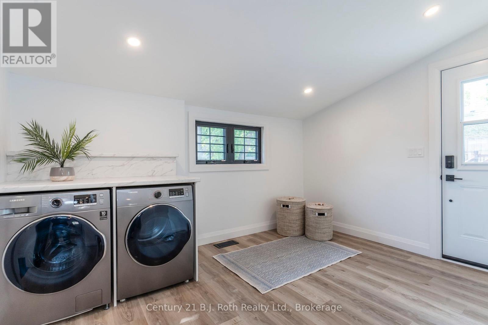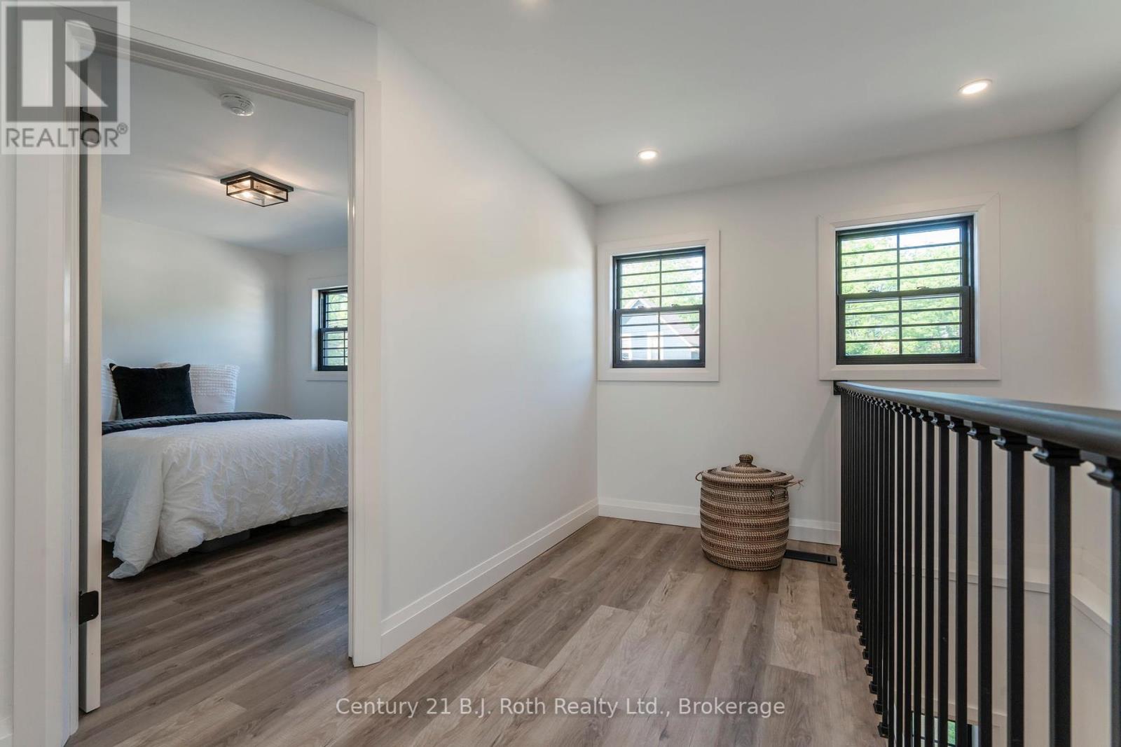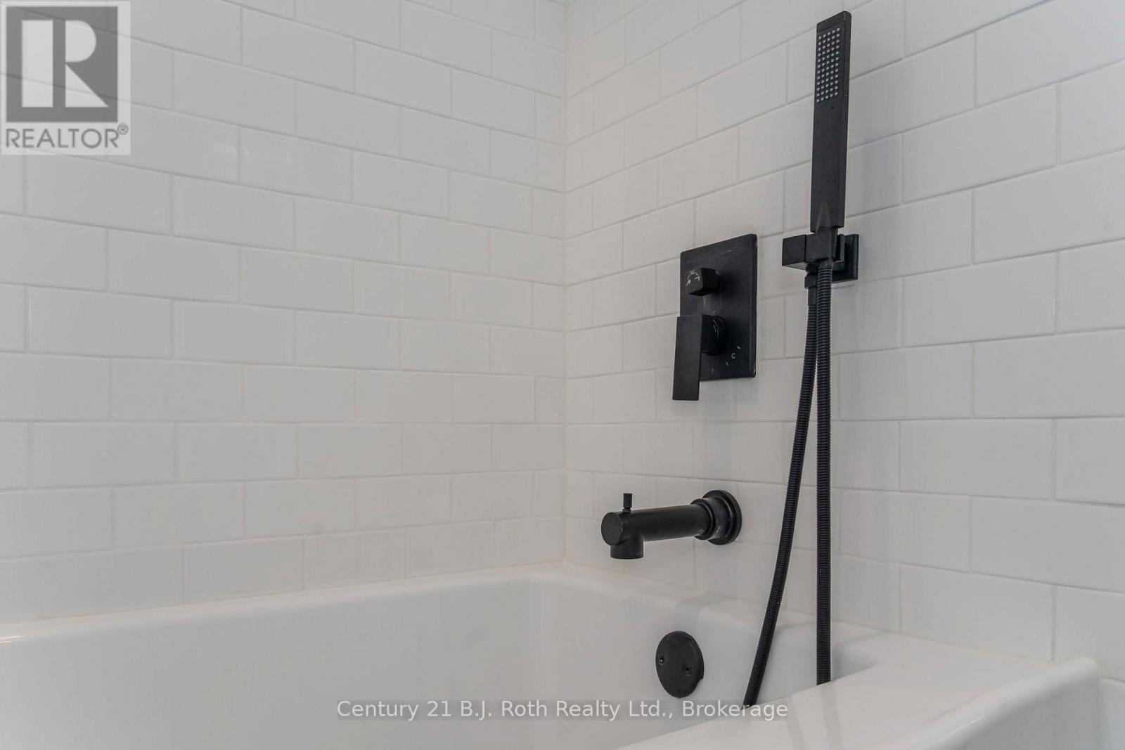 Chic Downtown Midland Retreat, located in Beautiful Georgian Bay. Fully Renovated, Zoned Commercial/Residential. Welcome to a home that truly checks all the boxes for modern living and prime location. Take a stroll to Midlands vibrant downtown core, cafés, boutiques, restaurants, waterfront and Marina. You'll be living in the heart of it all while enjoying the peace and charm of this home. Fully renovated 2-bedroom, 2-bathroom with a finished basement gem offers the perfect blend of barn-house charm and urban sophistication. 1,000 + sq.ft. of beautifully designed space. Stylish & Smart Living. Step inside to discover 9-foot ceilings, sleek black-framed windows, and a stunning exposed brick feature wall that anchors the home with warmth and character. Black barn doors and modern black hardware throughout the kitchen and baths complete the Barnhouse aesthetic. Bright, Airy, & Inviting. Natural light fills the open-concept living and dining area, creating a vibrant atmosphere that feels as good as it looks. Whether you're enjoying a quiet morning or hosting friends this summer, the layout is both functional and stylish. The main-floor laundry and all-new appliances add even more everyday convenience. Finished Basement for a home office, media room or great play-room. Turn your 115 ft deep backyard to a summer retreat. This home offers exceptional flexibility for professionals, young family or entrepreneurs looking to live and work in one dynamic space. (id:51158)