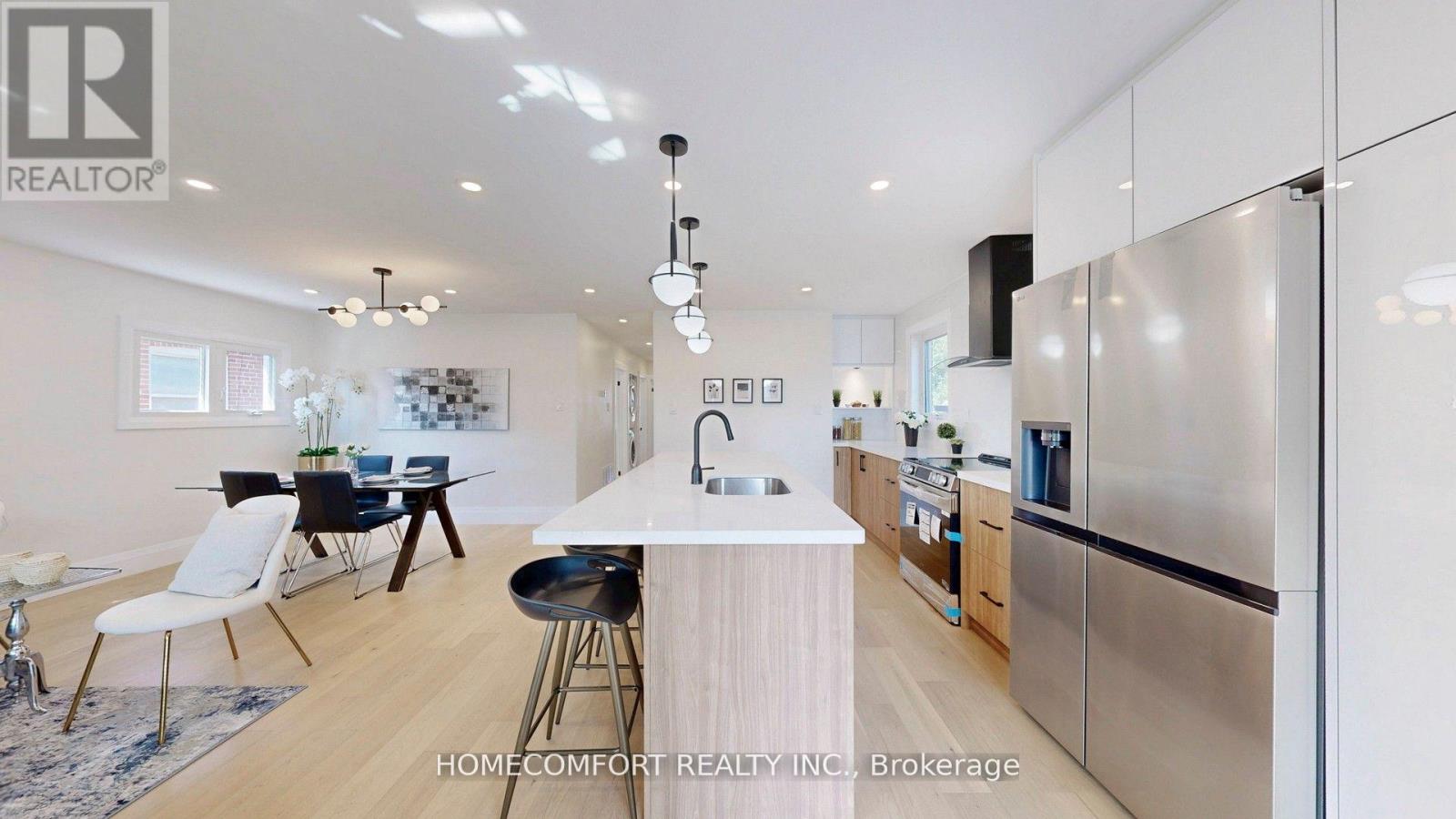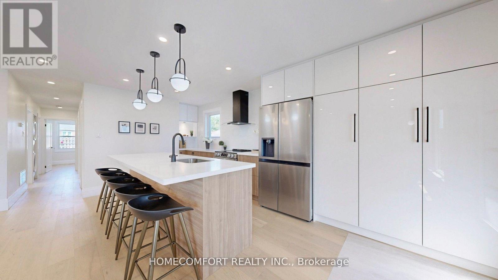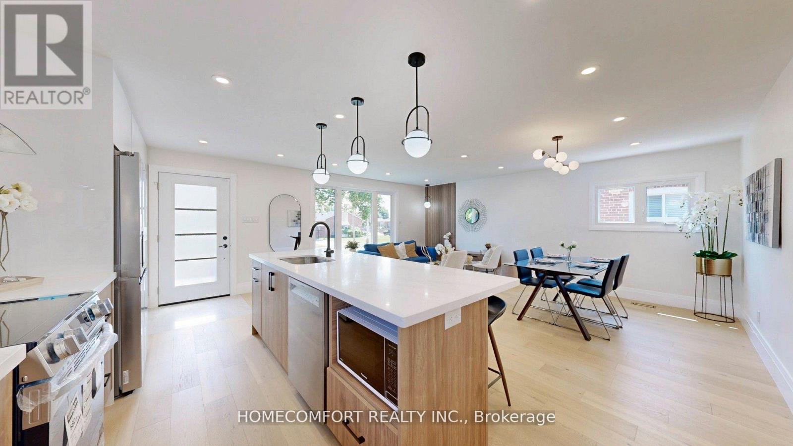 Look No Further! Tastefully renovated & move-in-ready 3+2 bungalow with 3 bathrooms (2 full + 1 powder), 2 full kitchens, and 2 sets of laundry in the prime Wexford-Maryvale community on a premium 46.75 ft x 107 ft lot. Beautifully landscaped for enhanced privacy and exceptional curb appeal!The modern open-concept main floor renovation (2025, with permit) features 3 spacious bedrooms, 1 full bath, and 1 powder room, with engineered hardwood floors, pot lights, and a chefs kitchen boasting an oversized quartz island and top-of-the-line stainless steel appliances. The intimate primary bedroom offers a deck walkout to a private, fully fenced backyard with exterior lighting perfect for relaxing or entertaining.The finished basement with separate entrance includes 2 bedrooms, a full kitchen, laundry, and a full bath ideal as a rental suite or in-law unit.Garage plus deep double driveway provide ample parking. Located in a family-friendly neighborhood, just a short walk to public & Catholic schools, TTC bus routes with direct connections to Line 1 & Line 2 subways, shopping (malls, plazas, groceries, restaurants, banks), and parks. Close to Hwy 401/DVP/404.More upgrades: Garage Door Opener (new, 2025), fence (20252018), shed (2023), furnace (2022), roof (2020), windows (2018).The home features a large heated in-ground swimming pool with fully operational pump, heater (2021), and sand filter (2021). The vinyl liner will need to be replaced, but the seller is happy to help with the cost of a new liner if the buyer would like to enjoy the pool, or offer the same credit if the buyer prefers to have it removed. (id:51158)