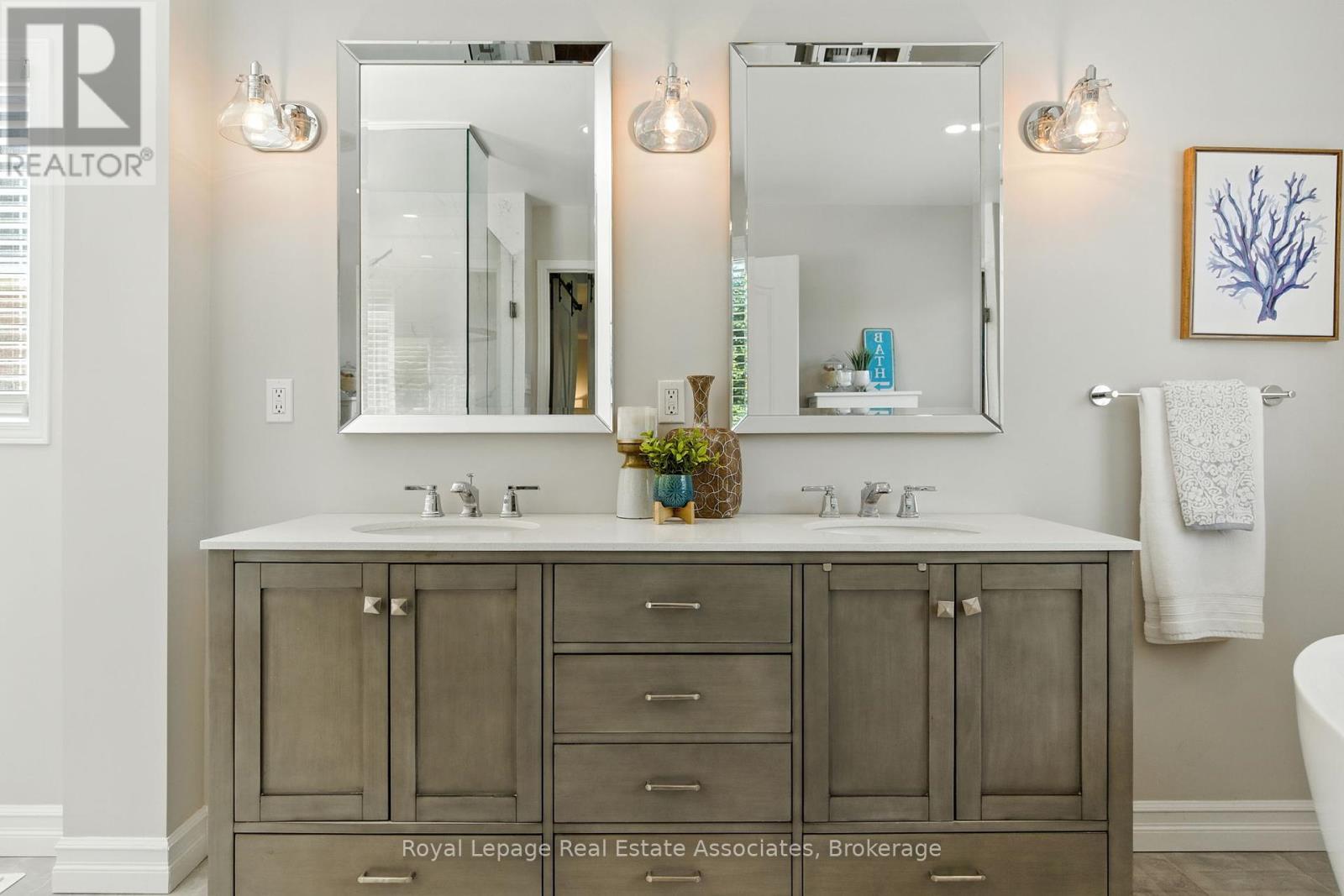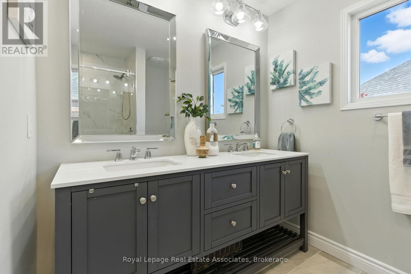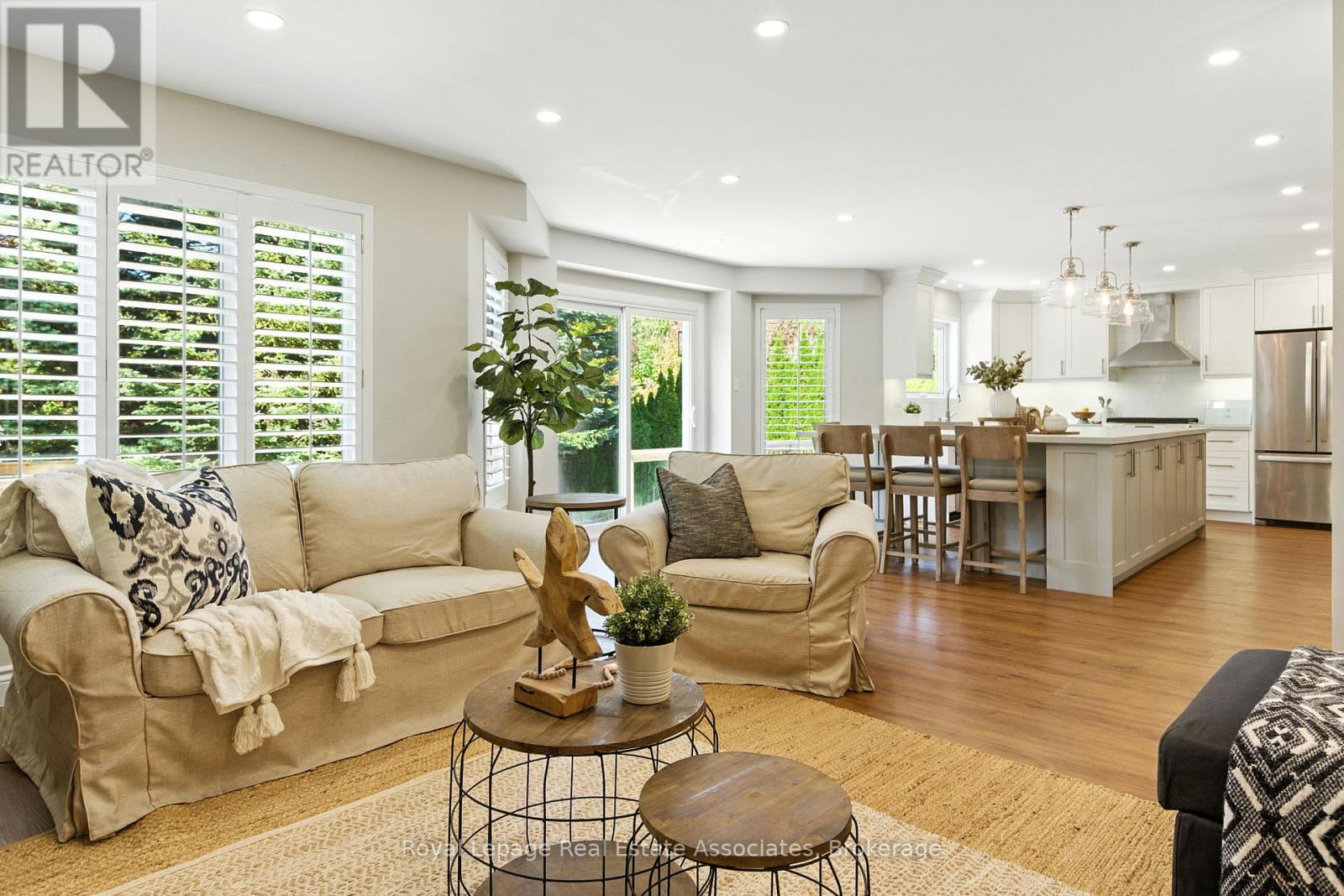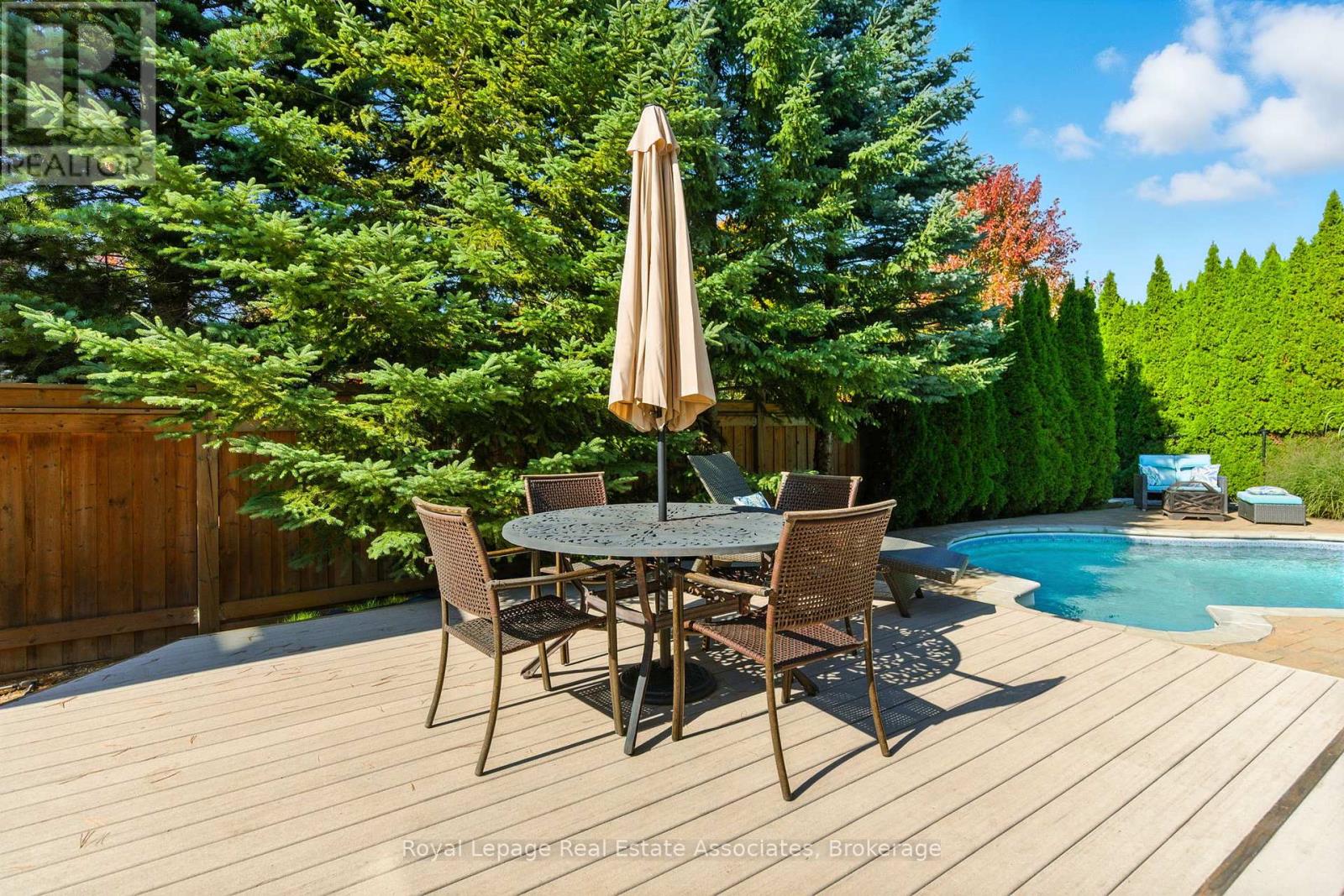 Stunning, fully updated executive detached home in a highly sought-after neighbourhood, offering the perfect balance of elegance, comfort and family living. Bright and open living spaces make it easy to spend time together, while still offering room to spread out. The heart of the home is the fabulous renovated kitchen, complete with a large centre island and plenty of space for gathering, ideal for both everyday family meals and entertaining. The open-concept design flows seamlessly into the bright family room with a gas fireplace. Upstairs, the large primary bedroom offers two walk-in closets and a spa-like bathroom. Three other generously sized bedrooms provide ample space for the whole family. The finished basement with additional bathroom adds even more space for recreation, a home office, or movie nights. Complete with built-in sauna! Step outside to a private backyard designed for fun and relaxation, with an inground pool, cabana bar and peaceful ravine views, perfect for summer days and weekend get-togethers. Located in a high-demand community close to top-rated schools, parks, trails, and all amenities, this home is a rare opportunity to own a move-in ready property with premium finishes and a one-of-a-kind setting. Kitchen and main floor renovation - 2019. New staircase from main floor to second floor - 2013. Hardwood floor upstairs - 2013. Primary bathroom renovation - 2019. Second upstairs bathroom - 2020. Basement and basement bathroom - 2023. Mechanics: Furnace and A/C - 2018. New water softener - 2024. Exterior: Pool - 2011Composite decking with cedar trim - 2011. Roof - 2015. New Pool Heater - 2025. (id:51158)
