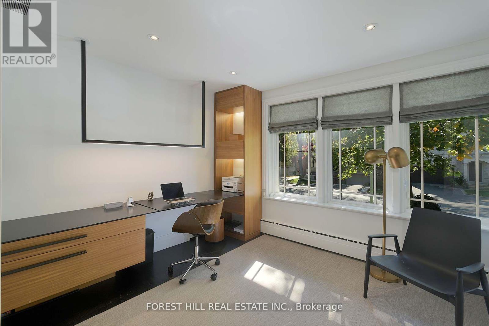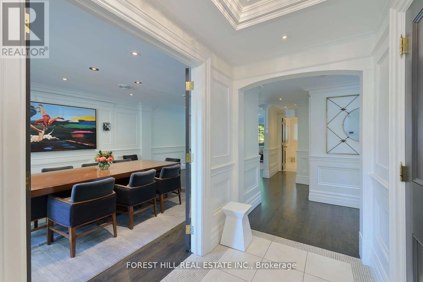 This is the one! 34 Forest Ridge Drive checks all your boxes beginning with its stunning curb appeal. Situated on a 59' wide lot on this quiet and most coveted street in upper Forest Hill Village, this sophisticated home features 4+1 bedrooms, a main floor office, a main floor family room and a main floor powder room. The welcoming foyer with large closet invites you into an elegant living space where you can relax and entertain. The living room is bright with a gas fireplace and views of the stunning back yard with pool and beautiful garden. The stylish dining area is spacious enough for large dinner parties yet intimate enough for smaller ones. The incredible eat-in kitchen features stainless steel appliances, Caesarstone countertops, two built-in Wolf gas ranges, two Miele dishwashers, a Sub-Zero fridge, two built-in warming drawers, Avantgarde wine cooler and more. The main floor is hardwood throughout with beautiful views overlooking the backyard pool and garden. Upstairs the gorgeous large primary bedroom has a vaulted ceiling, a sizeable seating area and a six-piece en-suite with heated floors. There is a walk-in closet and two double closets as well as abundant additional storage in the ensuite. There are three additional upstairs bedrooms. Bedroom 2 features a tandem room and 4 double closets with built-in storage. Bedrooms 3 and 4 each has two double closets with built-in storage. The basement rec room is large with good ceiling height. There are an additional bedroom, bathroom and a cedar closet on the lower level. The laundry room is spacious and storage is abundant. This is a great location with close TTC and highway access. Walking distance to shops, good schools, parks, the Beltline Trail, Cedarvale Ravine and more. (id:51158)