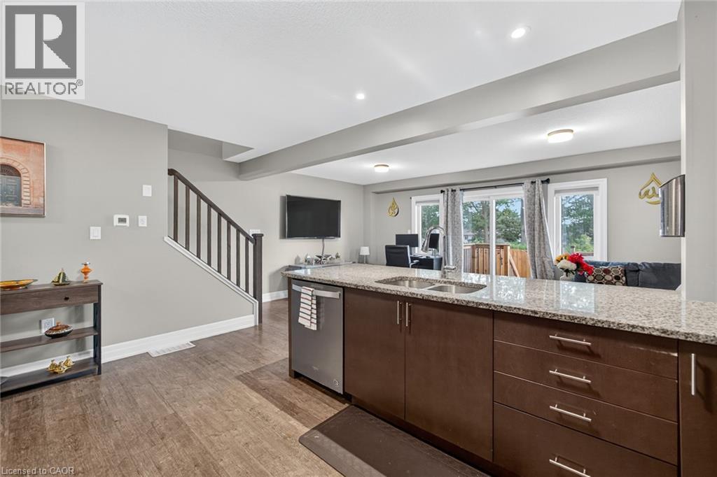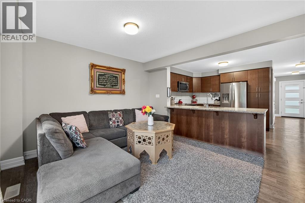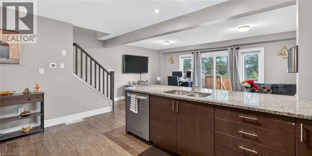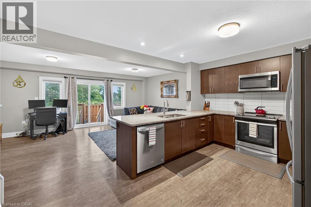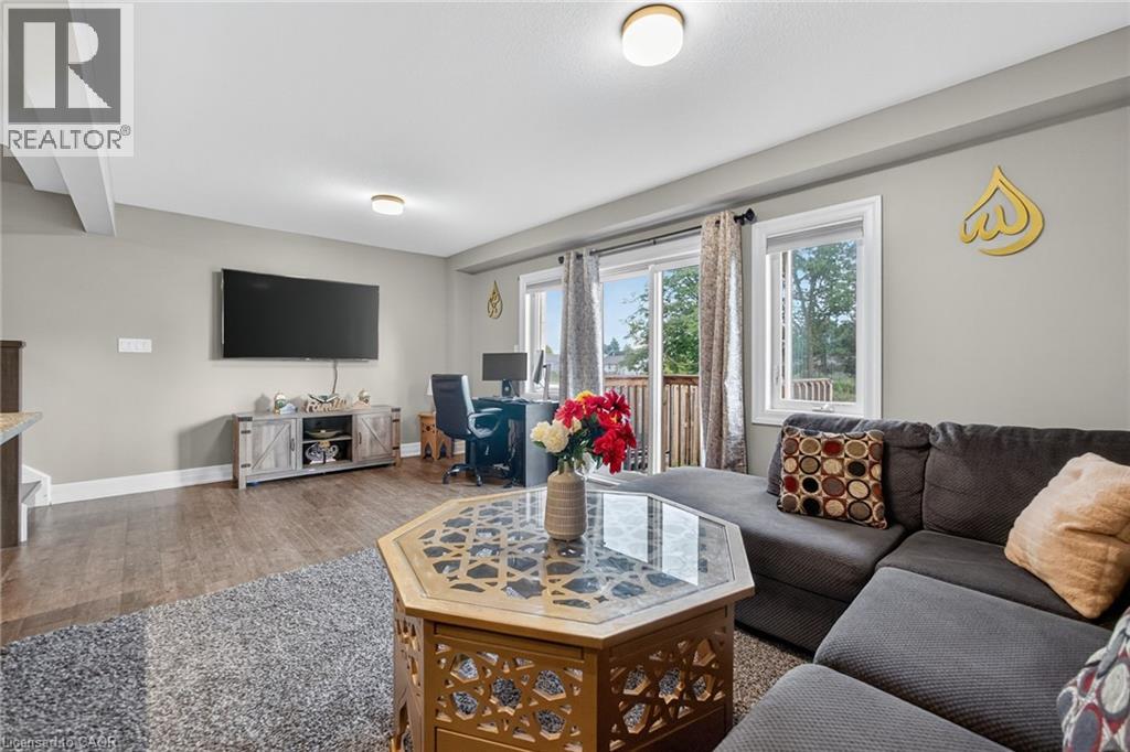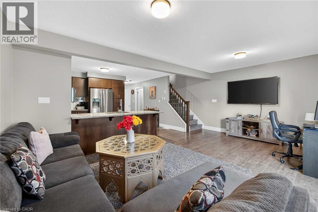 Exquisite Freehold Townhome Overlooking Serene Green Space Wow Over $25,000 in Upgrades Fully Finished Basement Coveted Family Location Welcome to 34 Nieson Street, an elegantly upgraded freehold townhome that seamlessly blends modern sophistication with everyday comfort. Set within a desirable, family-oriented neighbourhood, this residence offers exceptional proximity to schools, parks, shopping, and Highway 401providing both convenience and connection. From the moment you arrive, the home’s refined curb appeal captivates, showcasing a stone and brick façade, a covered front porch, and a single-car garage. Inside, the open-concept main floor welcomes you with hardwood laminate flooring, abundant natural light, and a graceful flow between the principal living spaces. The gourmet kitchen is a statement of style and function, featuring granite countertops, stainless steel appliances, modern cabinetry, and an L-shaped breakfast bar — perfect for both casual dining and elegant entertaining. Upstairs, the primary suite provides a tranquil retreat, complete with a spacious walk-in closet and a spa-inspired ensuite highlighted by a glass walk-in shower. Two additional sunlit bedrooms, a 4-piece main bath, and convenient second-floor laundry complete this beautifully appointed level. The fully finished basement enhances the home’s versatility, offering a generous recreation room, a stylish new 4-piece bathroom, and ample storage space — ideal for a home office, fitness studio, or guest suite. With over $25,000 in thoughtful upgrades, premium finishes throughout, and a picturesque green-space backdrop, 34 Nieson Street delivers a truly refined living experience — move-in ready and designed to impress. (id:51158)