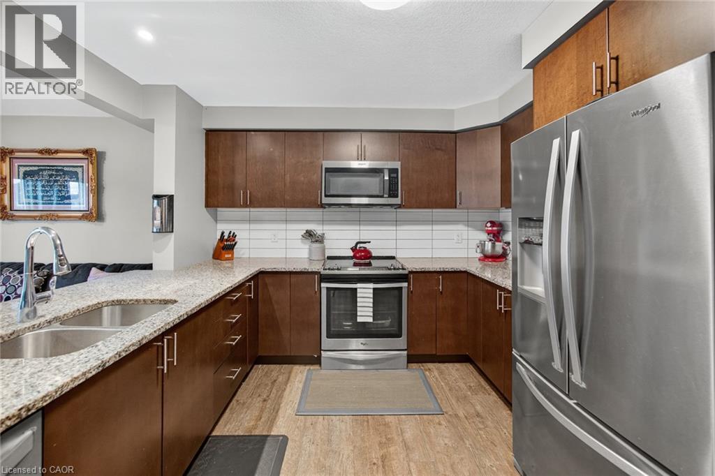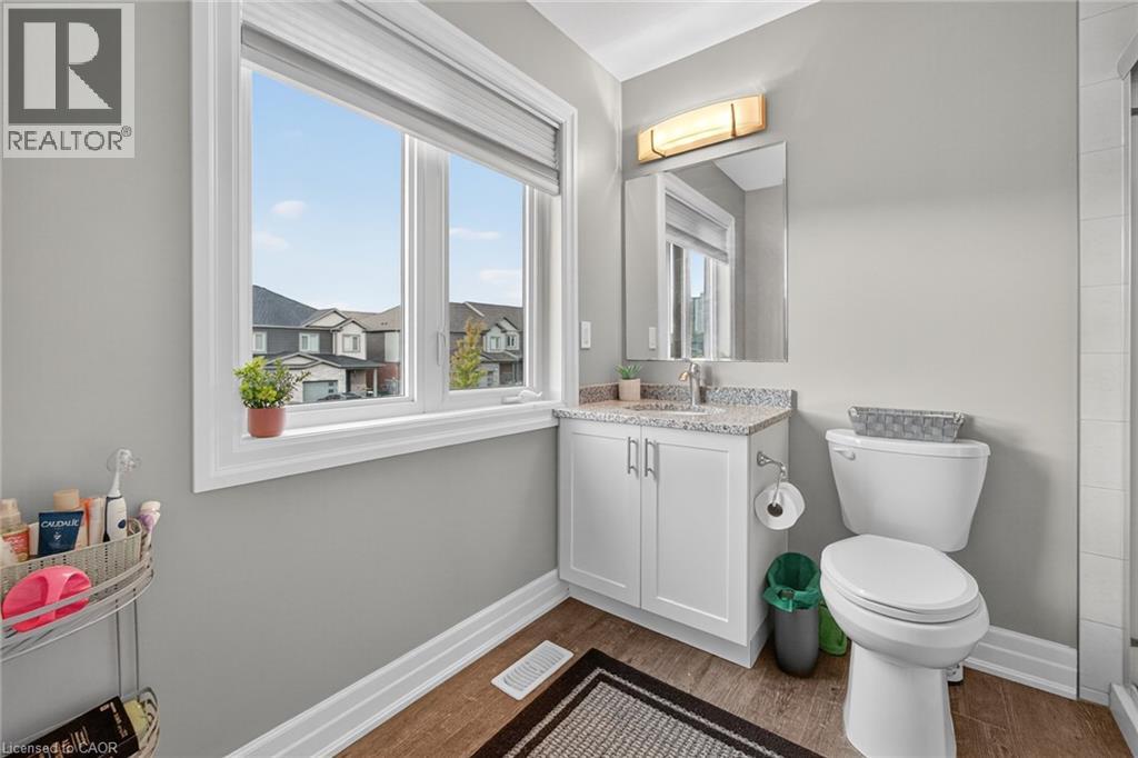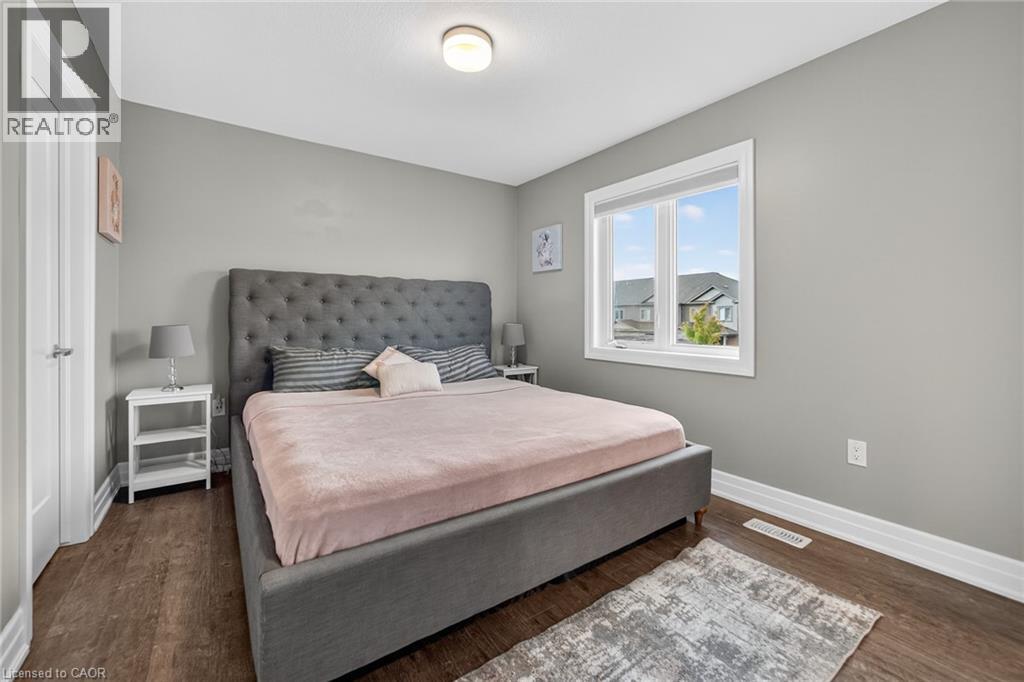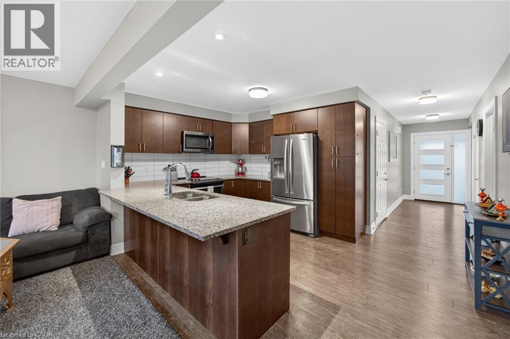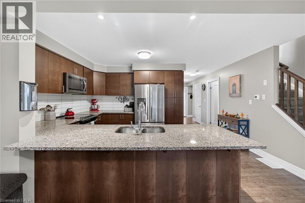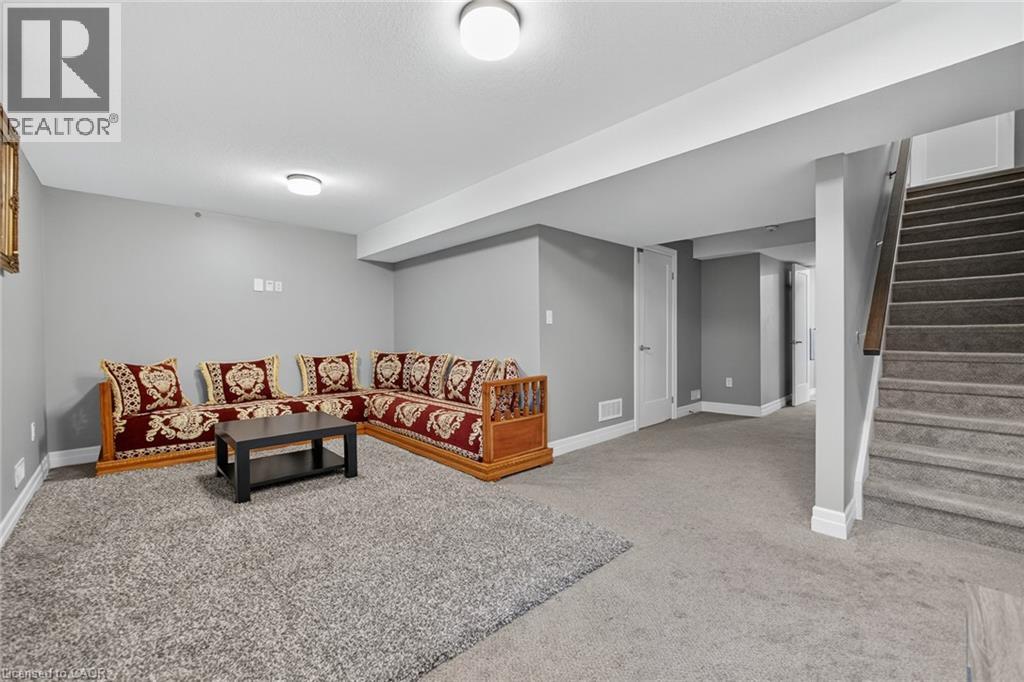 Exquisite Freehold Townhome Overlooking Serene Green Space Wow Over $25,000 in Upgrades Fully Finished Basement Coveted Family Location Welcome to 34 Nieson Street, an elegantly upgraded freehold townhome that seamlessly blends modern sophistication with everyday comfort. Set within a desirable, family-oriented neighbourhood, this residence offers exceptional proximity to schools, parks, shopping, and Highway 401providing both convenience and connection. From the moment you arrive, the home’s refined curb appeal captivates, showcasing a stone and brick façade, a covered front porch, and a single-car garage. Inside, the open-concept main floor welcomes you with hardwood laminate flooring, abundant natural light, and a graceful flow between the principal living spaces. The gourmet kitchen is a statement of style and function, featuring granite countertops, stainless steel appliances, modern cabinetry, and an L-shaped breakfast bar — perfect for both casual dining and elegant entertaining. Upstairs, the primary suite provides a tranquil retreat, complete with a spacious walk-in closet and a spa-inspired ensuite highlighted by a glass walk-in shower. Two additional sunlit bedrooms, a 4-piece main bath, and convenient second-floor laundry complete this beautifully appointed level. The fully finished basement enhances the home’s versatility, offering a generous recreation room, a stylish new 4-piece bathroom, and ample storage space — ideal for a home office, fitness studio, or guest suite. With over $25,000 in thoughtful upgrades, premium finishes throughout, and a picturesque green-space backdrop, 34 Nieson Street delivers a truly refined living experience — move-in ready and designed to impress. (id:51158)