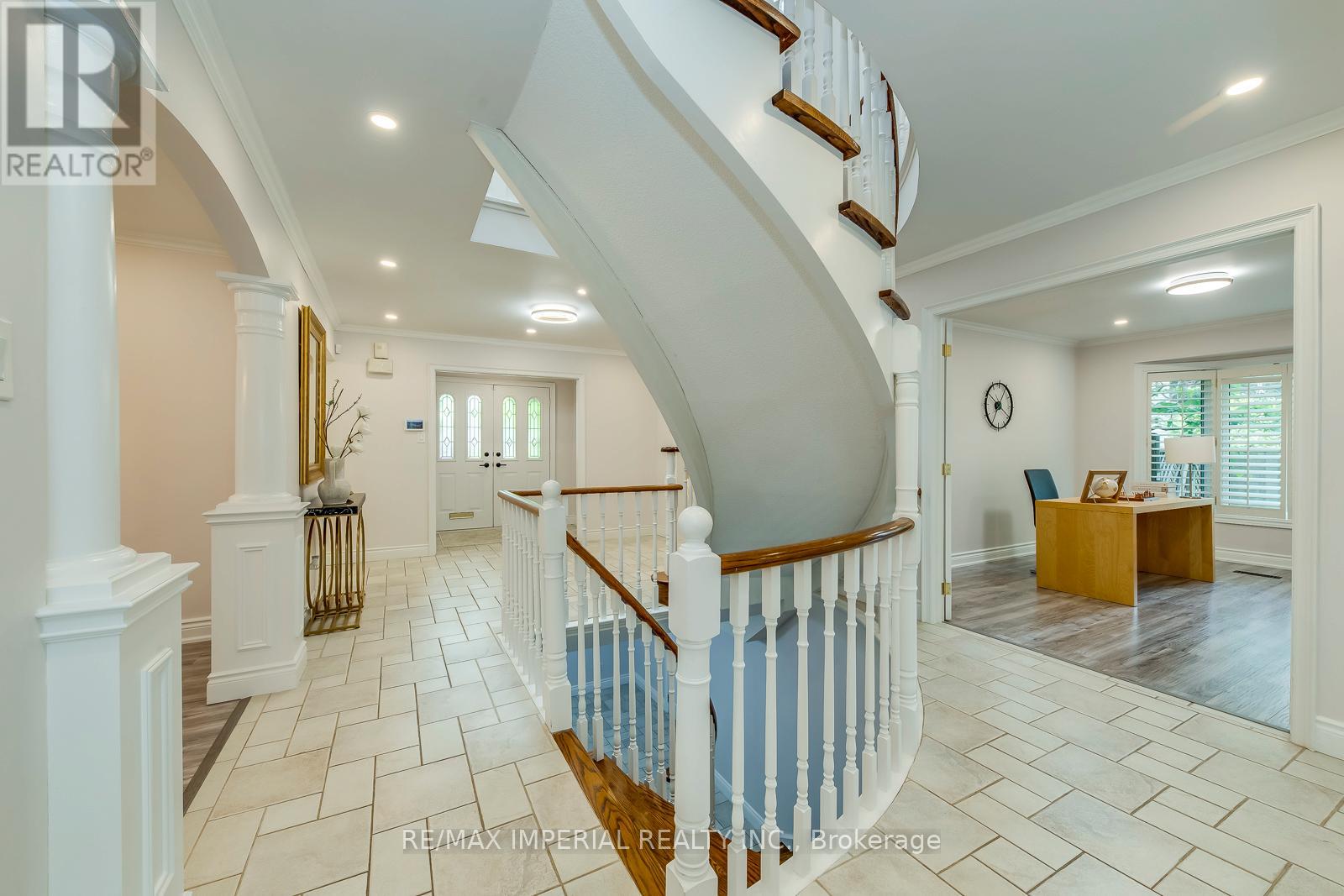 Motivated Seller. Welcome to this stunning 4-bedroom, 5-bath executive home nestled on a rare 0.59-acre lot in Oakville's prestigious Eastlake community. Located on a quiet cul-de-sac with no rear neighbours, this all-brick home features a tiled roof, mature landscaping, and exceptional curb appeal.Inside, you are greeted by a sun-filled living room with floor-to-ceiling windows and a gas fireplace, a formal dining room perfect for entertaining, and a spacious cream-toned chefs kitchen with granite counters, a large centre island, and abundant cabinetry. The family room with its own fireplace, along with the bright breakfast area, opens onto a resort-style backyard.Step outside to your own private oasis featuring a pool, hot tub, pond, pergola, and a beautifully landscaped golf practice area with putting green and sand traps, perfect for relaxing or hosting family and friends.The main level also includes a dedicated office, powder room, and a laundry/mudroom with garage and side-door access.Upstairs, the luxurious primary suite offers a seating area with fireplace, a custom walk-in closet, and a spa-like 6-piece ensuite. Three additional bedrooms are generously sized and include either private or Jack & Jill bath access.A finished basement adds a large recreation room, 3-piece bath, and ample storage.Located within top-ranked school zones (EJ James & Oakville Trafalgar), and just minutes from GO Transit, highways, and all major amenities.Don't miss this rare opportunity to own a private resort-style home in one of Oakville's most sought-after communities.Book your showing today! (id:51158)