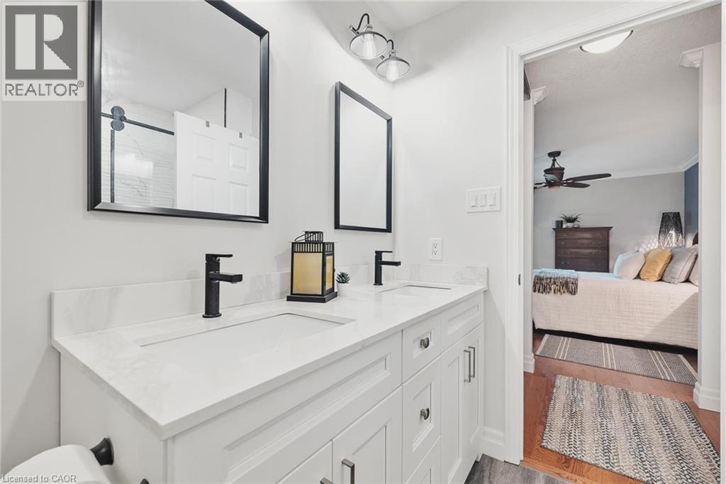 Welcome to the Riverwalk community of Cambridge, an upscale enclave along the Grand River where sophistication and nature live side by side. This end unit has been completely renovated to showcase a more open-concept main floor, with cleared sightlines that let light, laughter, and guests move freely. The main-floor bedroom offers both comfort and convenience, paired with a stunning 5-piece ensuite featuring a freestanding jetted tub, glass shower, and double vanity. From here, step directly onto the private deck and take in the serenity of a backyard that overlooks the Grand River, a view that feels like a retreat every single day. A versatile formal dining room doubles perfectly as a home office or library. The fully finished walkout basement expands your living space, complete with a second bedroom, additional living area, and the warmth of a gas fireplace. Ideal for guests, family, or a private retreat. Beyond the home itself, Riverwalk offers a lifestyle that blends comfort and community. Residents enjoy exclusive access to amenities such as a clubhouse, party room, and visitor parking, all set within beautifully maintained grounds that include a community garden and arboretum. Step outside and you’re just moments from the Walter Bean Grand River Trailhead, perfect for morning walks, cycling, or simply soaking in the riverside views. With recent upgrades including a 2025 heat pump and roof, and a setting that balances privacy with connection, this residence is ideal for those seeking an elevated living experience, whether downsizing in style or embracing riverside living for the first time. (id:51158)
