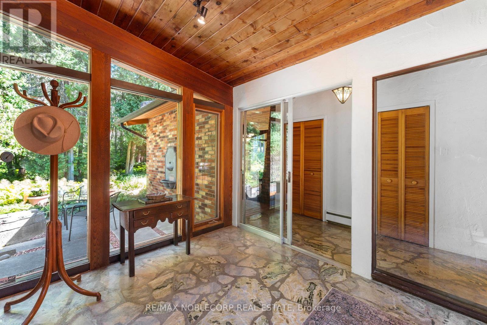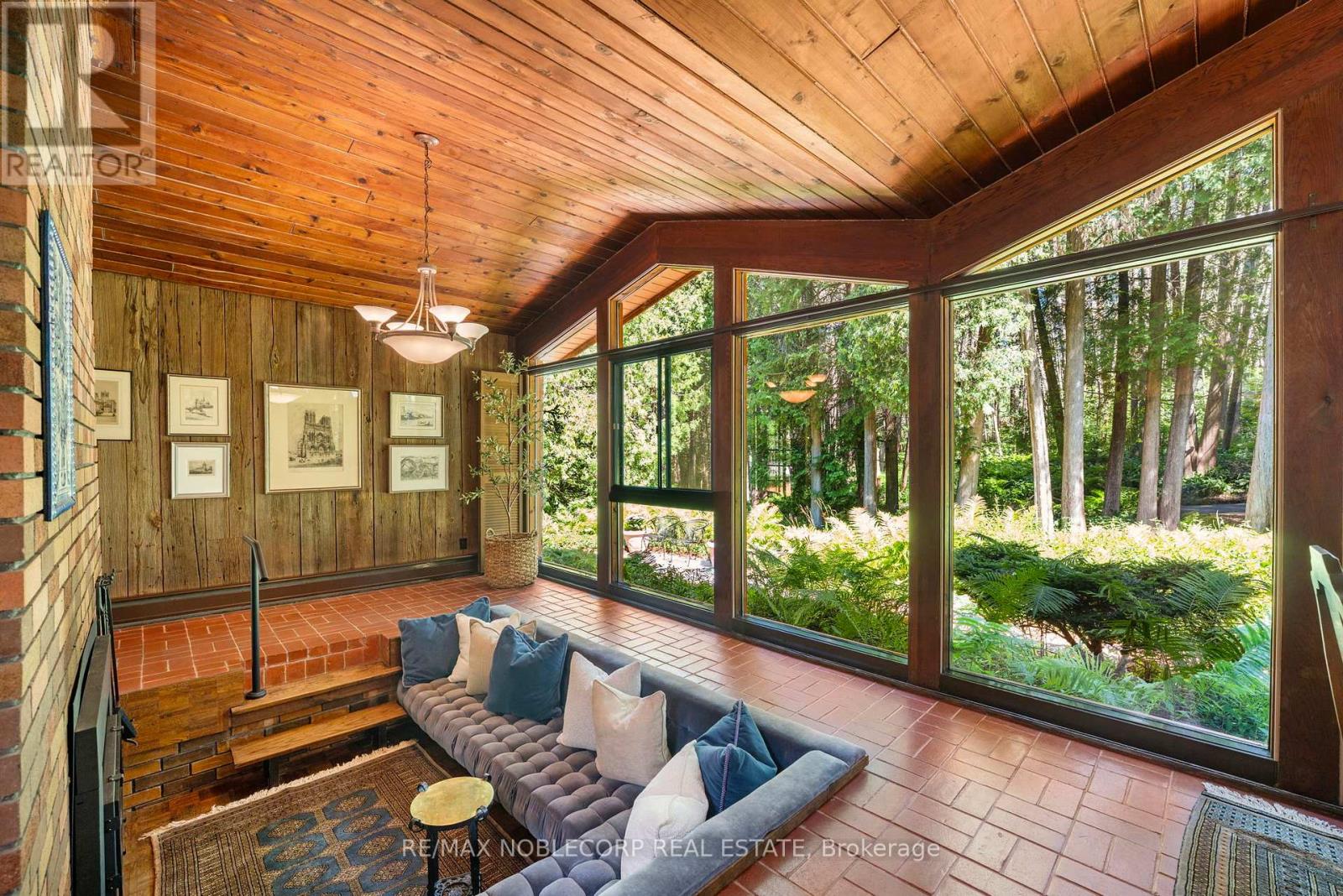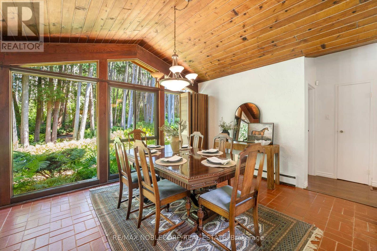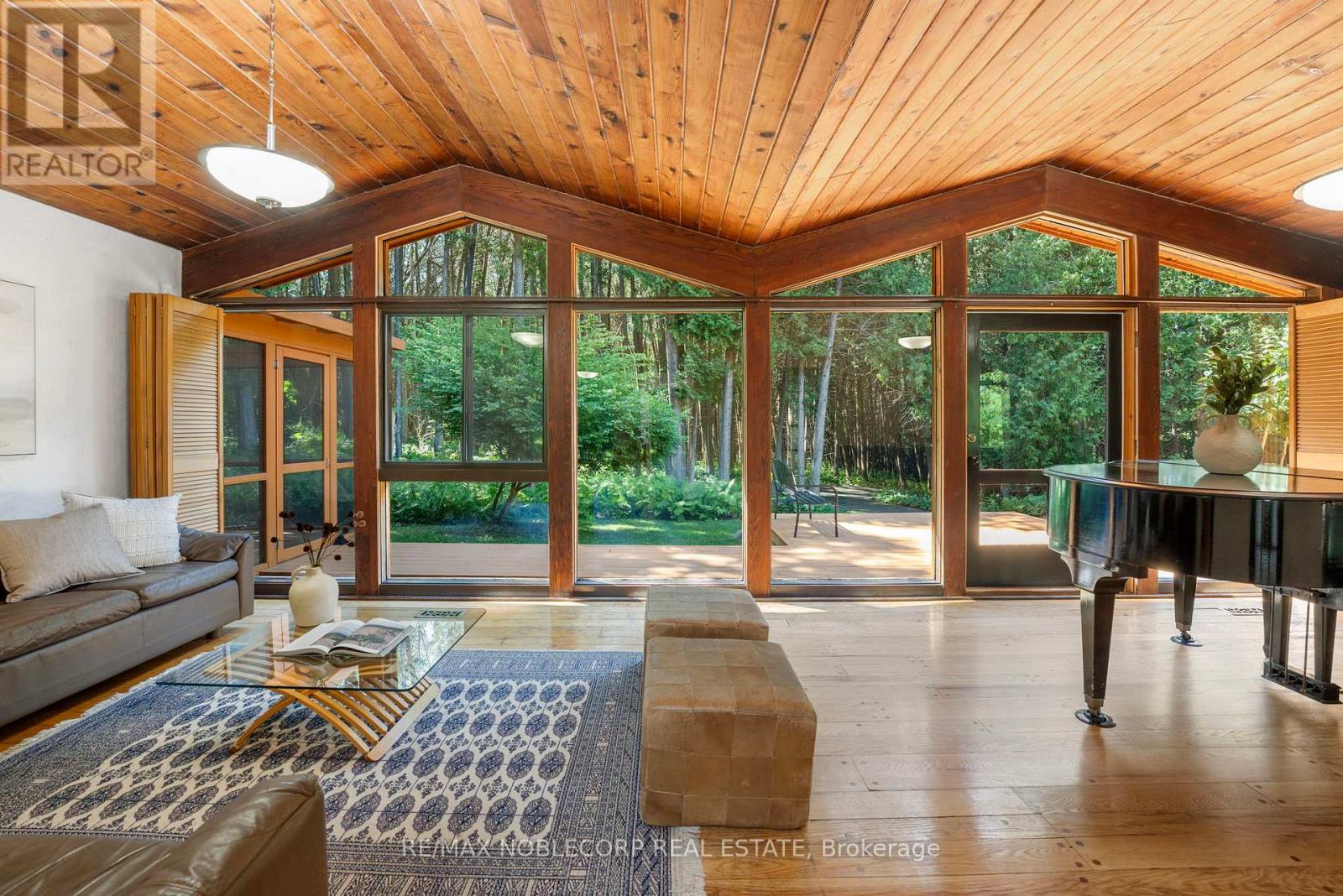 Welcome to 3435 Greenwood Rd sitting on this distinguished private lot (235.20 ft x 377.76 ft). Nestled in the peaceful village of Greenwood, this one-of-a-kind architectural custom-built home offers privacy, character, and outdoor beauty on a lush 2.01 acres. With 2,505 sq ft of finished living space, this home blends timeless design with natures tranquilly. Inside, enjoy floor-to-ceiling windows, solid cedar ceilings, and a sunken seating area with a natural gas fireplace. The living room features historic Casa Loma oak pegged hardwood, while the skylit kitchen flows into open-concept dining and living areas. Three spacious bedrooms are on the main floor, plus a private lower-level 4th bedroom perfect for guests or in-laws. Outdoor living is a dream with 925 sq ft of decking, a screened gazebo, a 335 sq ft patio, a 755 sq ft pool patio with casita, and a stunning 30' x 40' hexagonal pool. The grounds include mature trees, garden patios, and a second well providing an unlimited water supply. A spacious outbuilding with Hydro service provides an additional 490 sq feet of vehicle storage /workshop space **Key features: Circular, double driveway (repaved 2023)Two-door garage (490 sq ft) + tool storage. Detached 2-car outbuilding/workshop (465 sq ft) with hydro service. Pool hut for storage (80 sq ft) Natural gas furnace and central A/C New asphalt & commercial-grade roofs (2015 & 2023) Updated plumbing & electrical (dates unknown)Underground Electric and High Speed Internet Cable Walk to Greenwood Conservation Area, Valley View Public School, and the future Pickering Heritage Centre (2026). Quick access to Hwy 407/401.A rare offering where history, privacy, and lifestyle converge in one of Pickering's most treasured communities. (id:51158)