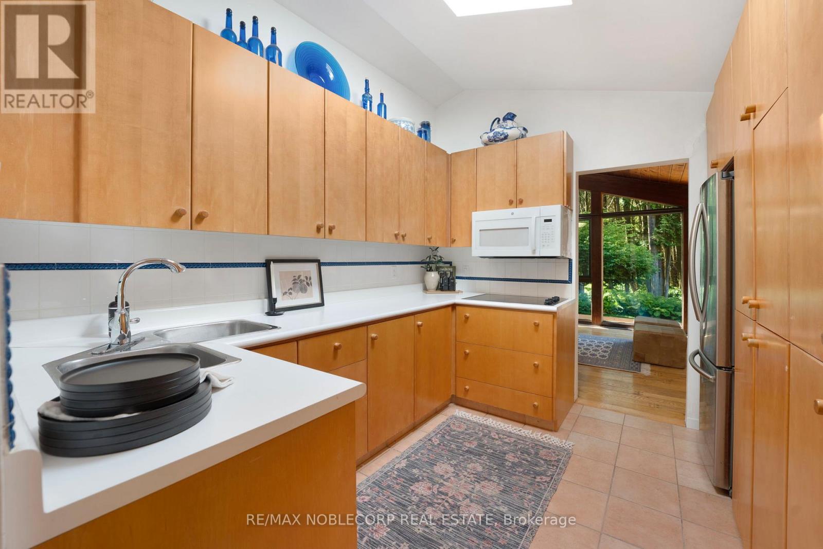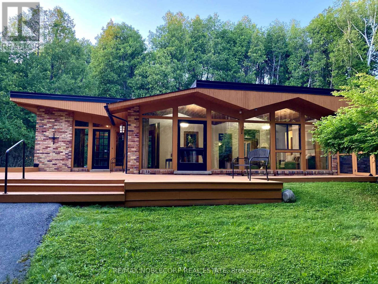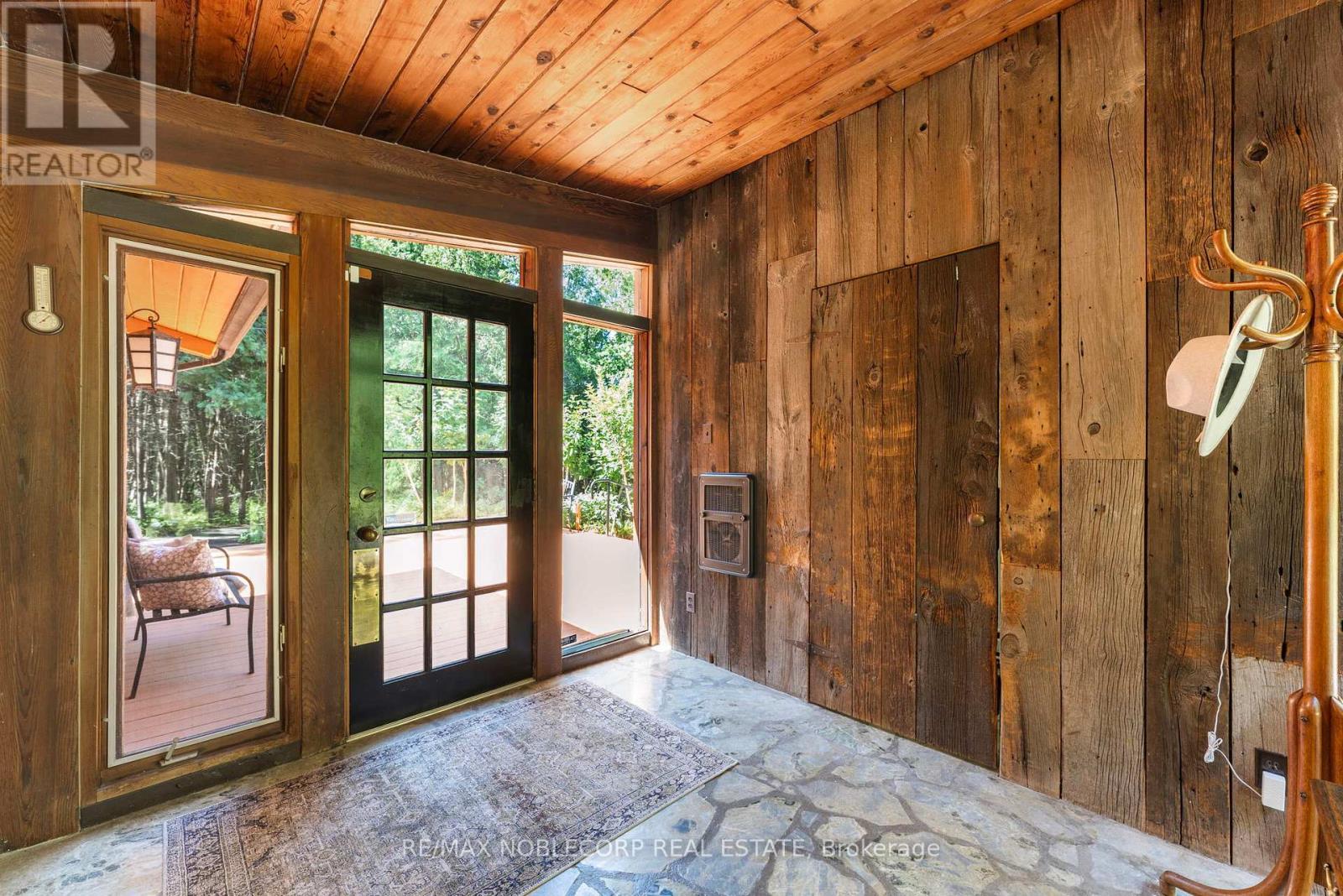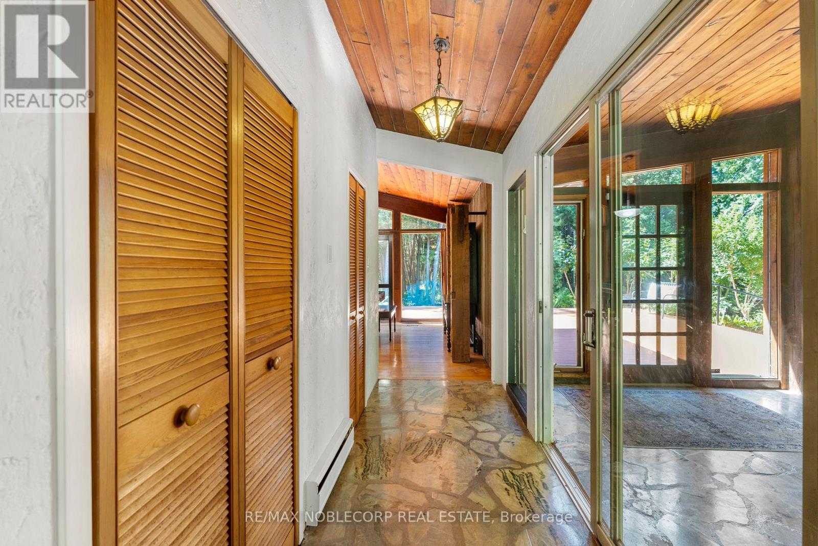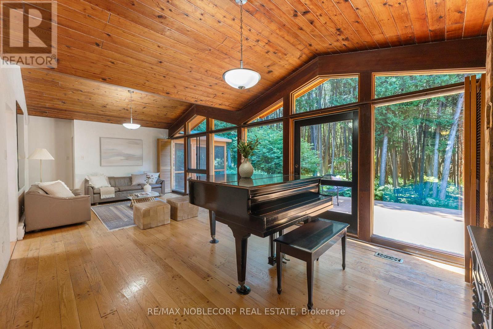 Welcome to 3435 Greenwood Rd sitting on this distinguished private lot (235.20 ft x 377.76 ft). Nestled in the peaceful village of Greenwood, this one-of-a-kind architectural custom-built home offers privacy, character, and outdoor beauty on a lush 2.01 acres. With 2,505 sq ft of finished living space, this home blends timeless design with natures tranquilly. Inside, enjoy floor-to-ceiling windows, solid cedar ceilings, and a sunken seating area with a natural gas fireplace. The living room features historic Casa Loma oak pegged hardwood, while the skylit kitchen flows into open-concept dining and living areas. Three spacious bedrooms are on the main floor, plus a private lower-level 4th bedroom perfect for guests or in-laws. Outdoor living is a dream with 925 sq ft of decking, a screened gazebo, a 335 sq ft patio, a 755 sq ft pool patio with casita, and a stunning 30' x 40' hexagonal pool. The grounds include mature trees, garden patios, and a second well providing an unlimited water supply. A spacious outbuilding with Hydro service provides an additional 490 sq feet of vehicle storage /workshop space **Key features: Circular, double driveway (repaved 2023)Two-door garage (490 sq ft) + tool storage. Detached 2-car outbuilding/workshop (465 sq ft) with hydro service. Pool hut for storage (80 sq ft) Natural gas furnace and central A/C New asphalt & commercial-grade roofs (2015 & 2023) Updated plumbing & electrical (dates unknown)Underground Electric and High Speed Internet Cable Walk to Greenwood Conservation Area, Valley View Public School, and the future Pickering Heritage Centre (2026). Quick access to Hwy 407/401.A rare offering where history, privacy, and lifestyle converge in one of Pickering's most treasured communities. (id:51158)