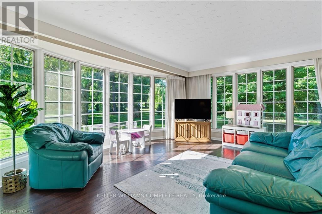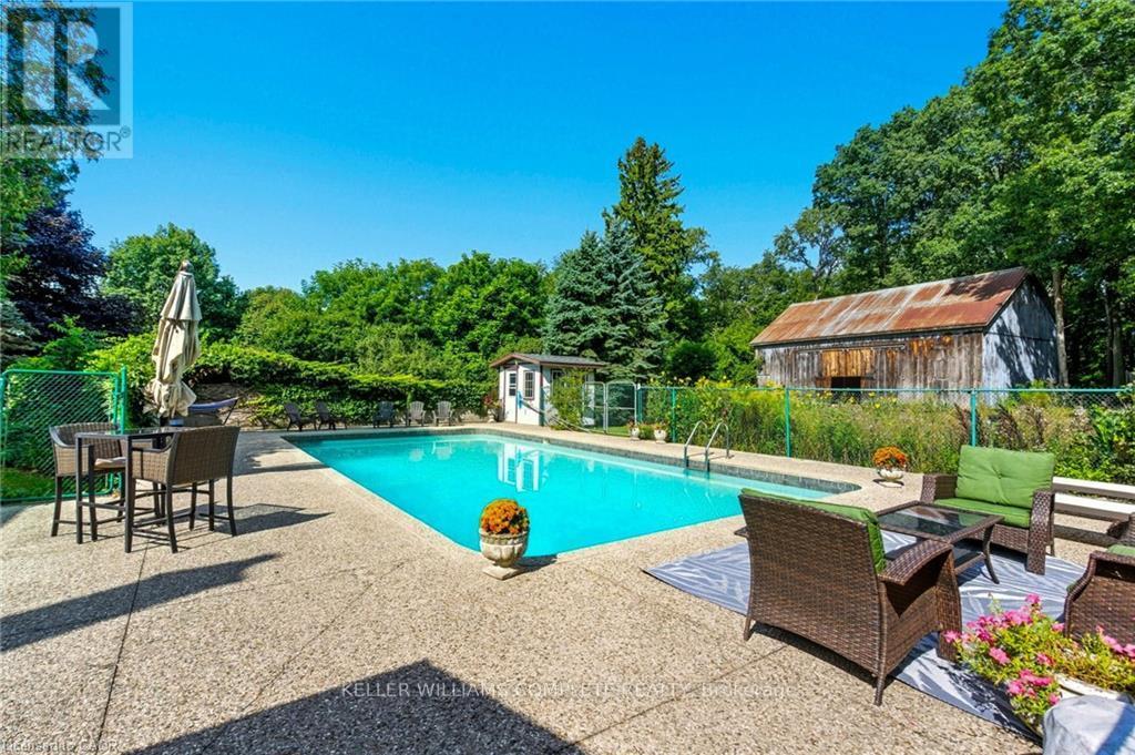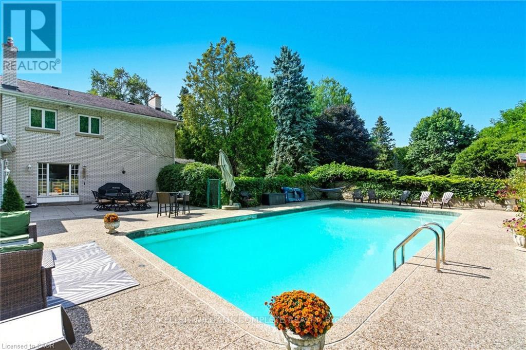 RARE OPPORTUNITY!!! This property is truly unique. It can be your dream family home on 2.4 acres w/ land & a barn surrounded by Conservation land while still being central to all the amenities of Ancaster & it has potential development opportunity. Set back from the road & surrounded by mature trees this home provides privacy & tranquility. There is a special peaceful feeling when at this gorgeous property. The home begins w/ a grand foyer setting a tone of elegance from the moment you arrive. At the heart of the main floor is a newly remodeled modern farmhouse kitchen, dining room, sitting area by the wood stove & 2 separate living areas - a cozy living room w/ gas f/p & a family room perfect for a kids play area. A main floor office adds convenience for working or studying from home. Upstairs the spacious bedrooms provide privacy & comfort for the whole family. The finished basement extends the home's functionality w/ a flex space for a 4th bedroom, hobbies or gym. With a separate entrance the original home has a basement for storage & workbench area accessed from the garage. Outdoors this property is designed for family living & entertaining. The fenced-in pool w/ surrounding lounge areas creates a true summer retreat while the expansive fenced yard gives children & pets space to play safely. A charming barn adds both character & versatility whether for events, storage, hobbies or creative projects. The barn has running water w/ its own bathroom & septic bed. The barn has been used for 2 weddings & several large group events. Additional features include a double-car garage w/ inside entry, generous parking for 12 cars & during events lawn parking for approximately 50 cars. Attention developers, land investors, small business owners & anyone looking for the most beautiful lot you could imagine in city limits. This is more than a house - it's a family retreat designed for making memories, celebrating milestones & enjoying the best of Ancaster living! (id:51158)