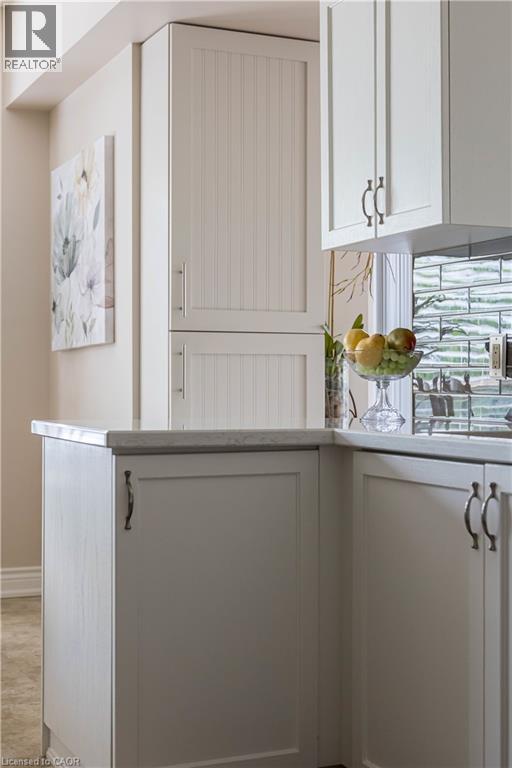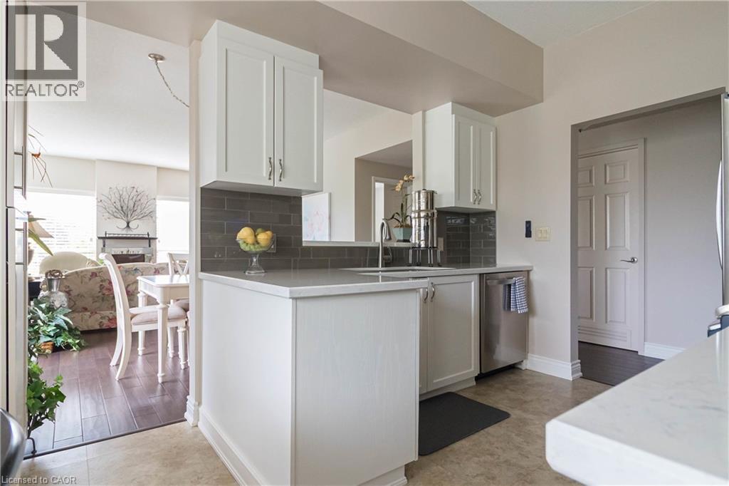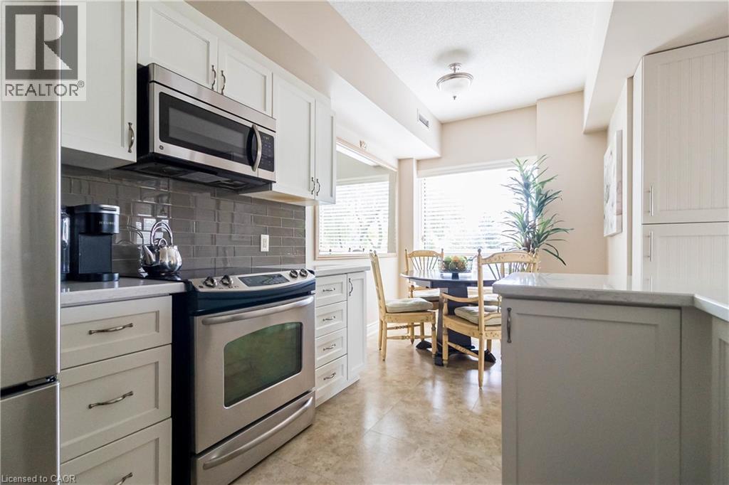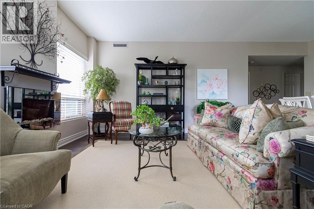 $722 MonthlyWelcome to the sought-after Chelsea Building in Burlington’s desirable Headon Forest community. This immaculately maintained, sun-filled 2-bedroom, 2-bath corner unit boasts an impressive 1,317 sq. ft. of living space with a bright southwest exposure. Step inside to discover an inviting, carpet-free open-concept design- illuminated by a wealth of large windows, 9-foot ceilings, quality laminate flooring, and neutral paint throughout. The beautifully updated kitchen features quartz countertops, glass subway tile backsplash, stainless steel appliances, an under-mount sink, crisp white cabinetry, and a pantry. The breakfast nook with an oversized window comfortably seats four. A convenient pass-through with a quartz ledge opens into the dining room, which leads to a curved balcony providing private vistas of mature blue spruce and maple trees. The spacious living room offers 3 large windows and an electric fireplace, creating a warm and airy space. Its primary bedroom retreat includes a 4-piece ensuite and walk-in closet, while its second bedroom is ideal for guests, a home office, or den, complemented by a 3-piece bathroom. This home also features recent mechanical upgrades: AC (2024), dishwasher (2023), and furnace (2022). Enjoy the convenience of 1 underground parking space and a locker on the same level as the unit. The well-managed building has recently refreshed its foyer and hallways, and offers fantastic amenities: a party/meeting room, exercise room, car wash, and ample visitor parking. All this in an unbeatable location- just steps to plazas, schools, and parks, close to Millcroft Golf Course, and with easy highway access. This unit is a true treasure that promises an extraordinary living experience! (id:51158)