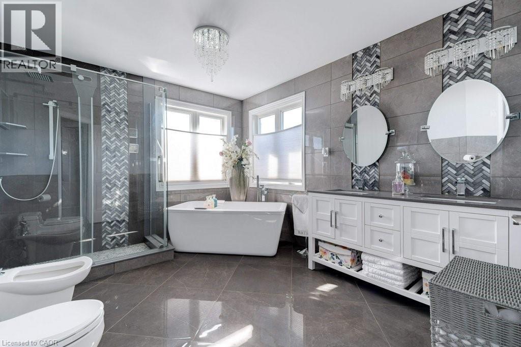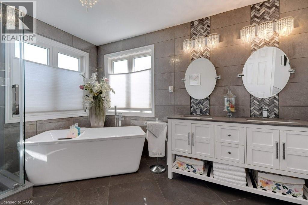 Beautiful two-story custom multigenerational style home in Winona Park. Spanning 3800sqft over main and upper floors, open-concept design and an additional 1700sqft basement just waiting for your personal touches perfect for a inlaw set-up. Seamless indoor-outdoor flow to your private backyard oasis complete with a sparkling salt water pool, covered dining area and plenty of deck space for lounging—ideal for entertaining or relaxing in style. Located in the desirable 'Community, Beach' neighbourhood just minutes from great schooling and scenic trails for family fitness. The exquisite entry features a 2-story foyer and curved staircase to the expansive upstairs area with four massive bedrooms with their own ensuites. The grand primary bedroom with sitting area offers 5pc ensuite bath and his/hers walk-in closets. A second generous bedroom offers a nanny suite layout with its own ensuite bath and extra space for relaxing. The expansive gourmet kitchen is great for entertaining offering brand new 112x 51 island, granite countertops, and stainless steel appliances. Convenient main floor laundry/butlers pantry area just off the kitchen with its own granite and backsplash and walk out to back yard. Great room off the kitchen features custom cabinetry, cozy gas fireplace and newer flooring throughout. Open plan dining and living room area is perfect for hosting guests. Office/Den on main floor with powder room. Natural light everywhere with new big windows and california shutters and blinds. New asphalt double wide driveway being constructed. Close access to highways, hospitals, transit, and upcoming GO train, 50 Point Conservation Area, Costco, and Winona Crossing for shopping. Great parks and schools within walking distance. (id:51158)