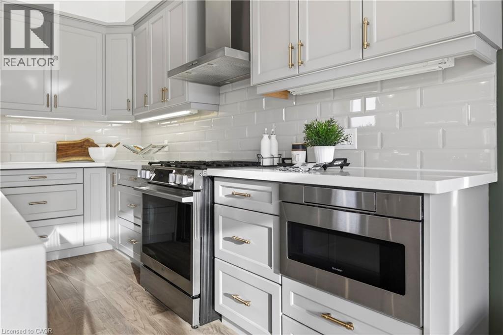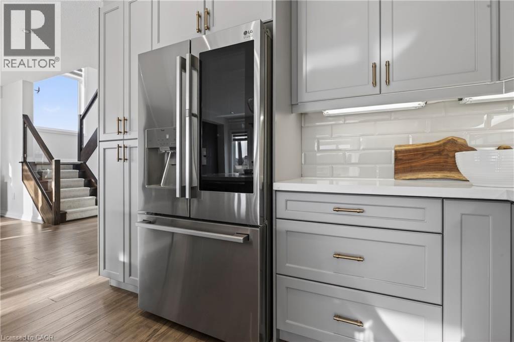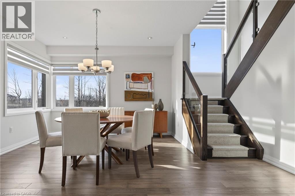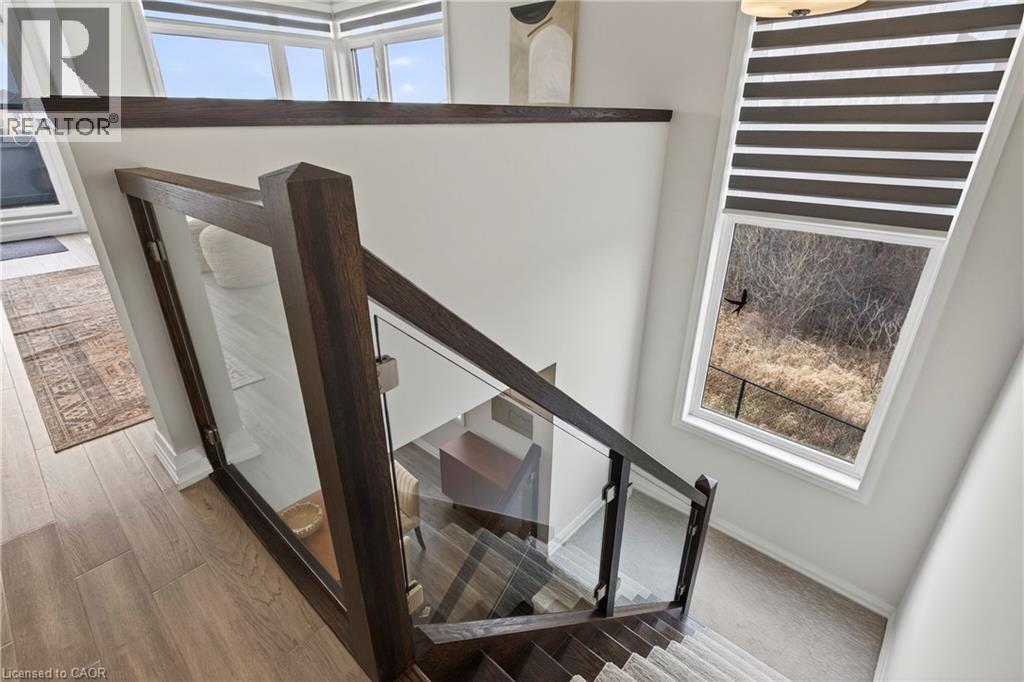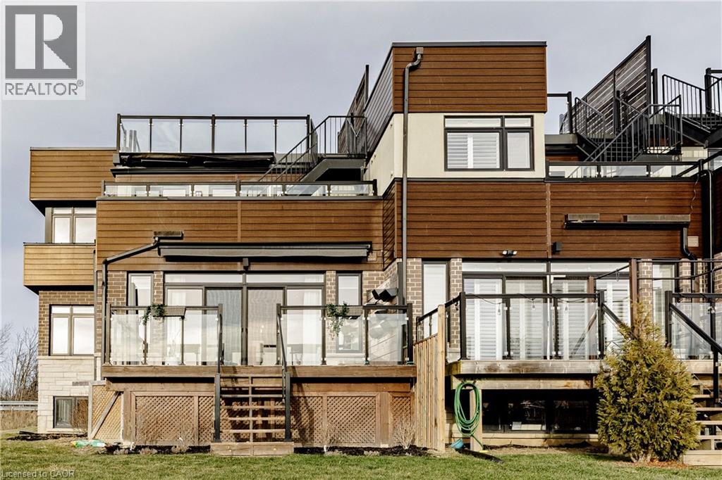 Beyond a home, Fallingwater is a statement of arrival and a masterpiece of the esteemed Losani Collection. This is not merely Unit #1; it is the vision that set the standard, the original model home that showcased the full potential of contemporary luxury living in Stoney Creek. Commanding the most expansive, pie-shaped lot, this end-unit sanctuary offers unrivaled privacy and a breathtaking, direct view over a tranquil outdoor pond—a serene vista enjoyed from your principal rooms. With only three units in the complex, exclusivity is paramount, and this residence represents the undisputed pinnacle. Step inside to discover over 2,441 square feet of impeccably designed, living space, artfully enhanced by high ceilings that amplifies the sense of light and volume. The home unfolds with the grace of a gallery, leading you to a sprawling 164 sq. ft. elevated terrace, your private stage for outdoor entertaining. Ascend further to the 241 sq. ft. rooftop terrace—a crowning glory offering panoramic views and an unparalleled space for sunset soirees or peaceful contemplation. While other, more modestly scaled units are available in the complex, Fallingwater stands apart. It is the largest, the first, and by every measure, the finest. This is the home for those who seek not just square footage, but significance; not just a view, but a vista; not just a unit, but a legacy property. Presented with professional photography that captures its exquisite d architectural brilliance, Fallingwater awaits its final curator. This is your chance to acquire the cornerstone residence of Stone Creek's most distinguished address. (id:51158)