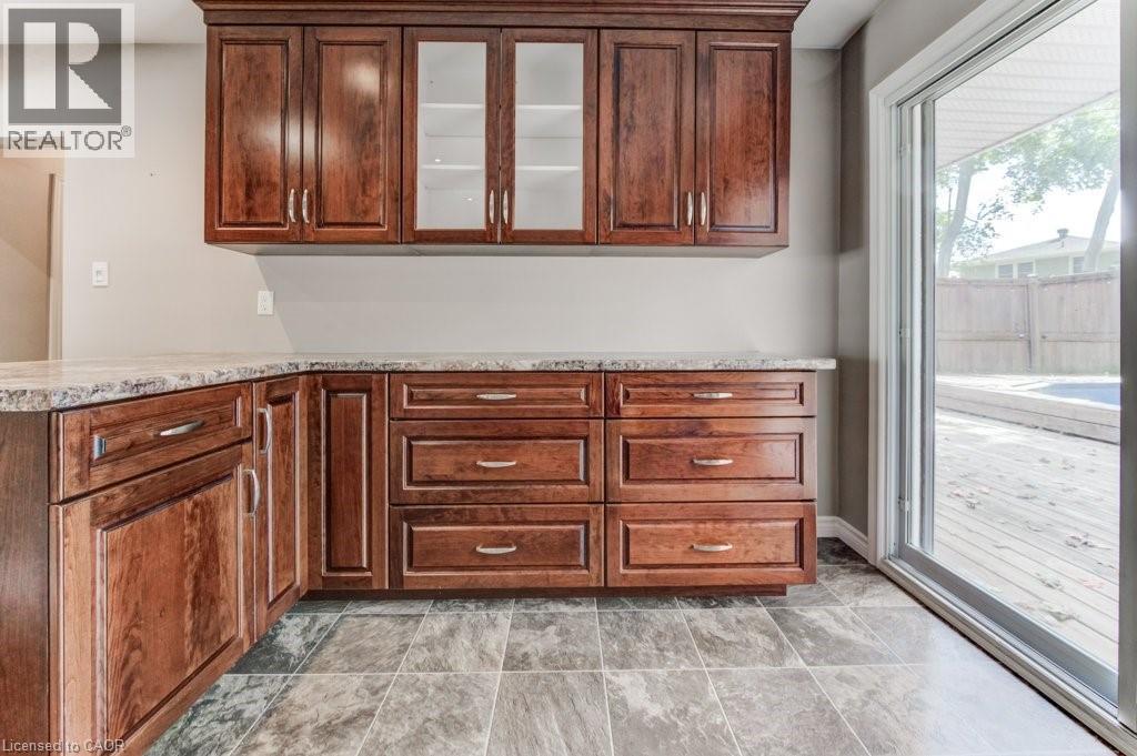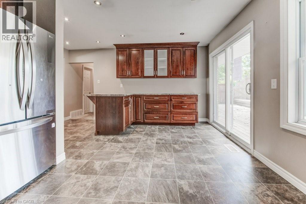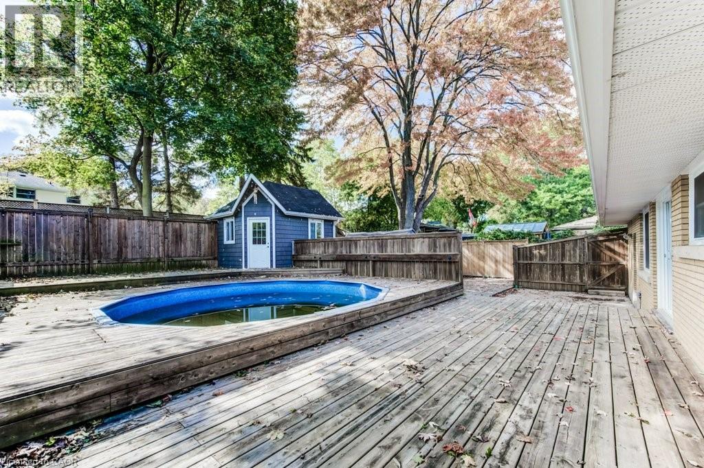 Tucked away on a peaceful, family-oriented street in one of Kitchener-Waterloo’s most desirable neighbourhoods, this 4-bedroom, 1 ½ storey home offers the perfect blend of comfort, style, and function. Thoughtfully updated throughout, it showcases a gorgeous open-concept kitchen and a modernized main floor washroom. The main level also features three spacious bedrooms with ample closet space, along with a bright living and dining area designed for both everyday enjoyment and hosting family gatherings. The upper level is dedicated to the private primary bedroom, a quiet retreat away from the main living spaces. The partially finished basement adds even more room to enjoy, complete with a large rec room, wet bar, gas fireplace, and a convenient 3-piece bath. Outside, discover a backyard paradise that feels like your own private escape. Walk out from the main floor to a multi-tiered deck overlooking a secluded, landscaped yard, perfect for entertaining, relaxing, or cooling off in the pool during summer months. (id:51158)