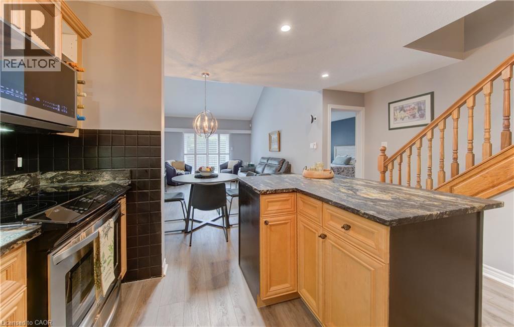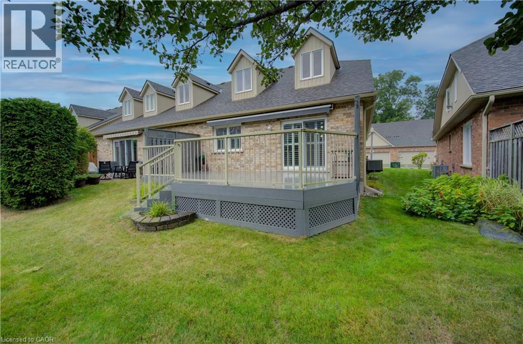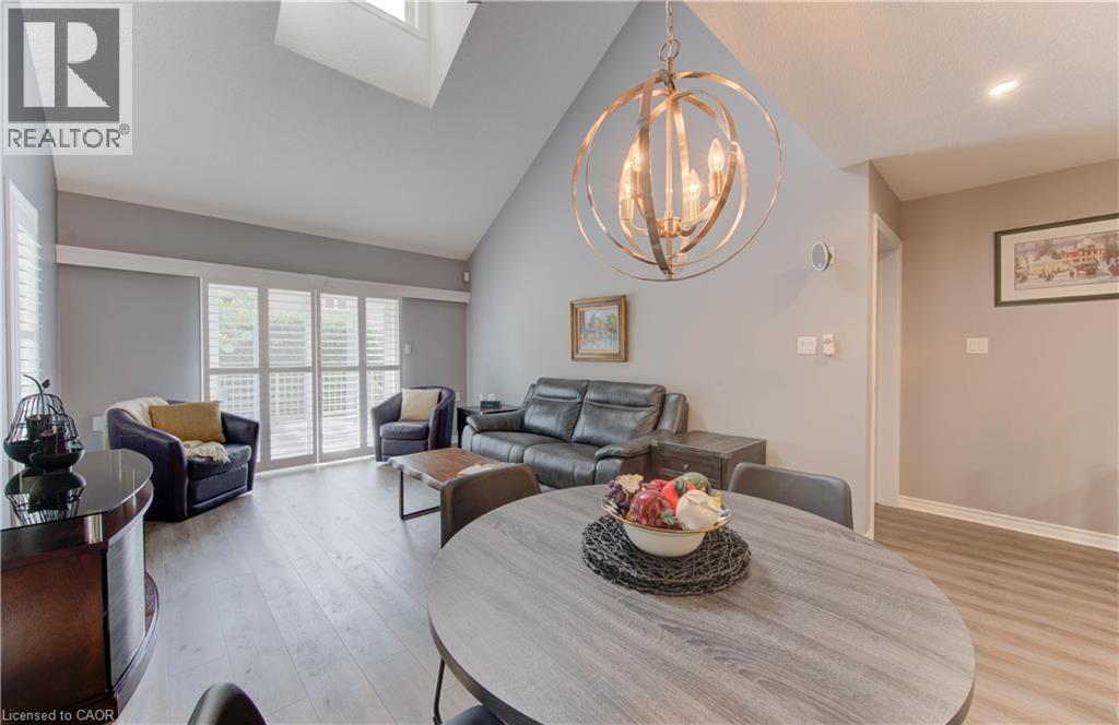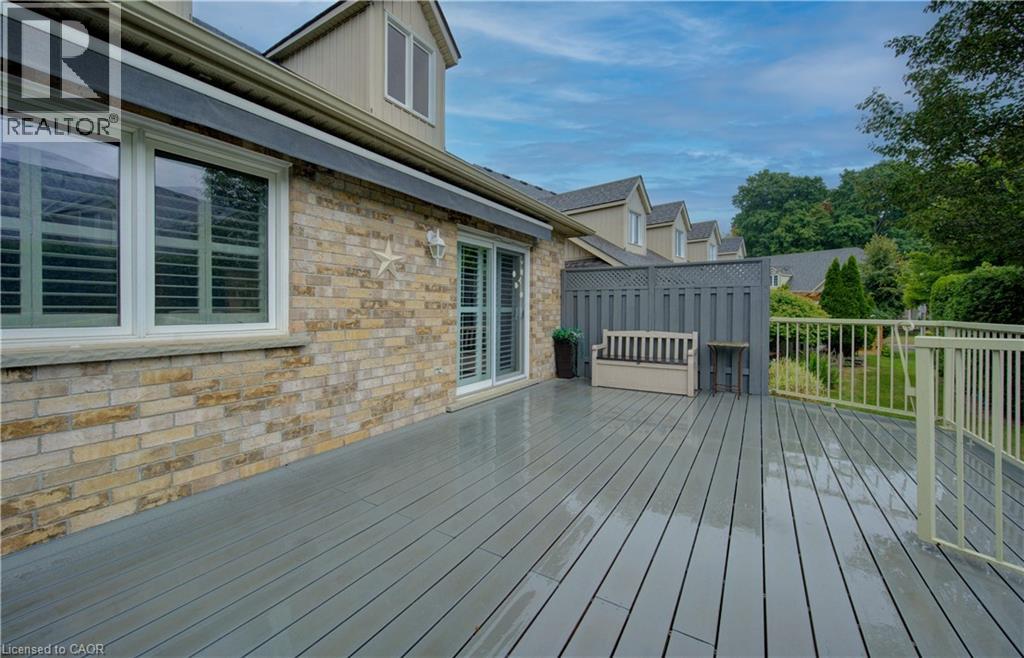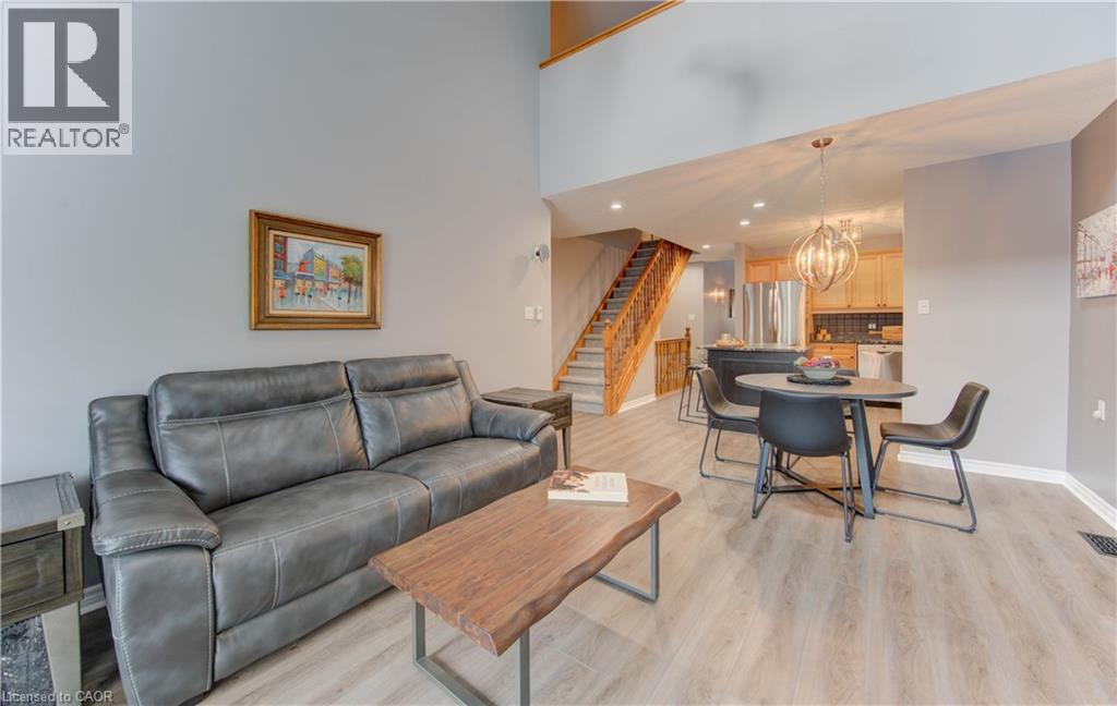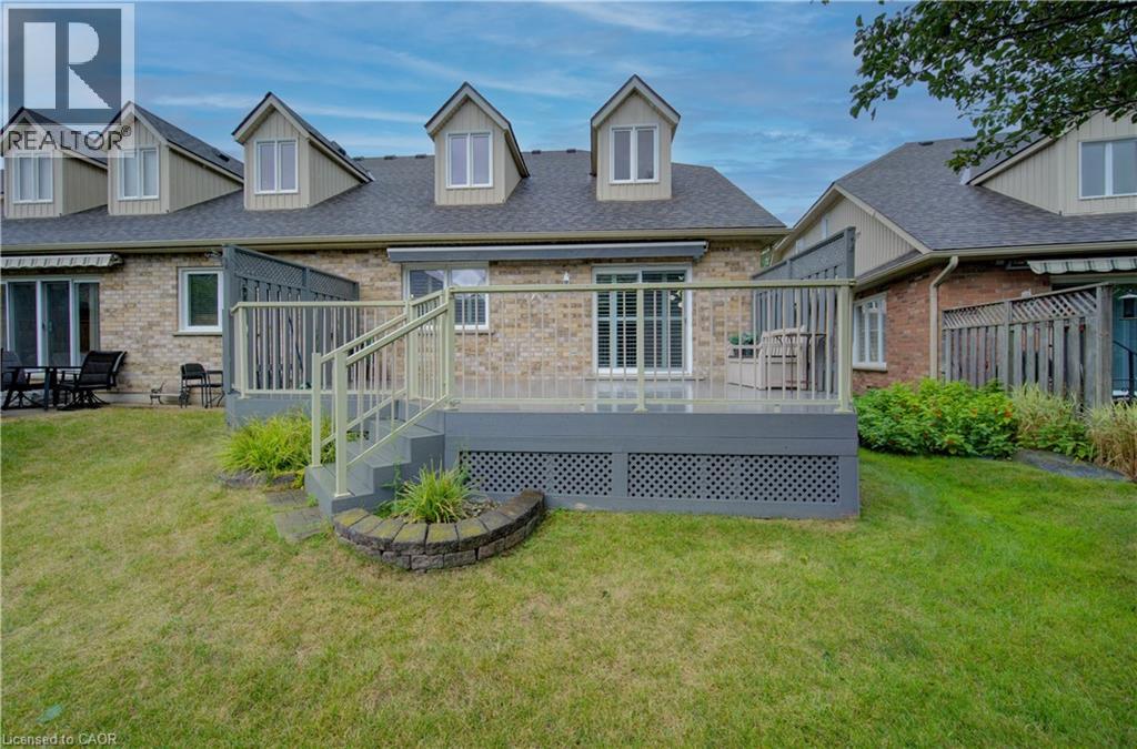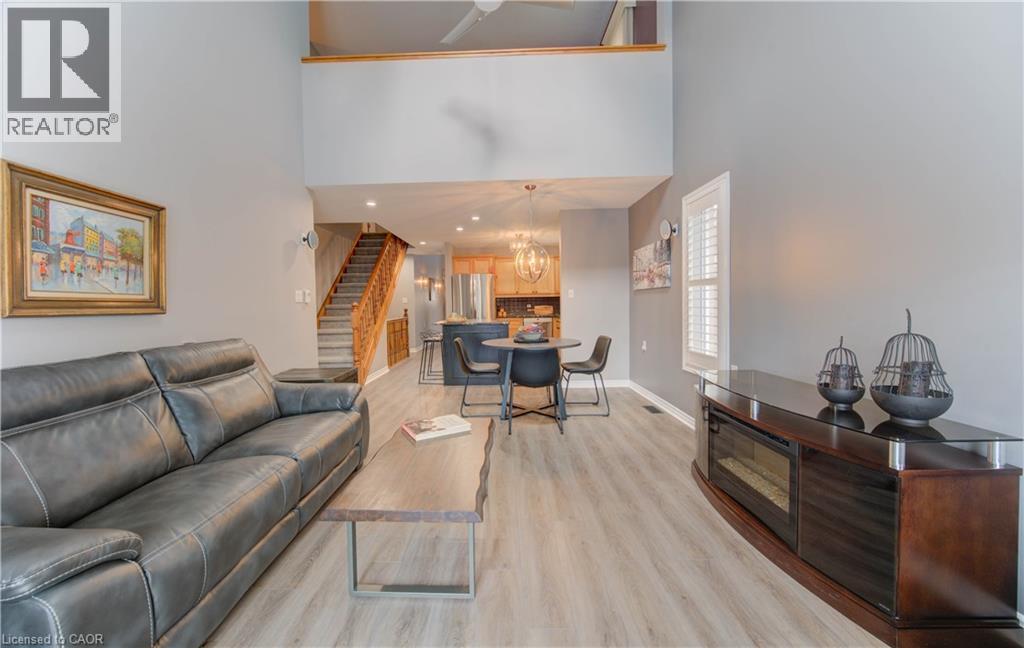 Welcome to this beautifully appointed condominium townhome, offering an ideal blend of comfort and convenience. Located in a sought-after neighborhood, this home boasts a main floor primary bedroom with a 3-piece ensuite for added privacy and luxury. The main floor bedroom or den is perfect for a home office or cozy reading nook, while the main floor laundry adds practical living. The heart of the home is the open-concept kitchen, featuring granite countertops and a seamless flow into the living room with vaulted ceilings, California shutters and a electric fireplace—perfect for relaxing or entertaining. The living room opens to a large deck with a power awning, offering an inviting space for outdoor enjoyment. Upstairs, a spacious loft overlooks the living room, adding a touch of openness and versatility. The second 4-piece bathroom provides convenience and comfort for family or guests. The lower level is fully finished with a generous rec room, ideal for a media room or play area, and a rough-in for a bathroom, providing future potential. A massive unfinished storage area ensures all your belongings have a place to call home. As part of this vibrant community, enjoy the Mill Clubhouse, a community favorite offering a games room, a gym, a community library, and the perfect space for hosting events. Ideally located, this amazing community is only a minute from the 401, backs right onto stunning hiking and biking trails by the Grand River, and is just seconds away from the Doon Valley Golf Club! This townhome is perfect for those looking for a low-maintenance, move-in-ready home with plenty of space to grow. Don't miss out on this exceptional opportunity—schedule your viewing today! (id:51158)