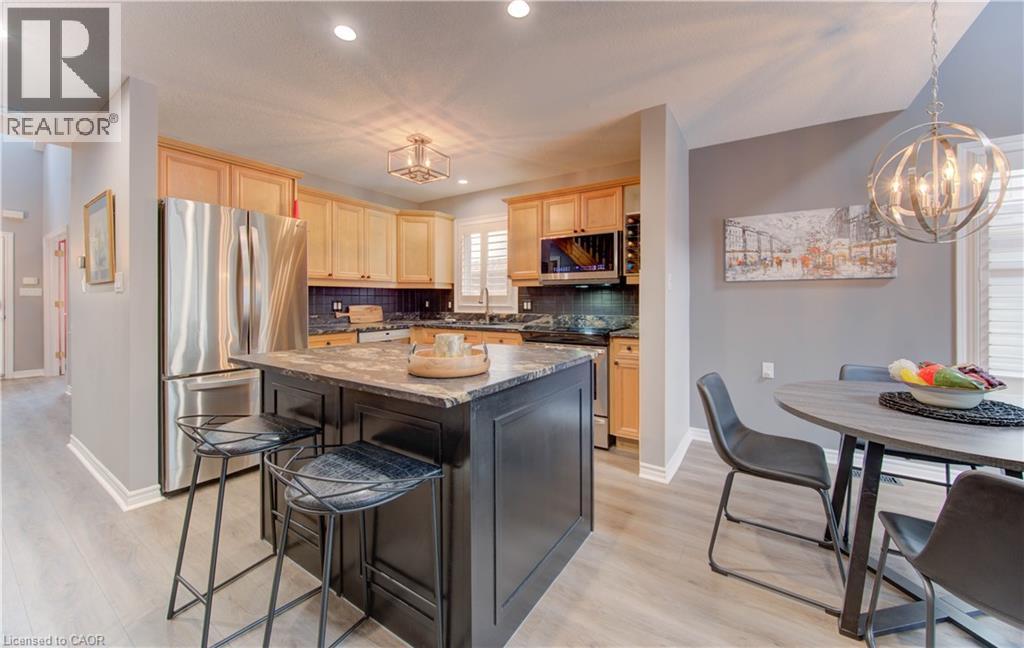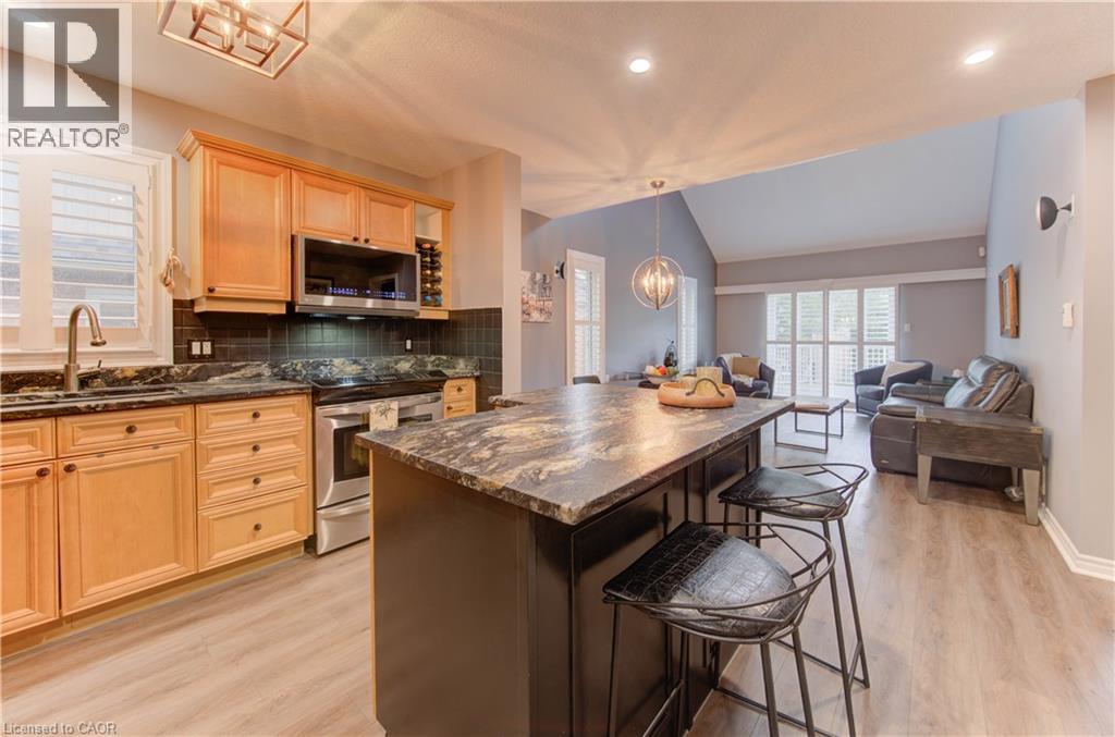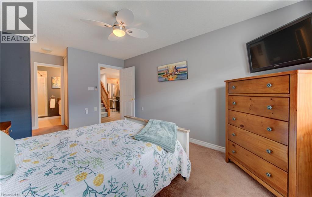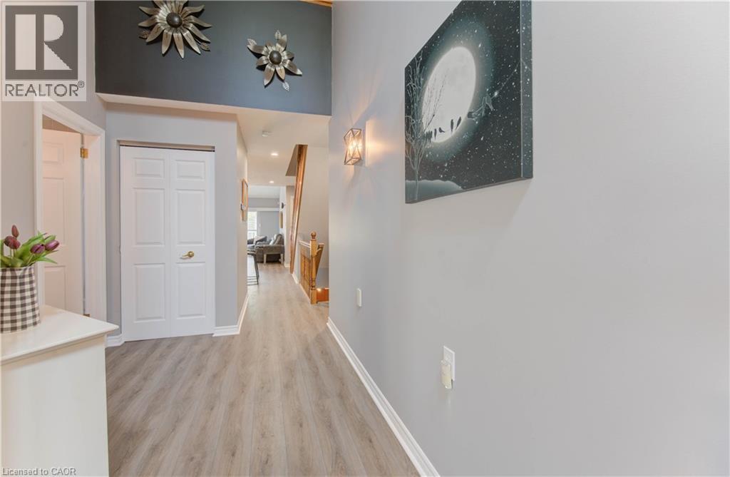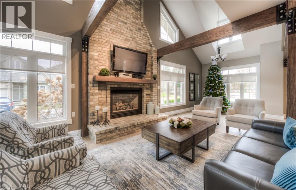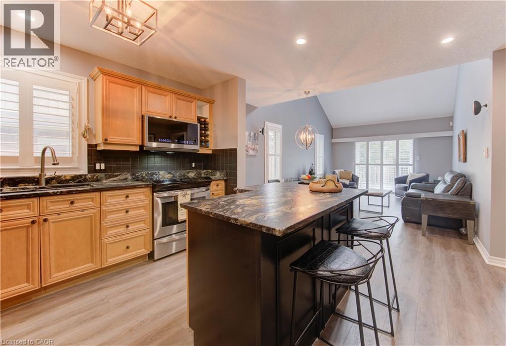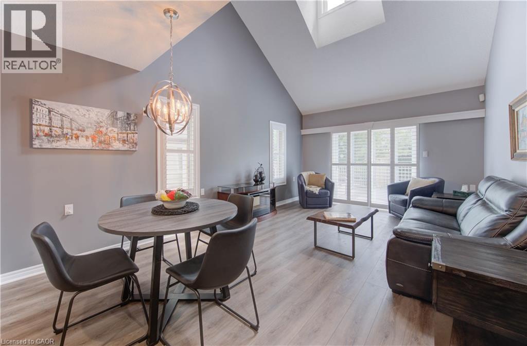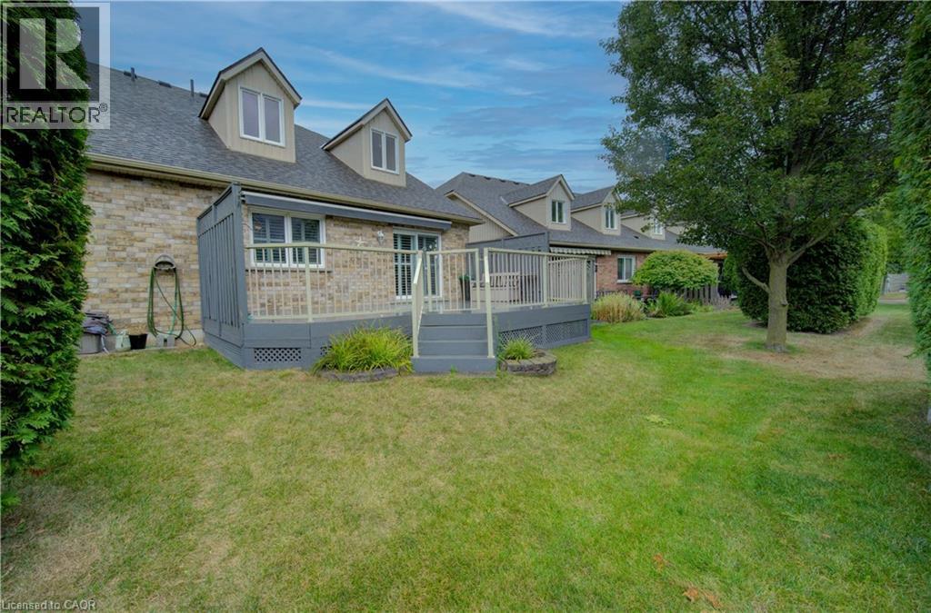 Welcome to this beautifully appointed condominium townhome, offering an ideal blend of comfort and convenience. Located in a sought-after neighborhood, this home boasts a main floor primary bedroom with a 3-piece ensuite for added privacy and luxury. The main floor bedroom or den is perfect for a home office or cozy reading nook, while the main floor laundry adds practical living. The heart of the home is the open-concept kitchen, featuring granite countertops and a seamless flow into the living room with vaulted ceilings, California shutters and a electric fireplace—perfect for relaxing or entertaining. The living room opens to a large deck with a power awning, offering an inviting space for outdoor enjoyment. Upstairs, a spacious loft overlooks the living room, adding a touch of openness and versatility. The second 4-piece bathroom provides convenience and comfort for family or guests. The lower level is fully finished with a generous rec room, ideal for a media room or play area, and a rough-in for a bathroom, providing future potential. A massive unfinished storage area ensures all your belongings have a place to call home. As part of this vibrant community, enjoy the Mill Clubhouse, a community favorite offering a games room, a gym, a community library, and the perfect space for hosting events. Ideally located, this amazing community is only a minute from the 401, backs right onto stunning hiking and biking trails by the Grand River, and is just seconds away from the Doon Valley Golf Club! This townhome is perfect for those looking for a low-maintenance, move-in-ready home with plenty of space to grow. Don't miss out on this exceptional opportunity—schedule your viewing today! (id:51158)