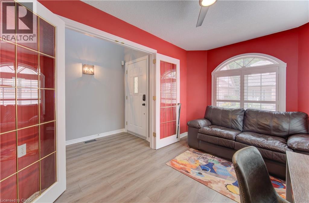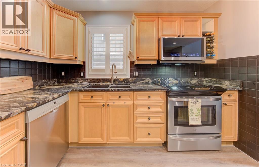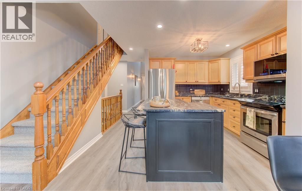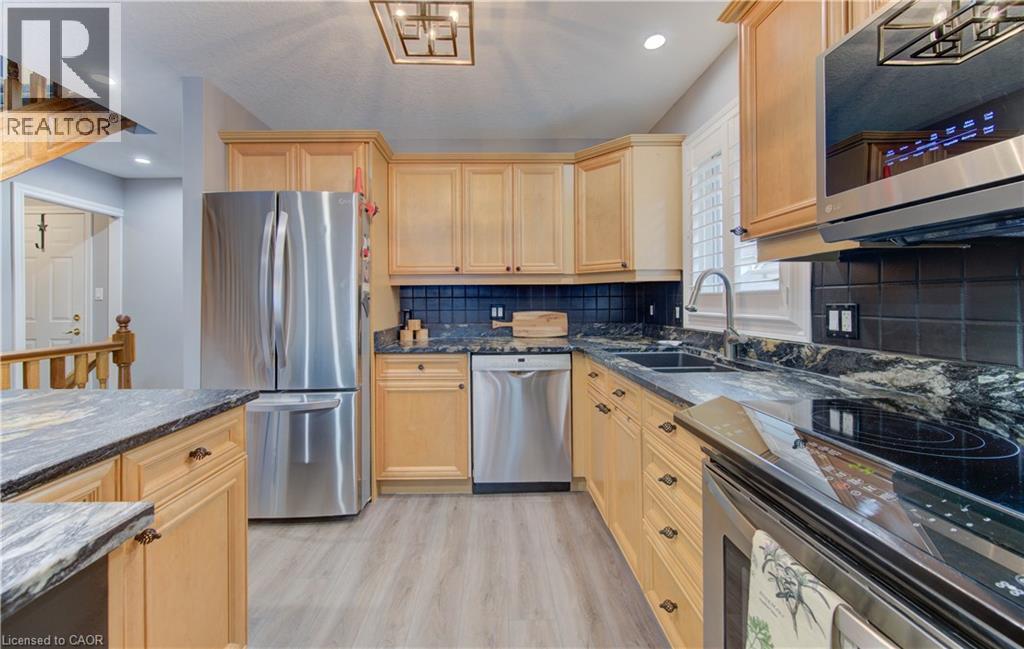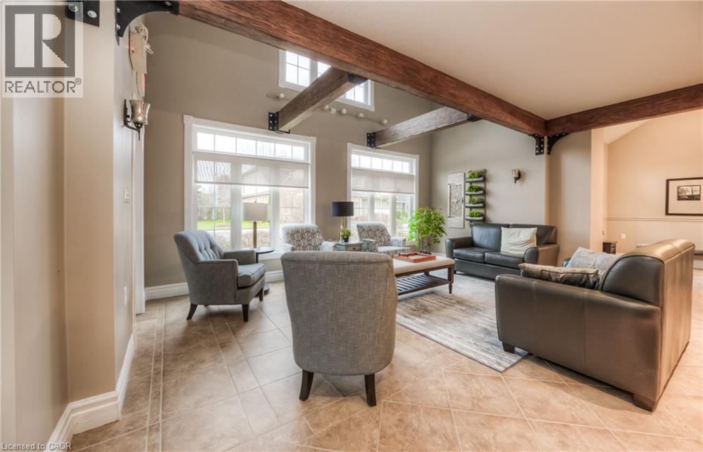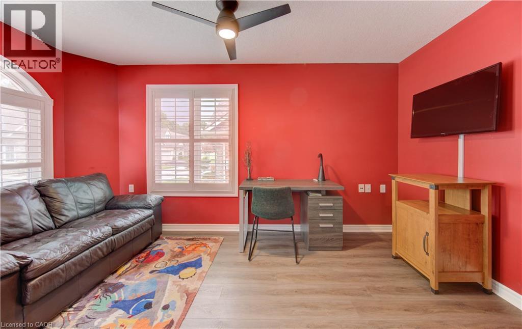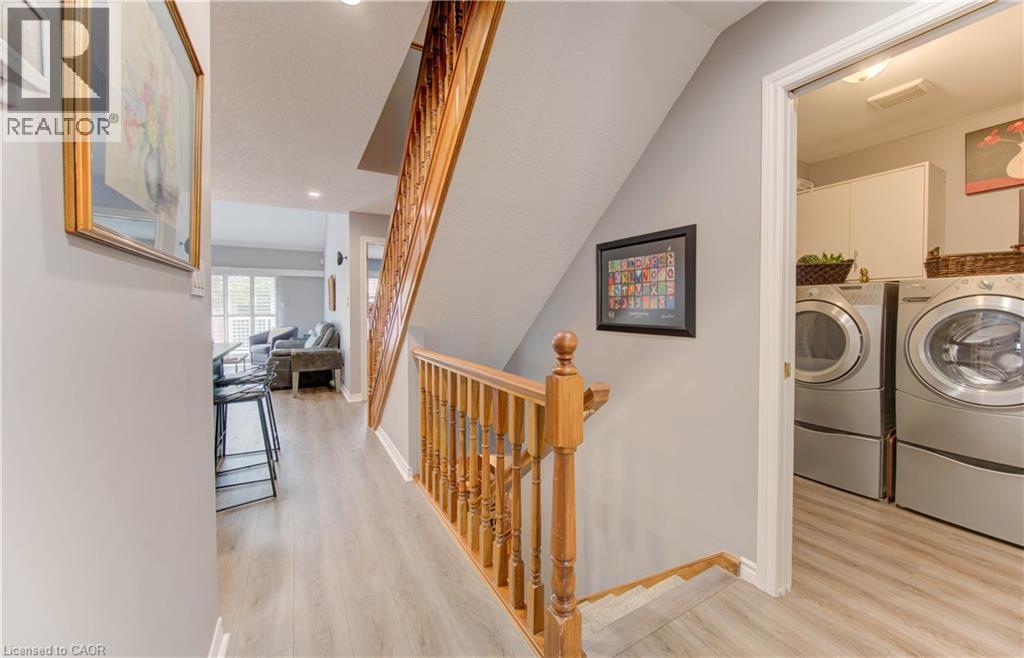Welcome to this beautifully appointed condominium townhome, offering an ideal blend of comfort and convenience. Located in a sought-after neighborhood, this home boasts a main floor primary bedroom with a 3-piece ensuite for added privacy and luxury. The main floor bedroom or den is perfect for a home office or cozy reading nook, while the main floor laundry adds practical living. The heart of the home is the open-concept kitchen, featuring granite countertops and a seamless flow into the living room with vaulted ceilings, California shutters and a electric fireplace—perfect for relaxing or entertaining. The living room opens to a large deck with a power awning, offering an inviting space for outdoor enjoyment. Upstairs, a spacious loft overlooks the living room, adding a touch of openness and versatility. The second 4-piece bathroom provides convenience and comfort for family or guests. The lower level is fully finished with a generous rec room, ideal for a media room or play area, and a rough-in for a bathroom, providing future potential. A massive unfinished storage area ensures all your belongings have a place to call home. As part of this vibrant community, enjoy the Mill Clubhouse, a community favorite offering a games room, a gym, a community library, and the perfect space for hosting events. Ideally located, this amazing community is only a minute from the 401, backs right onto stunning hiking and biking trails by the Grand River, and is just seconds away from the Doon Valley Golf Club! This townhome is perfect for those looking for a low-maintenance, move-in-ready home with plenty of space to grow. Don't miss out on this exceptional opportunity—schedule your viewing today! (id:51158)