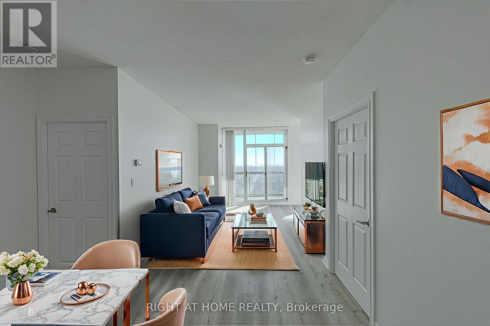 Recently Renovated! Stunning, sun-filled corner unit featuring one of the best layouts and views in the building! Enjoy breathtaking southwest exposure with panoramic views of the lake and CN Tower. This spacious 2-bedroom, 2-bathroom suite offers brand new vinyl flooring throughout and has been freshly painted, creating a stylish, modern, and move-in ready space. The open-concept layout with floor-to-ceiling windows fills every room with natural light.Located in a highly sought-after central area, just minutes from major highways, transit, schools, shopping, and all essential amenities. The building offers top-tier security and premium amenities including an indoor pool, fitness centre, party room, and more! Some photos have been virtually staged** (id:51158)