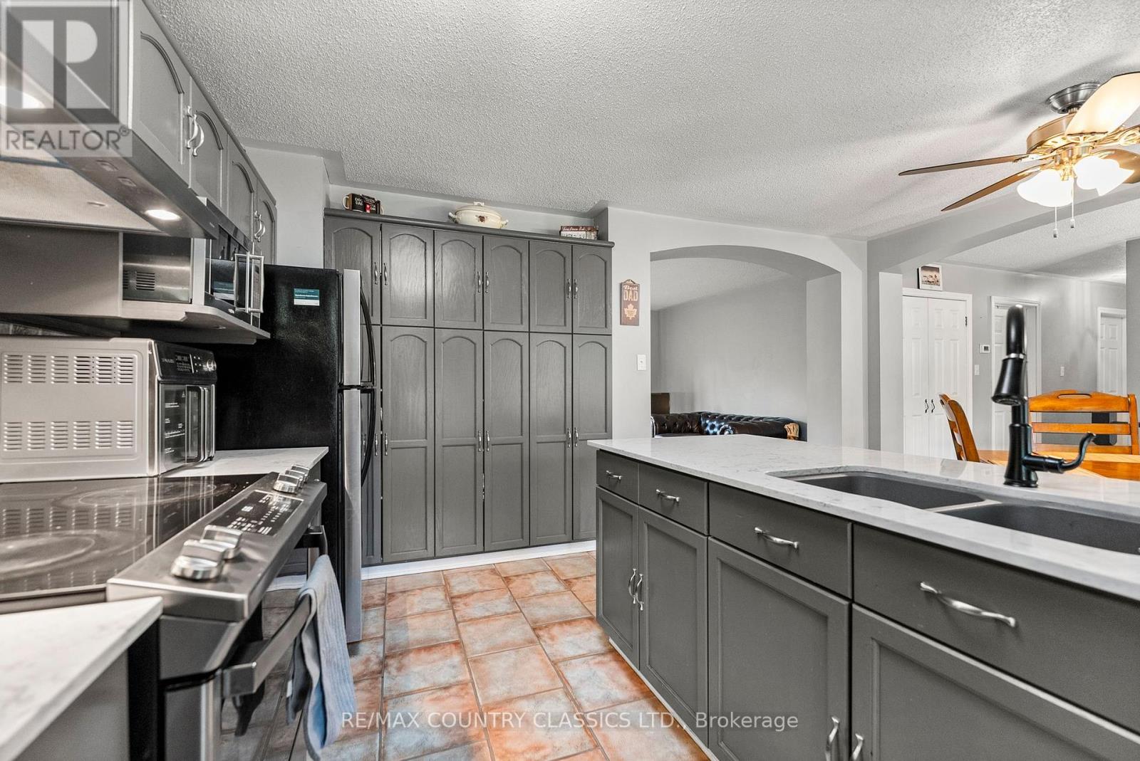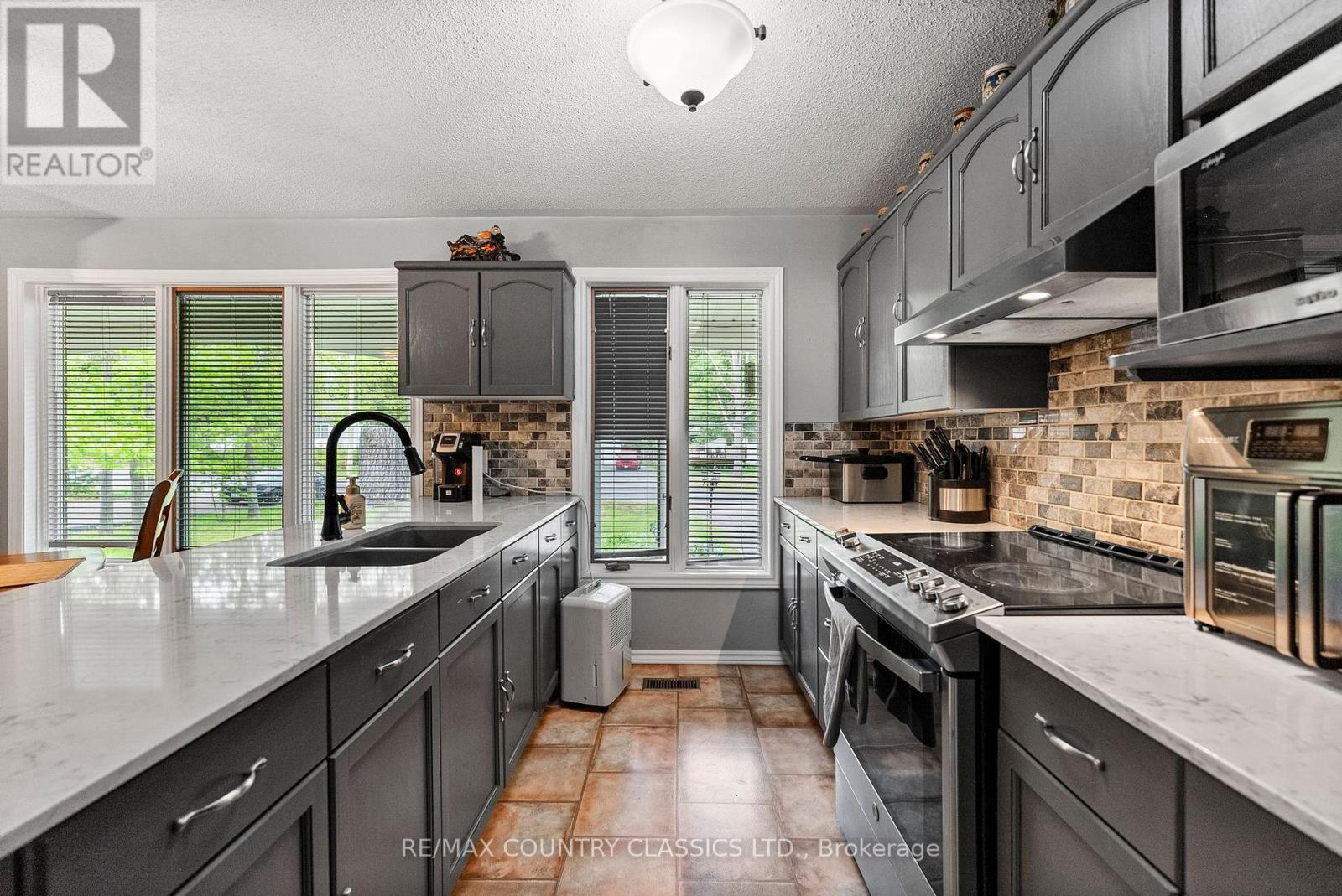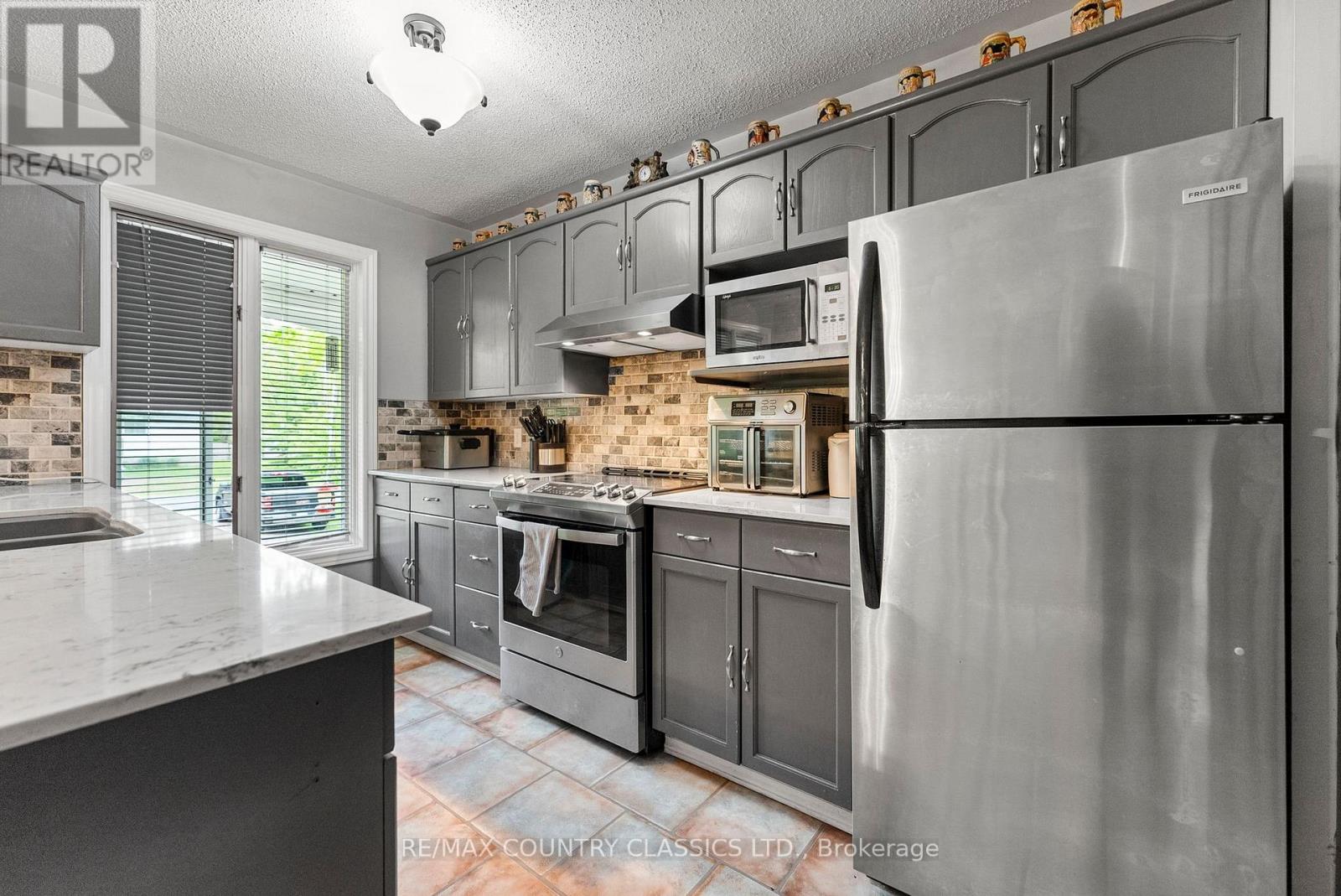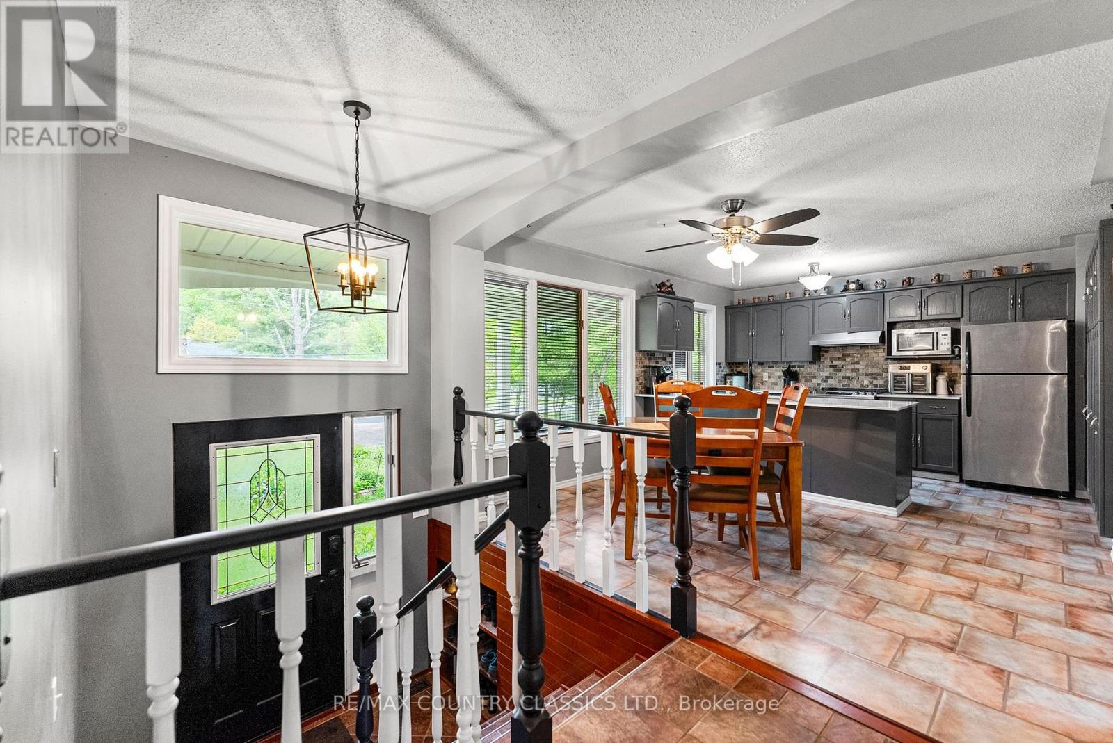 ESCAPE TO BANCROFT - This beautiful, upgraded raised bungalow on a large, level landscaped lot is a perfect family or retirement home. Featuring 3 bedrooms and 2 baths, lovely open concept kitchen and dining areas with quartz counter tops, lots of cupboards, tile flooring and includes all stainless steel appliances. Home has many updates over the years, including hardwood and tile floors throughout the main floor. There is an upgraded septic bed, town water and now has a Generator hook up for emergency power outages. Livingroom has a patio door walkout to the newer back yard deck. A fully finished family rec room on the lower level with potential for a 4th bedroom provides all the extra space needed. The backyard is well treed, fenced on both sides and has a very private parklike setting to enjoy. There's lots of storage, and an attached garage. Close to the Heritage Trail, an 18 hole golf course, many lakes and only minutes to downtown Bancroft for all amenities, shopping, schools and hospital. Great high speed internet and cell service. This is truly a fantastic property for anyone seek great town living! Offers welcome anytime! (id:51158)
