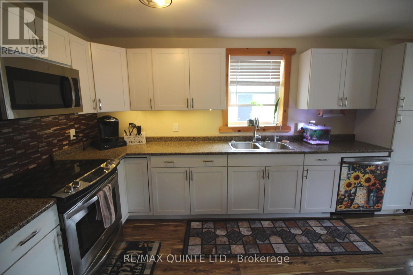 This charming 1 1/2-storey home features 3 bedrooms and a beautifully remodeled full bathroom, updated just four years ago. Some of the enhancements include new wiring, plumbing, windows, doors, and a modern kitchen. The open-concept living area comes fully equipped with appliances, so all you'll need to do is move right in and make it your own! The main house boasts a metal roof that was installed in 2018 and a new air conditioning system added in 2017. Additionally, a new septic system was put in place in 2020. The property offers two garages, one double and one single. For the outdoor enthusiast, quadding, sledding, and side-by-side trails are just minutes from your front door. Plus, Bon Echo Park is nearby for those who love to camp, hike, or relax around a fire pit under the stars. (id:51158)