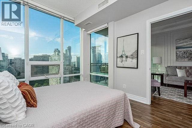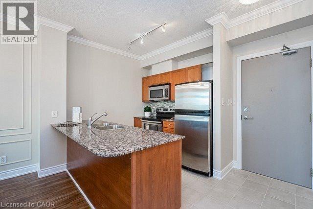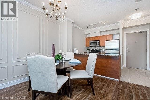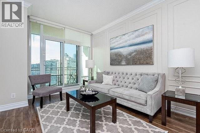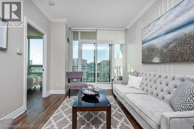 1+1 suite, where the den has been thoughtfully converted into a spacious second bedroom Luxury Urban Living in the Heart of Mississauga! Experience sophistication and style in this meticulously upgraded enhanced functionality without compromising design. The sun-filled open-concept living and dining area is adorned with custom wainscoting, elegant crown moulding, upgraded laminate flooring, and fresh designer paint. Enjoy 9-ft smooth ceilings and floor-to-ceiling windows that create an airy, light-filled ambiance. The gourmet kitchen features granite countertops, a sleek backsplash, and premium stainless steel appliances-perfect for both everyday living and entertaining. The primary bedroom offers a walk-in closet and serene retreat-like comfort. This residence also includes ensuite laundry, modern finishes throughout, and access to world-class building amenities. Ideally located steps to Square One, Sheridan College, fine dining, parks, and transit, with seamless access to Highways 403, 401, and QEW. Luxury, location, and lifestyle-this condo has it all. (id:51158)