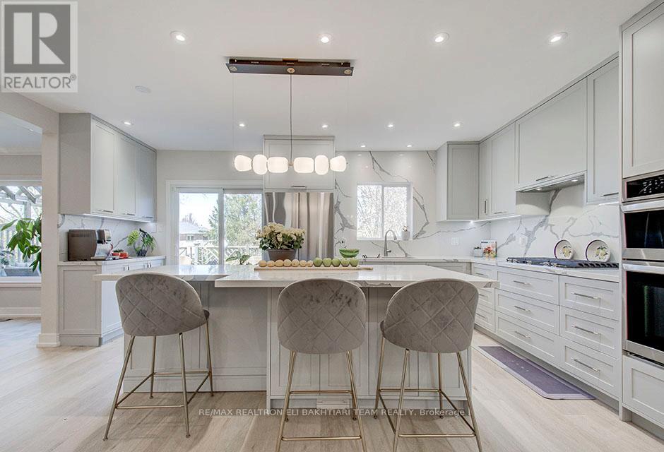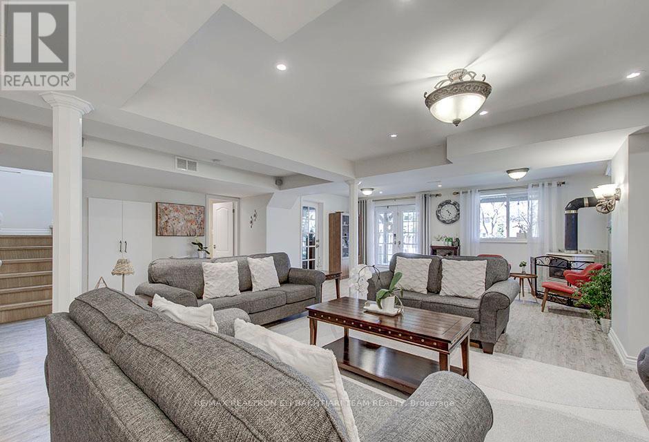 **Stunning home in sought-after Summerhill Estates**, nestled on a quiet court with a premium, **DEEP PIE**-shaped lot. Featuring a fully renovated 4+1 bedroom two-storey layout, upgraded throughout with high-end quality finishes. A rare opportunity in a prime family-friendly location!" Featuring a **FULLY RENOVATED** open-concept main floor with a BRAND NEW custom kitchen, high-end granite countertops, LED lighting, and spotlights throughout. The open-concept main floor boasts a luxurious custom gourmet kitchen featuring high-end granite countertops, stainless steel appliances, and an abundance of cabinetry perfect for family living and entertaining. The kitchen seamlessly flows into a spacious family room with LED lighting and spotlights throughout, creating a bright, welcoming atmosphere. Walk out to a huge deck ideal for outdoor gatherings and entertaining. A completely remodelled laundry room with garage access adds everyday convenience. Enjoy brand new hardwood floors throughout the main level. The staircase has been fully redone with solid maple wood, leading to a beautifully appointed second floor. The primary bedroom offers a spacious walk-in closet and a 4-pcs ensuite, providing comfort and style. The fully finished basement is newly renovated with quality laminate flooring and includes an additional full MDF kitchen, large bedroom, and a 3-piece bath perfect for in-laws or extended family. Walk out to a beautifully landscaped, fully interlocked backyard oasis featuring professional gardens and an in-ground sprinkler system. Located in a prime, family-friendly neighbourhood close to top-rated schools, parks, shopping, public transit, and more. A true turn-key gem that combines luxury, comfort, and convenience!"** (id:51158)