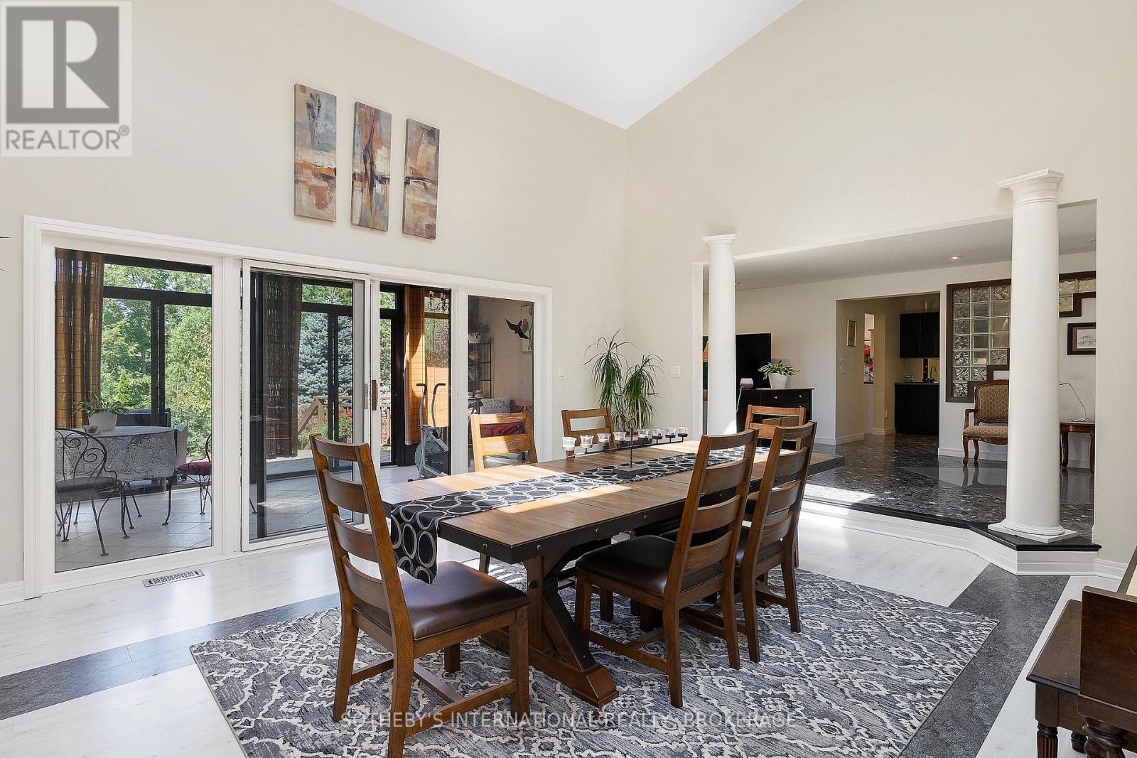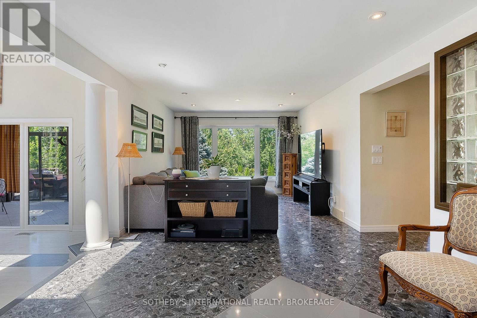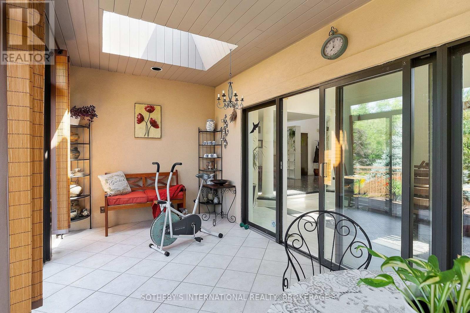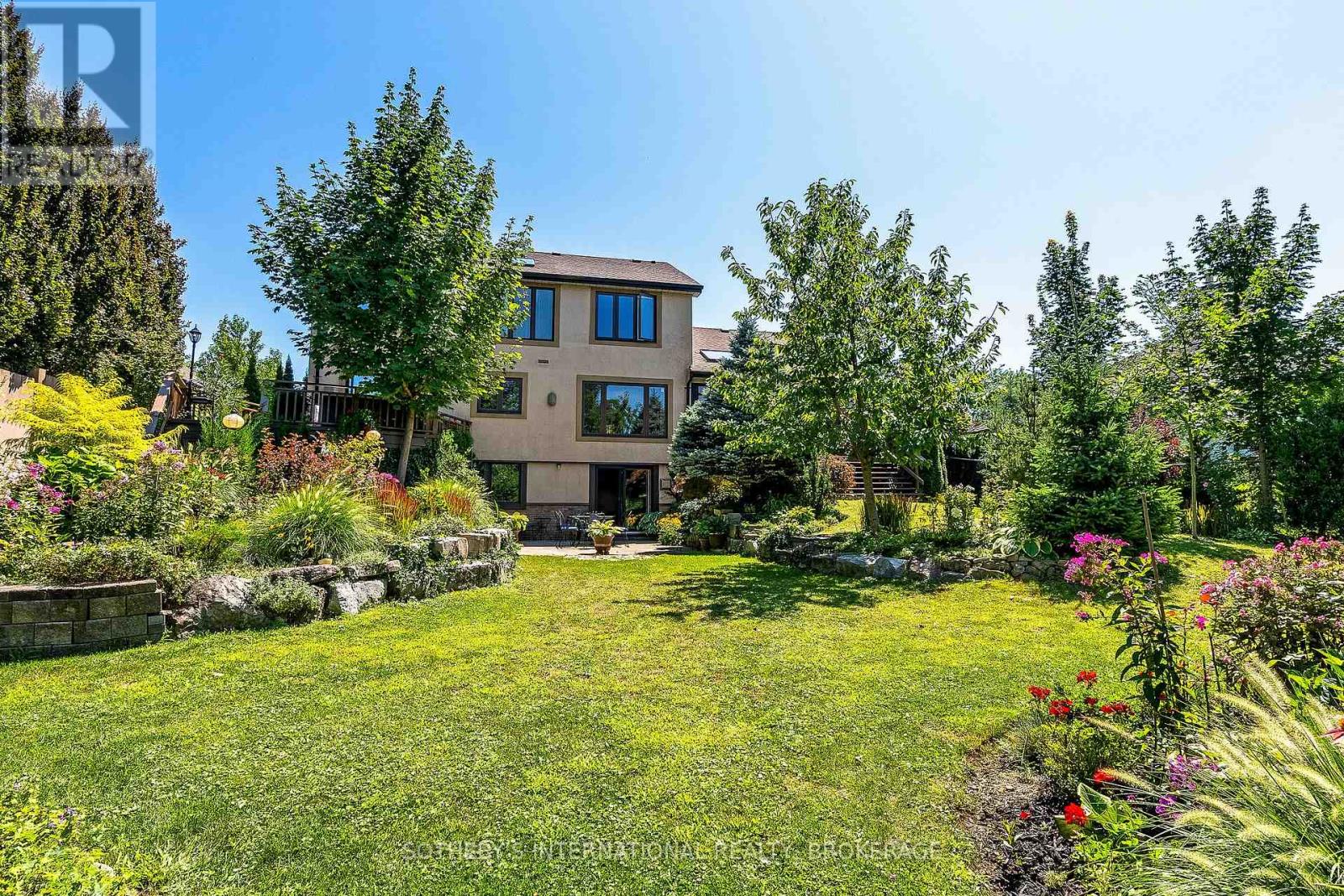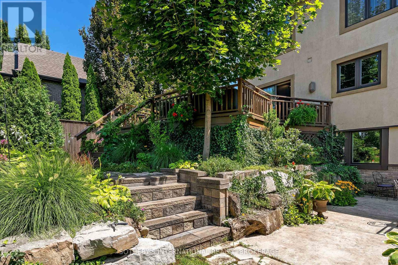 Welcome to your dream home in the prestigious Mount Carmel area of Niagara Falls, where luxury meets tranquility. Nestled among mature trees and beautifully landscaped gardens, this exceptional property sits on a ravine, offering unmatched privacy and no rear neighborsmaking it one of the areas rare gems.The serene gardens are a haven of diverse perennials and mature trees, providing a peaceful retreat by the forested ravine. Here, you can relax amid the songs of birds and the scents of fresh herbs in a chemical-free environment. You might even spot a turtle or various birds from nearby Shriners Creek. The outdoor spaces offer a variety of settings, from a Mediterranean-inspired terrace to two patios overlooking the garden, all with breathtaking views.Inside, the homes spacious layout includes four generously sized bedrooms and a dedicated den/office space near the entrance. Whether entertaining in the elegant dining room or unwinding in the cozy living room, this home seamlessly blends comfort and style. It features three luxurious bathrooms, including one with a relaxing jacuzzi, perfect for unwinding. The three-season sunroom offers a tranquil space to enjoy nature year-round.The expansive lower level is perfect for entertaining, complete with a stylish bar, pool table, and wine cellar. The kitchen, a culinary enthusiasts dream, is equipped with modern appliances, two sinks, a butlers mini bar, and ample counter space.This home is designed for modern living, featuring a 2 car garage, four spot interlocking stone driveway and a.state-of-the-art 5-line irrigation system ensures the garden remains lush. Additional comforts include a central vacuum system, two gas fireplaces, a 7-year-old roof, and a brand-new furnace. Energy-efficient windows, along with nine skylights and two sun tunnels, fill the home with natural light, creating a bright and welcoming atmosphere.This 3,609 sq. ft. residence is meticulously designed for comfort, beauty, and privacy. (id:51158)
