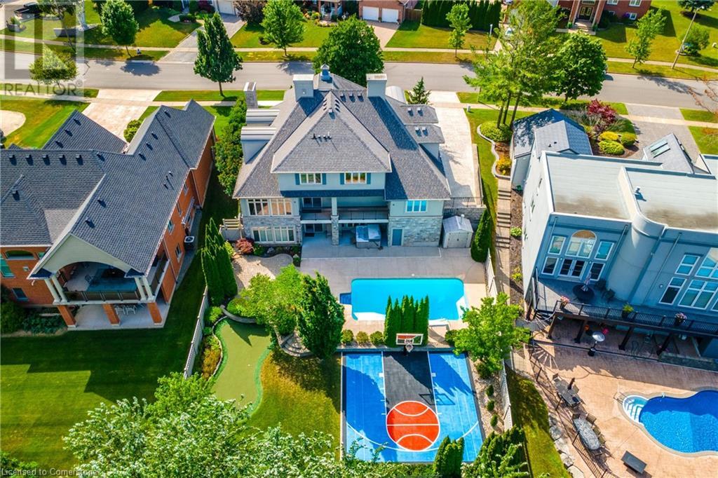 Welcome to 3542 Matthews Drive — a stunning custom-built estate in one of Niagara Falls’ most prestigious enclaves. This meticulously designed home offers the perfect balance of refined elegance, comfort, and unforgettable outdoor living, all backing onto a serene ravine setting. From the moment you arrive, you’ll be captivated by the grandeur and thoughtful layout of this residence. The main floor features a private home office with custom built-ins, ideal for professionals or those working from home. A sunken living room with a gas fireplace and expansive windows fills the space with warmth and natural light, while the open-concept kitchen is a chef’s dream — complete with built-in appliances, an abundance of counter space, stylish storage solutions, and a peninsula breakfast bar perfect for entertaining. Upstairs, you’ll find four generously sized bedrooms, each with massive closets, including a primary retreat with a spa-inspired ensuite that invites you to relax and unwind in luxury. The fully finished walk-out basement adds even more living space with a fifth bedroom, wet bar, dedicated guest area, ample storage, and direct access to the backyard. Step outside to your own private resort-style paradise, featuring a large in-ground pool with slide, hot tub, putting green, and a half-court basketball area — all set against a beautifully landscaped backdrop that backs onto a peaceful ravine. Additional highlights include a finished 4-car garage, classic finishes throughout, and a layout that blends sophistication with everyday functionality. This is more than a home — it’s a lifestyle. Don’t miss your chance to own one of Niagara Falls’ finest properties. (id:51158)