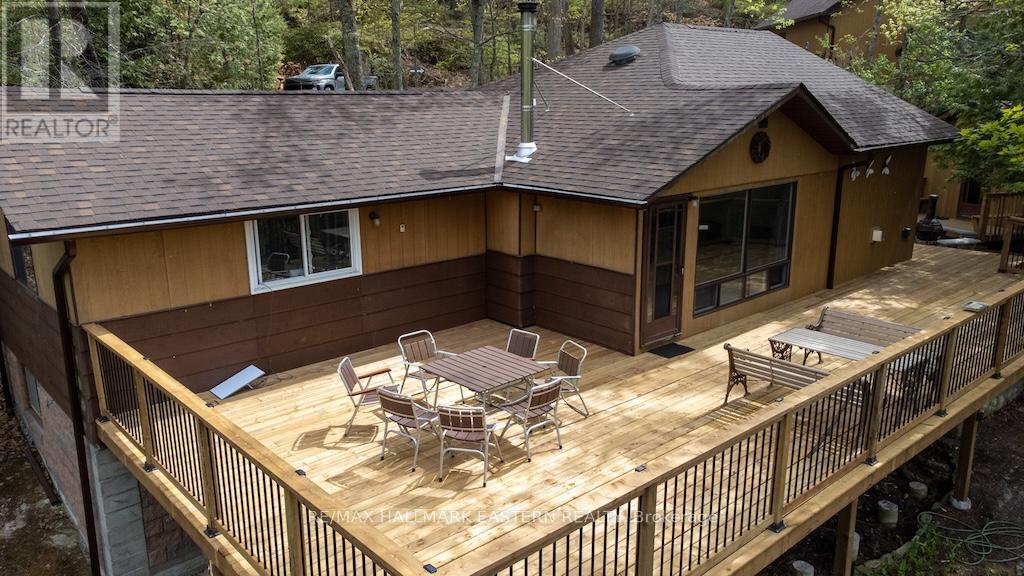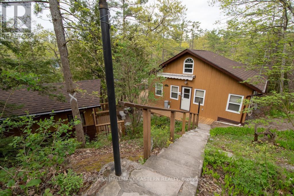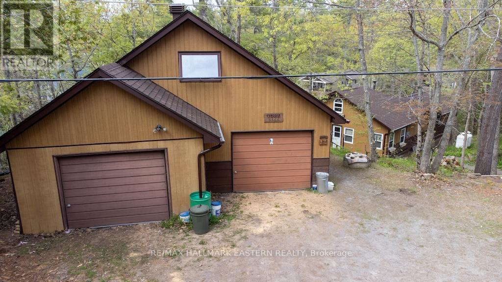 In beautiful Burleigh Falls on Stoney Lake is 3566 Rock Crossway Lane. This year-round home or cottage is 3+1 bedrooms, 2 bathrooms with a detached 2 car garage. Featuring a loft and 1 bedroom, 1 bathroom bunkie for additional living space and privacy. There is an unfinished basement with a utility room and a walkout to a large new deck overlooking the water. The home has a propane furnace, a gas fireplace and a wood stove for added ambiance and comfort. The main floor features a 4-piece bathroom, and a laundry room. Recent upgrades include a brand-new deck, brand-new roof, freshly painted and upgraded flooring. (id:51158)