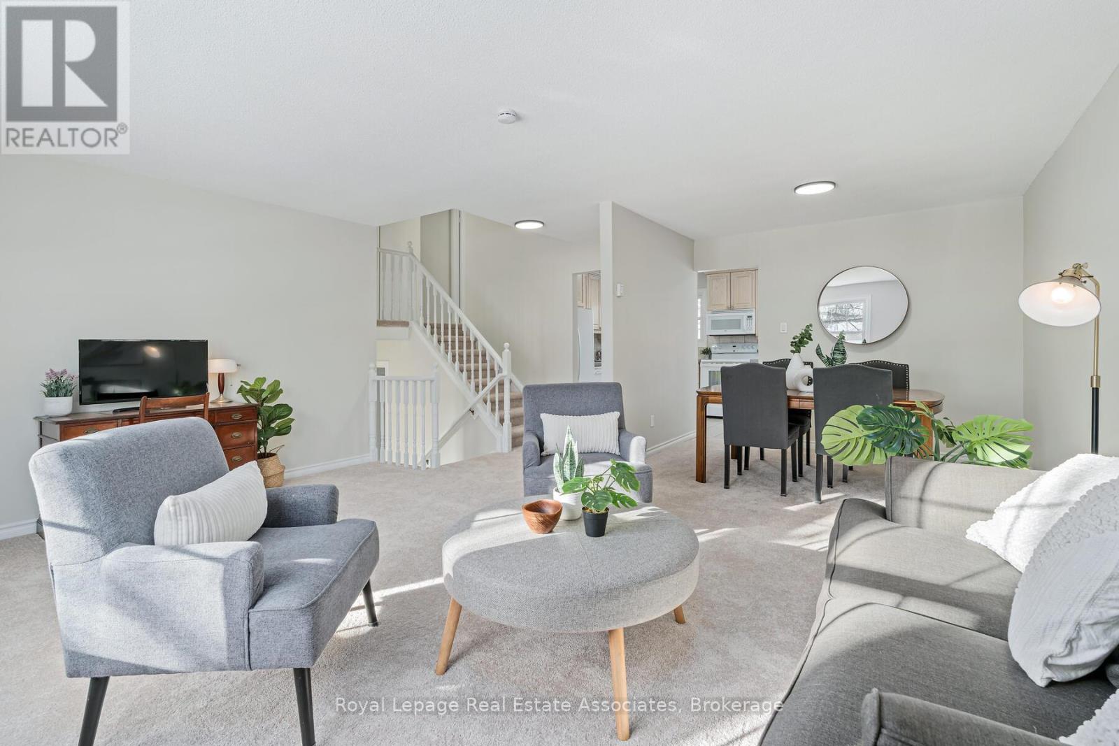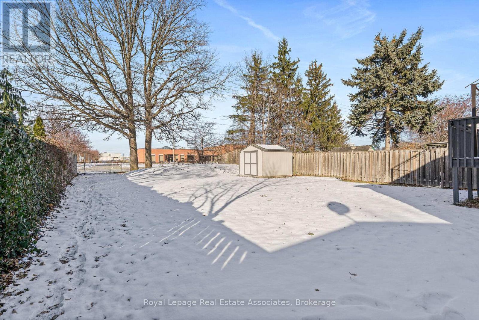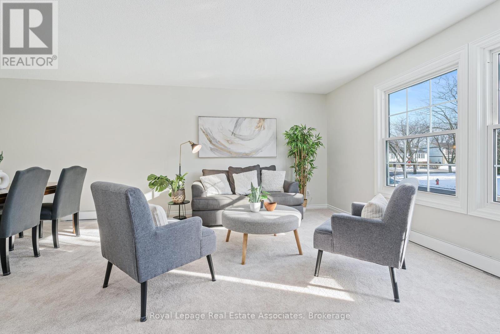 Set in the heart of the Dorset Park neighbourhood, this home offers a welcoming layout, great natural light, and a large fenced yard that gives the property an inviting, family-friendly feel. This updated 4-level sidesplit features 3+1 bedrooms, 2 renovated bathrooms, and a finished basement that adds valuable living space. The main floor includes a bright living and dining room with a large front window and fresh paint throughout, while the kitchen offers a breakfast area, backsplash, double sink, plenty of cabinetry, and a walkout to the backyard, giving you one of two access points to the outdoors. The ground floor provides added comfort with a relaxed family room and a second walkout to the patio and private yard. Upstairs are three well-sized bedrooms with generous windows, along with a renovated 4-pc bathroom and a linen closet. The primary bedroom features a wall-to-wall closet, and the other bedrooms include a double closet and a standard closet. The finished basement is a great bonus space with pot lights, a second bathroom, and a bedroom with above-grade windows, a cedar walk-in closet, and a laundry area with a laundry tub and extra storage. Additional highlights include a unilock front porch, a double closet at the front entrance, owned water softener and water heater, a single garage, and parking for two cars in the driveway. The spacious backyard offers plenty of room to unwind and enjoy the quiet neighbourhood surroundings. Close to parks, schools, trails, shopping, restaurants, and many of Milton's best amenities. (id:51158)