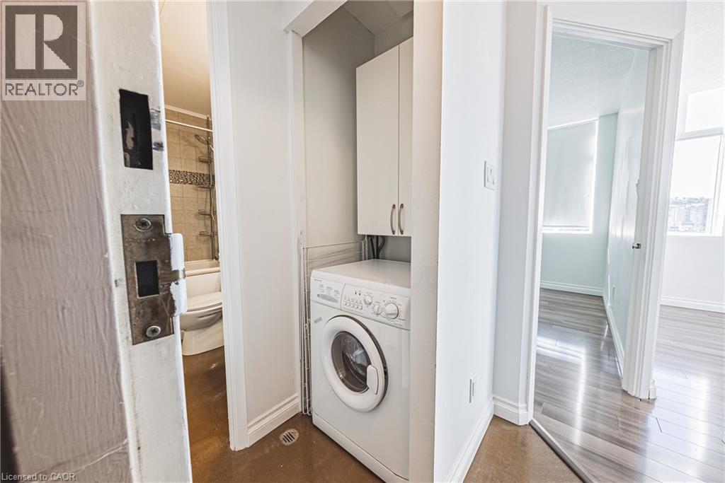 Light filled, open concept, corner unit, condo apartment in the historical Hamilton landmark “The Pigott building”. Spacious eat-in kitchen with stainless steel fridge, dishwasher, stove. Ample cabinet space with built ins, including pull out pantry storage. Custom window coverings, In-suite laundry, clean and move-in ready. 1 locker, 1 parking.Located in the heart of downtown Hamilton, walkable to endless amenities and easy commuting. Enjoy the Hamilton farmers market, popular restaurants of James Street North, Jackson square mall, Art gallery of Hamilton, and more. Building amenities include a party room with billiards and a fitness room. Rent includes water. (id:51158)