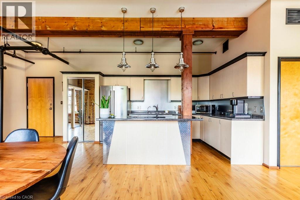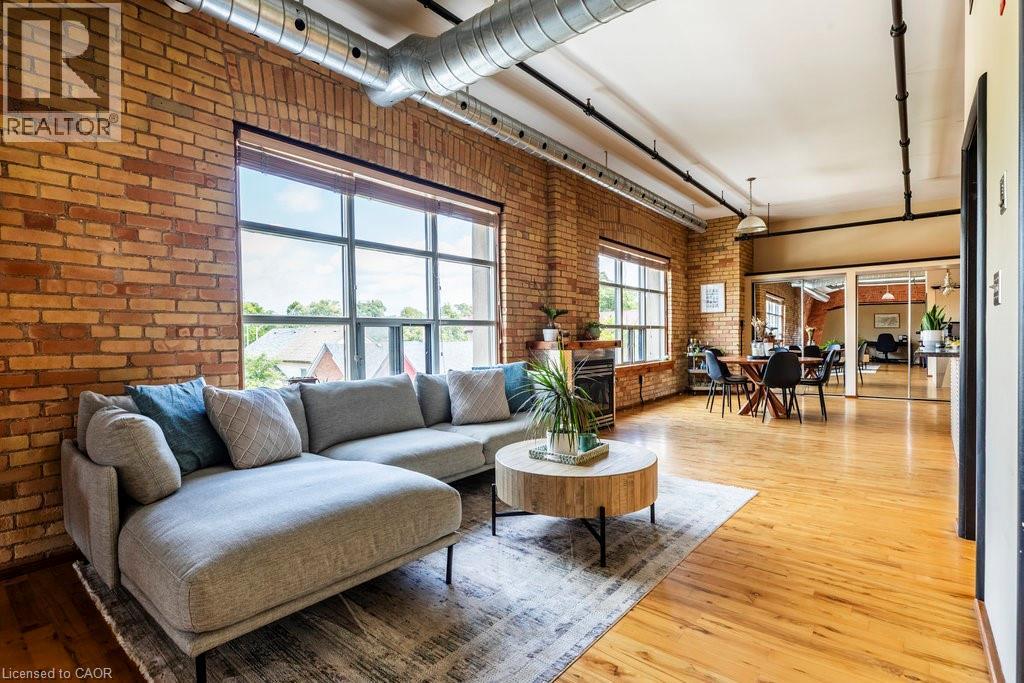 Welcome to the coveted Margaret Street Lofts where you will find the perfect blend of heritage, style, and convenience-this is loft living at its finest. The building itself is apiece of Hamilton history-the city's very first loft conversion by the renowned Valvasori Brothers, once home to a bustling shirt factory. Inside, this rare New York-style loft boasts soaring ceilings, exposed brick walls, oversized windows that flood the space with natural light (north-west exposure), and original hardwood floors. The wide-open floorplan gives you freedom to design your space your way-chic gallery-like setup, cozy modern living, or an entertainer's dream. This top-floor unit includes in-suite laundry, a glass fireplace, beautiful views, plus one owned parking space, storage locker, & access to a serene, shared courtyard. Tucked in the heart of Strathcona, you are a block from Victoria Park, with its lush green space, basketball and tennis courts, outdoor pool, & vibrant neighbourhood vibe. Head south & stroll to Locke Street's eclectic shops and trendy restaurants. Find your everyday conveniences along Dundurn or take advantage of the loft's unbeatable proximity to major highways. This boutique building blend surburban sophistication with community charm. RSA. (id:51158)