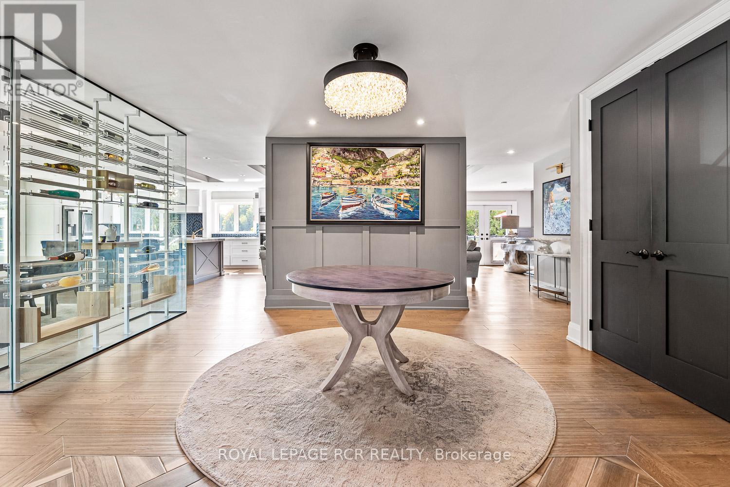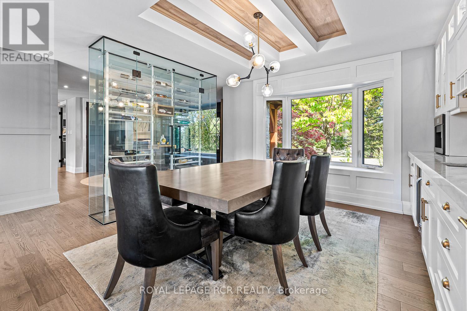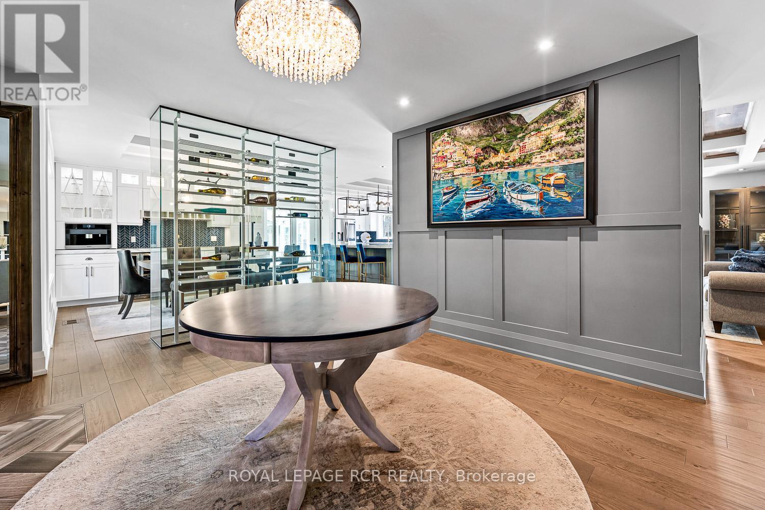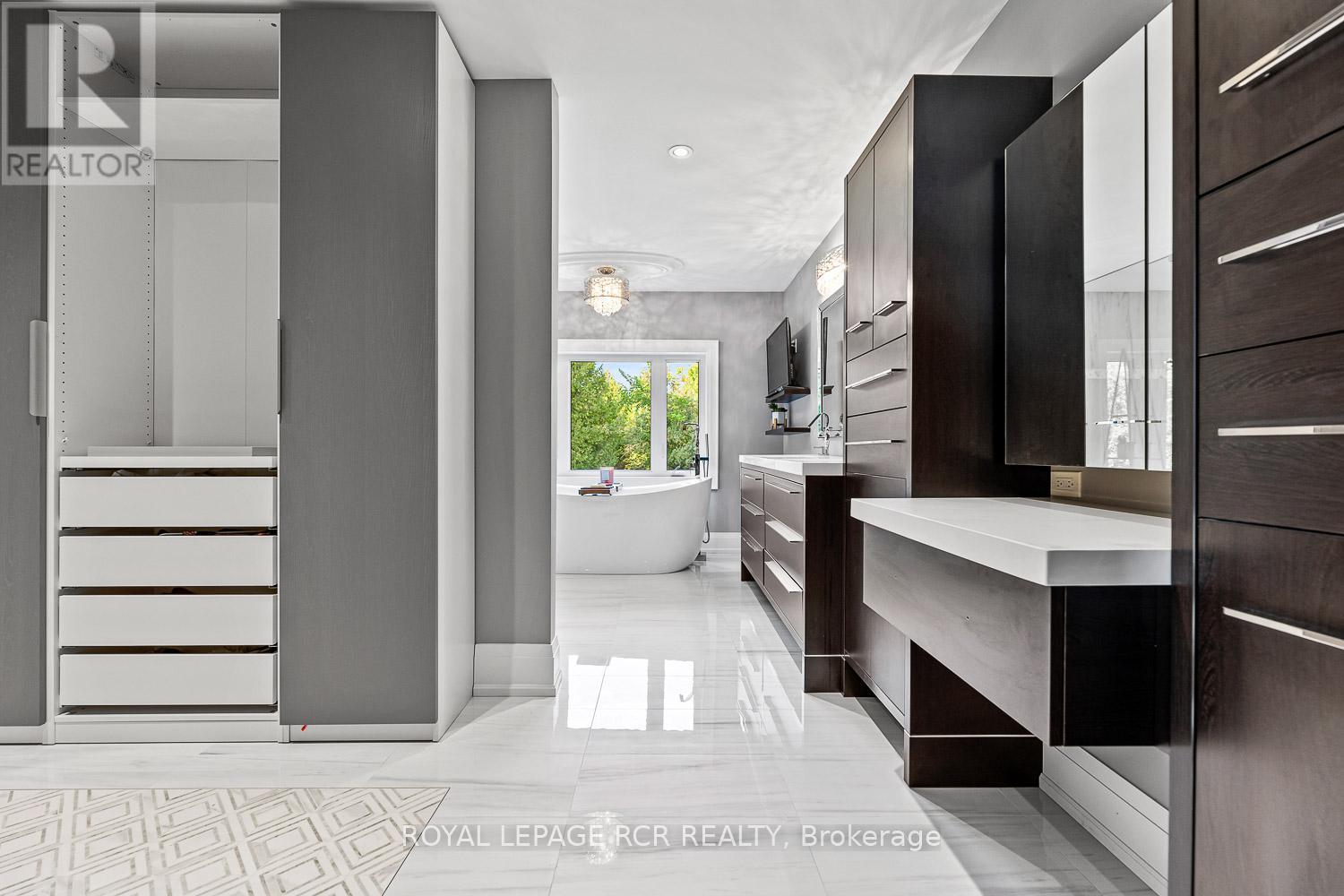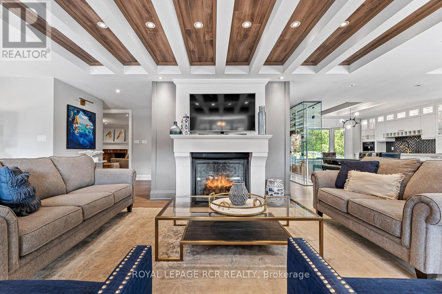 Architectural Design by David Small, Expansive Light filled Exec Bungalow offers wonderful sweeping panoramic 360 views of Caledon, unprecedented privacy and an abundance of custom details. Entertainers Dream inside & out- over 400k spent interior renos and another 400k in Landscape/Hardscape featuring a Grand Outdoor Kitchen/ Bar Patio area. All 4 bdrms w 4 ensuite baths, 4 fireplaces. Lavish millwork & coffered ceilings with wood inlay. Custom Light Fixtures, Inspirational Foyer with Herringbone floors, Custom Doors thru out. Grand Living Rm w Antique brick fireplace, B/ I wall Cabinets, Double French Dr Walkouts to Breathtaking front gardens, walkways, waterfall pond. Floor to ceiling glass shelves and exquisite custom wall cabinetry in Dining Rm with B/I Miele Coffee/ wet bar, B/I wine fridge. Sensational Gourmet Kitchen, 10 ' Island with Marble c-tops & B/I sink, 6 burner Gas Range, Bosch double ovens, w/o to South facing sun-filled Solarium. Enjoy Hot Tub & Massive Composite decking w glass handrails off main floor overlooking 2nd outdoor patio area. Escape to the luxurious master retreat w electric fireplace, & stunning views from Bay window or w/o to perfectly sheltered sitting area on deck to enjoy sunshine & countryside views, Gorgeous Spa bathroom, large glass walk in shower, freestanding tub, functional closet design w B/I drawers, beautiful light fixtures. Light -filled Lower level living space awesome wet bar w Quartz c-tops, B/i Oven , Fireplace/Woodstove insert, B/I shelves, large workshop and storage space w high ceilings, Car Enthusiasts Dream 3 car Garage finished space/ workshop. 6195 Total space as per attached floor plans. (id:51158)