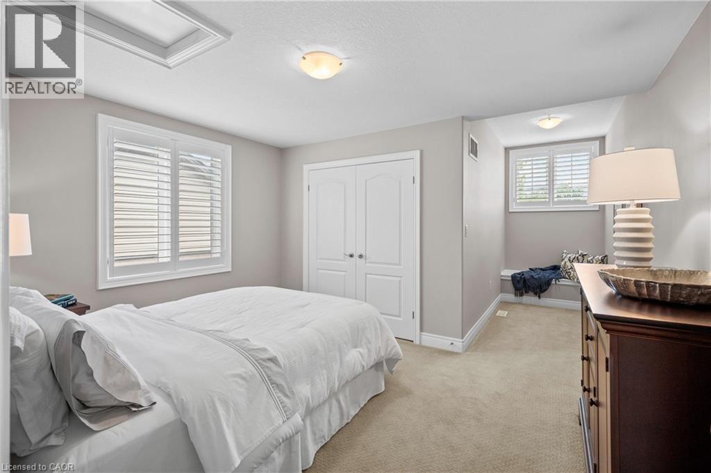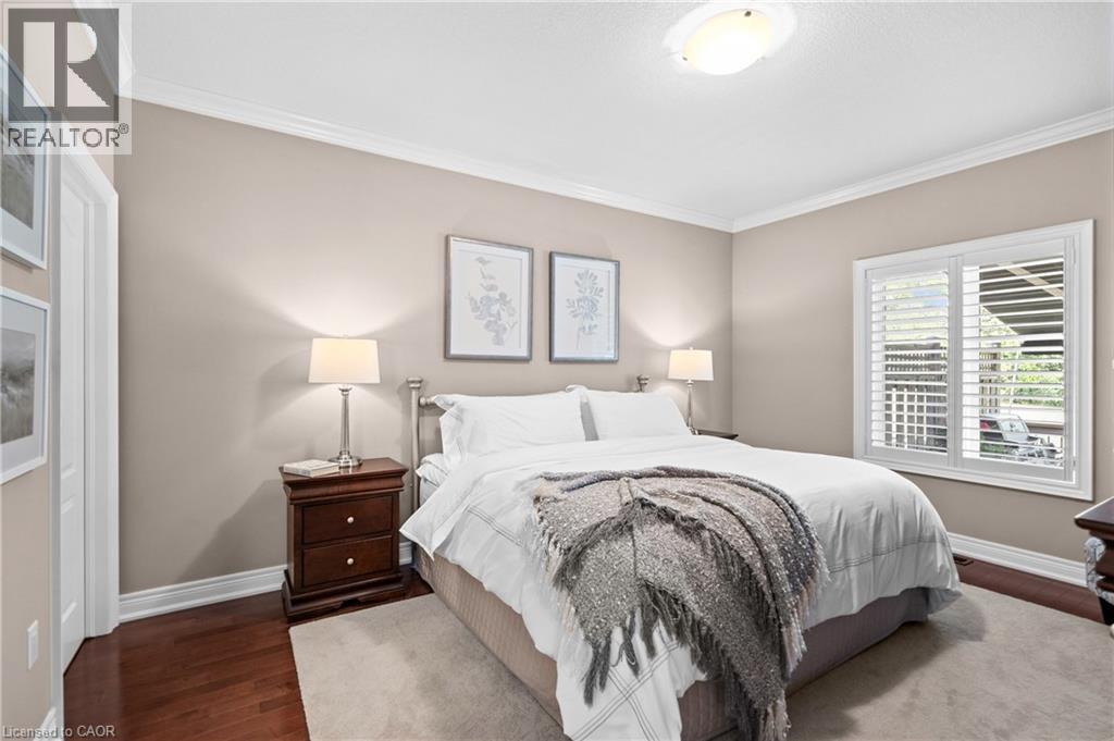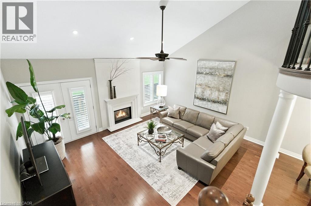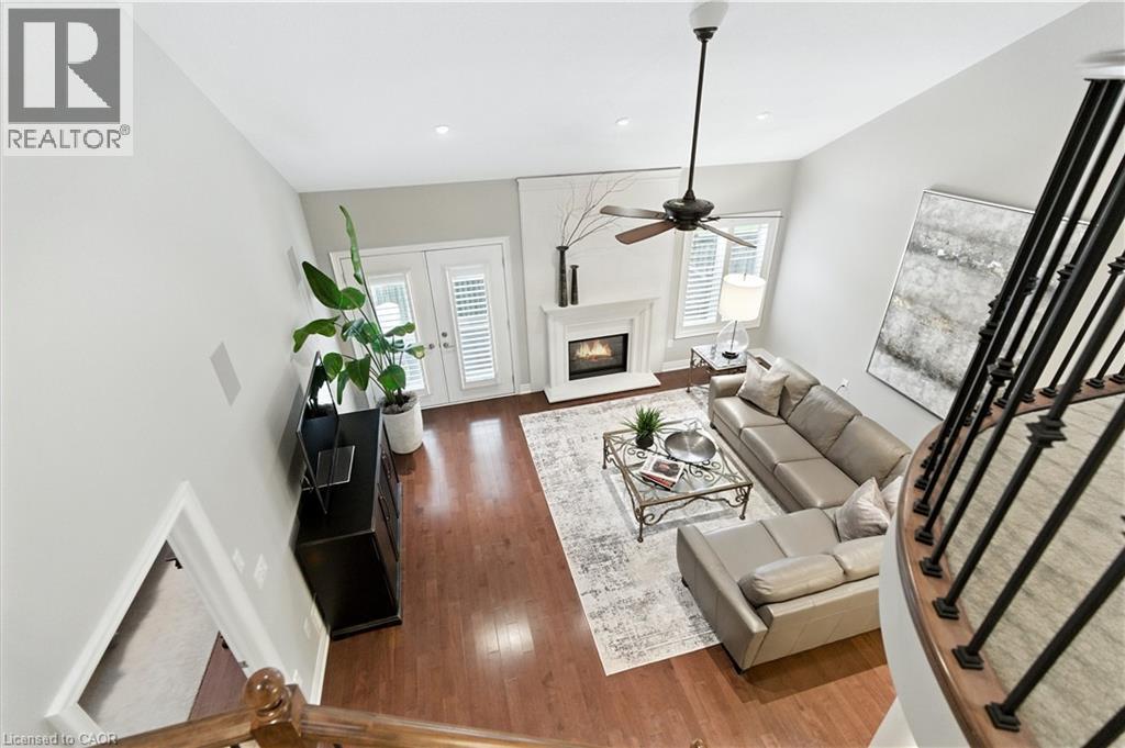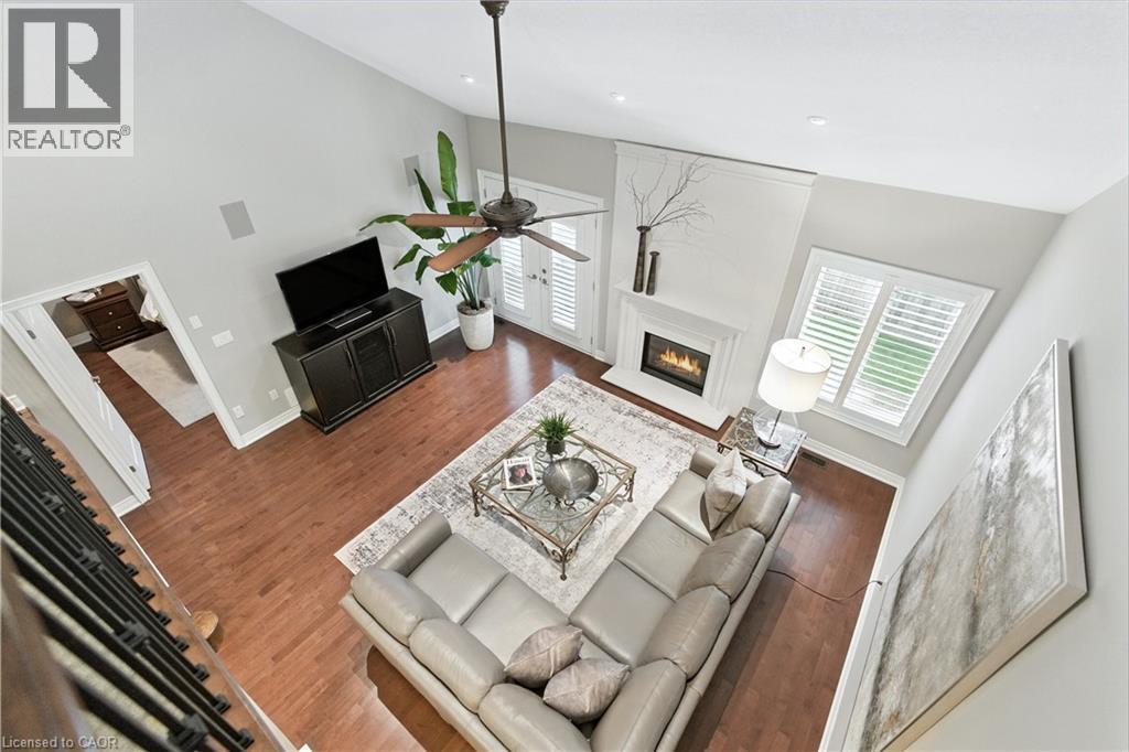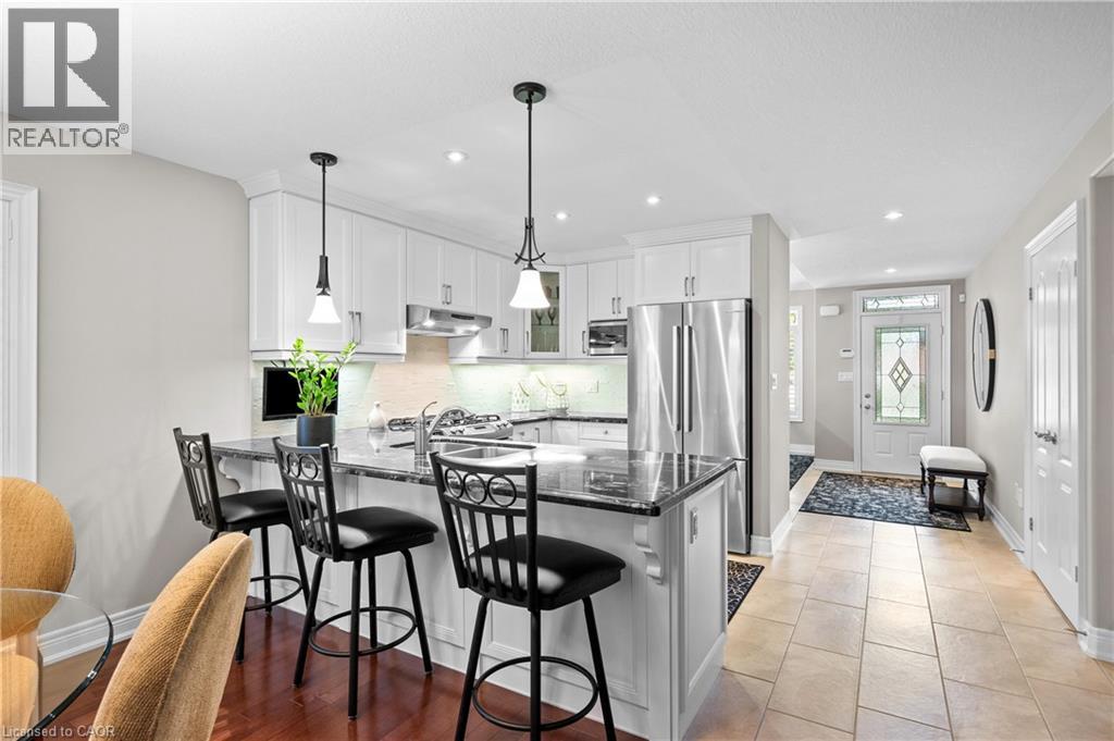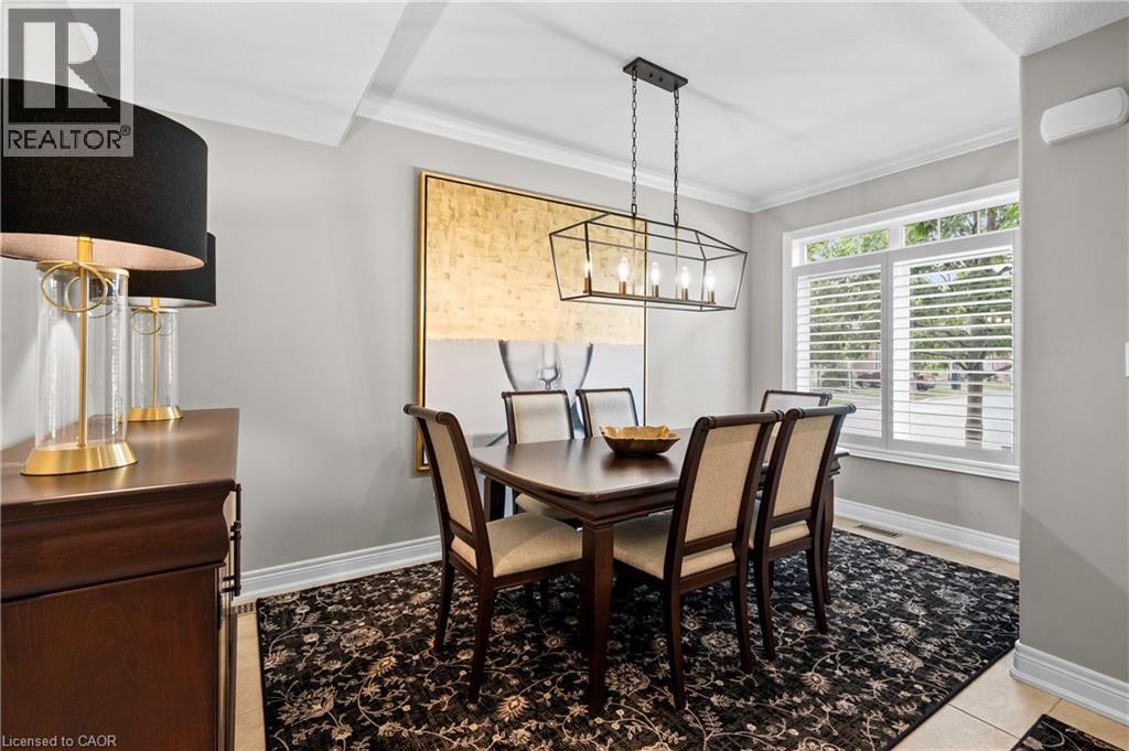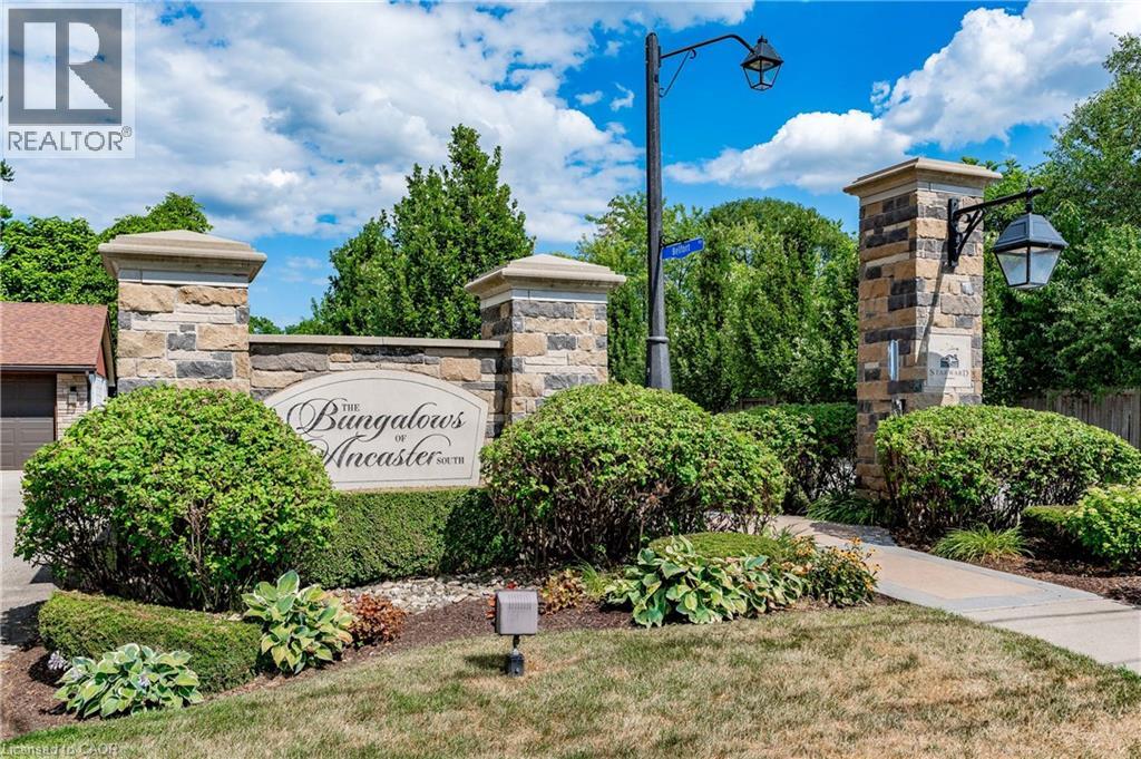 Welcome to The Bungalows of Ancaster South - an exclusive enclave of executive homes tucked away in one of Ancasters most desirable locations. Built by Starward Homes in '12, this immaculate end-unit bungaloft offers 1993 sq ft (above grade), 2 bdrms, 2.5 baths, & the rare advantage of no immediate rear neighbours. A stone entrance & private drive off the main road lead into this meticulously maintained community. The homes striking facade of red brick, stone, & stucco is complemented by a 2 car grg w/ inside entry & 2 add surface parking spots. Step inside through the elegant front door w/ a transom window into a foyer that sets the tone for the rest of the home. The form din rm w/ crown moulding offers the perfect space for entertaining. The open-concept main lvl feat a bright kitch w/ timeless white cabinetry (including bonus dark pantry cabinetry), granite countertops, S/S app, undermount lighting, & breakfast bar seating for 3+. A dinette sits off to the side, framed by circular columns. The liv rm impresses w/ vaulted ceil, a gas FP w/ a cast stone surround & associated mantel, and French drs leading to an oversized raised deck - complete w/ Sunbrella awning for added shade. The main lvl primary bdrm incl crown moulding, a 4-pc spa-like ensuite w/ corner glass shower, soaker tub, granite vanity, & walk-in closet. The main-lvl laund & powder rm add convenience. Upstairs, the loft space overlooks the liv rm & is perfect as a home office, den, or other multi-purpose space. A lrg 2nd bdrm w/ a bonus reading nook & a 3-pc bath completes the upper lvl. Add feat: hrdwd flrs, Cali shutters, rounded drywall corners, elegant lighting, fresh paint, c-vac, updated furn & c-air (21), & an unspoiled bsmt w/ 2 oversized windows & a bath rough-in. Enjoy turn-key living w/ fees incl building insur, ext maint, parking, & access to common elements. Min to parks, shopping, restaurants, golf, highways, & top schools, this home offers upscale living w/ unbeatable amen. (id:51158)