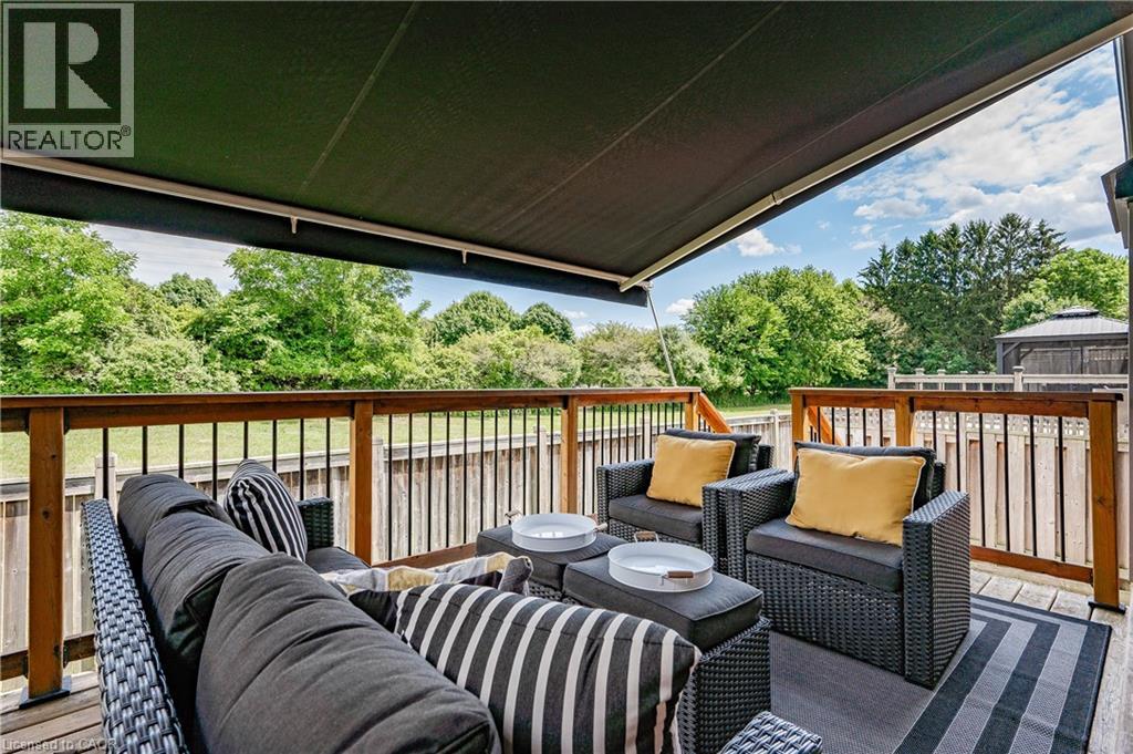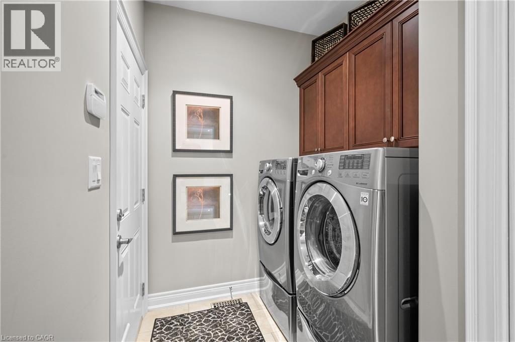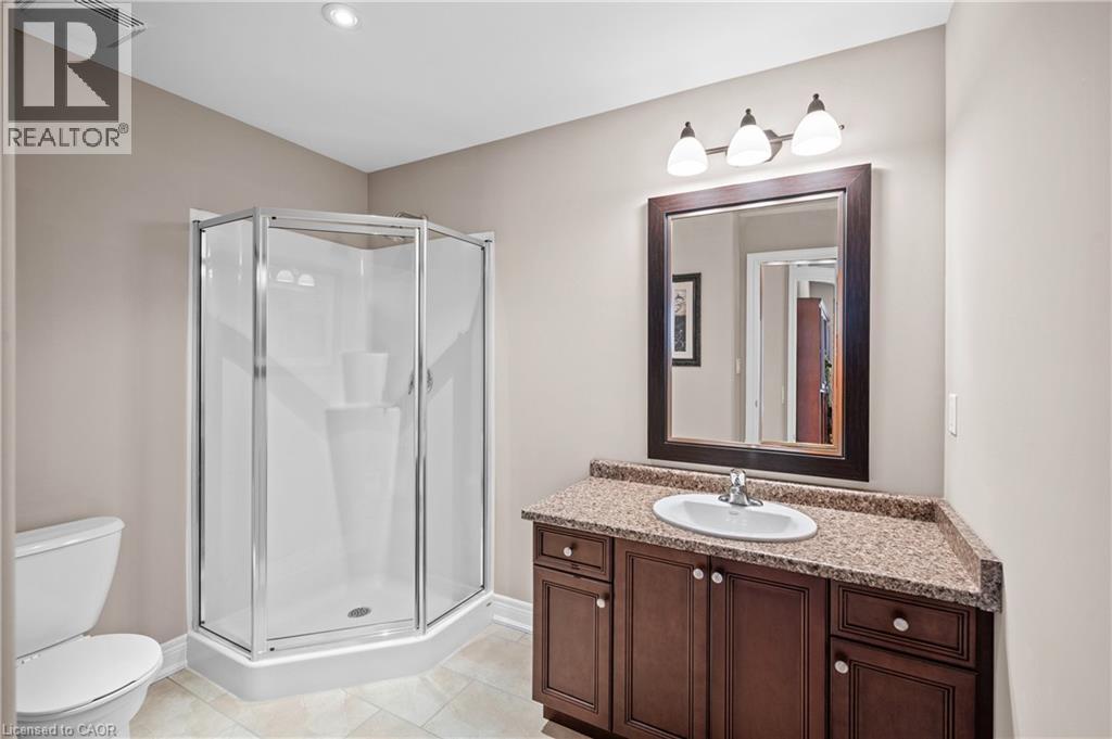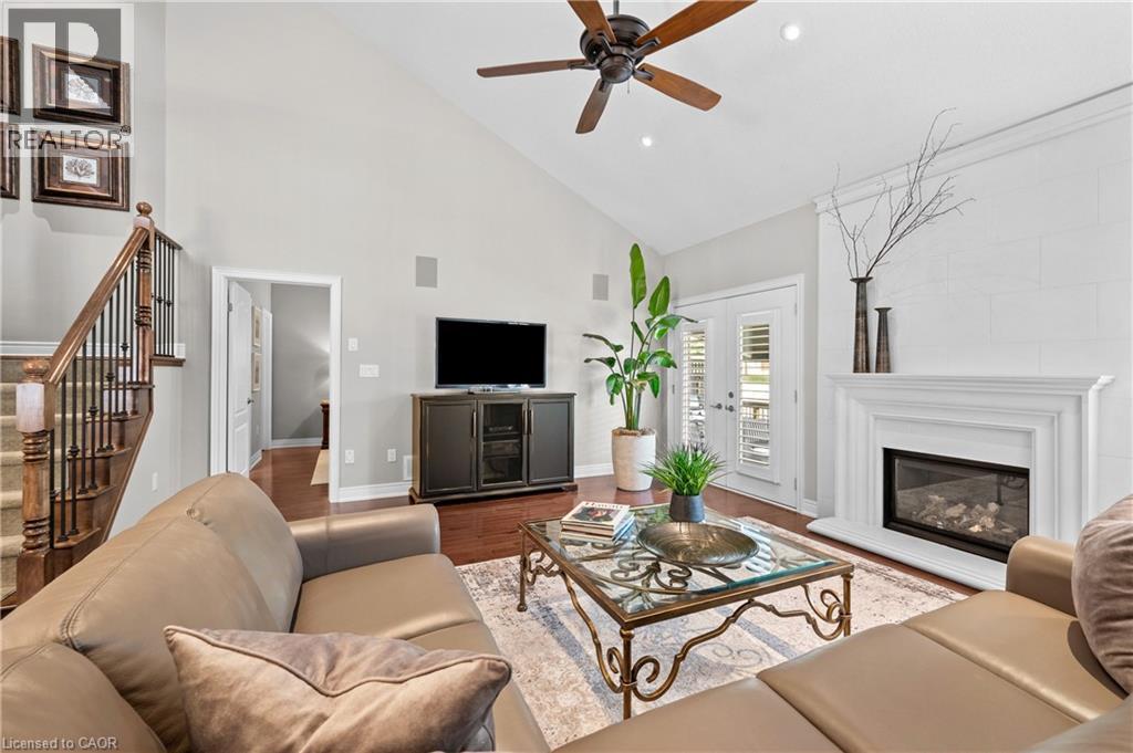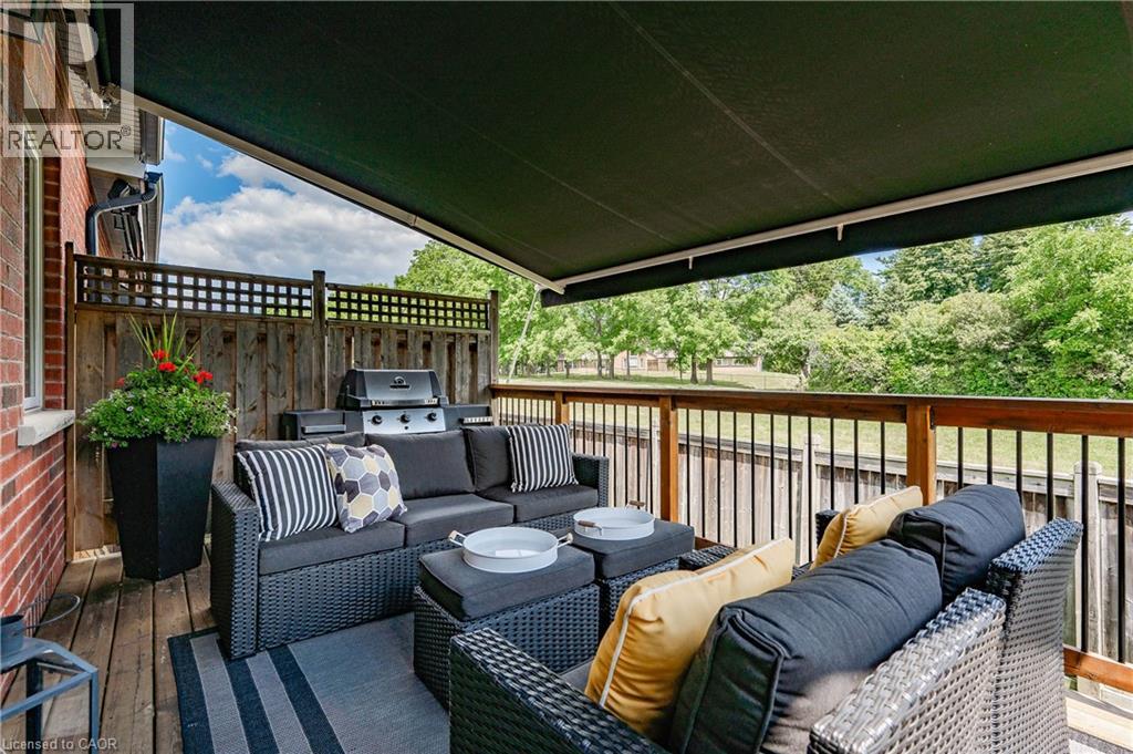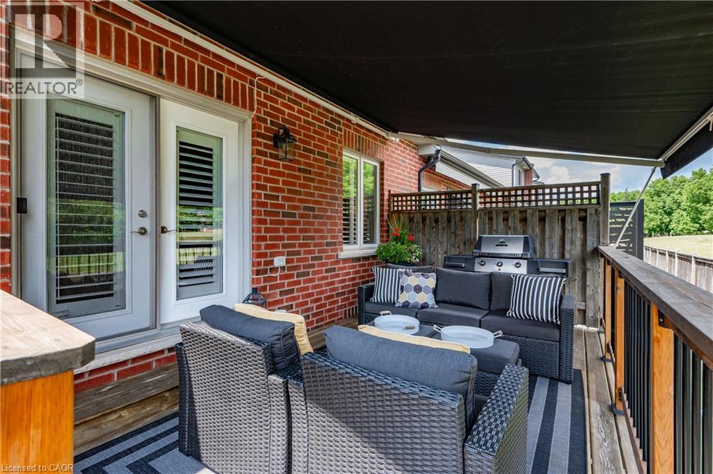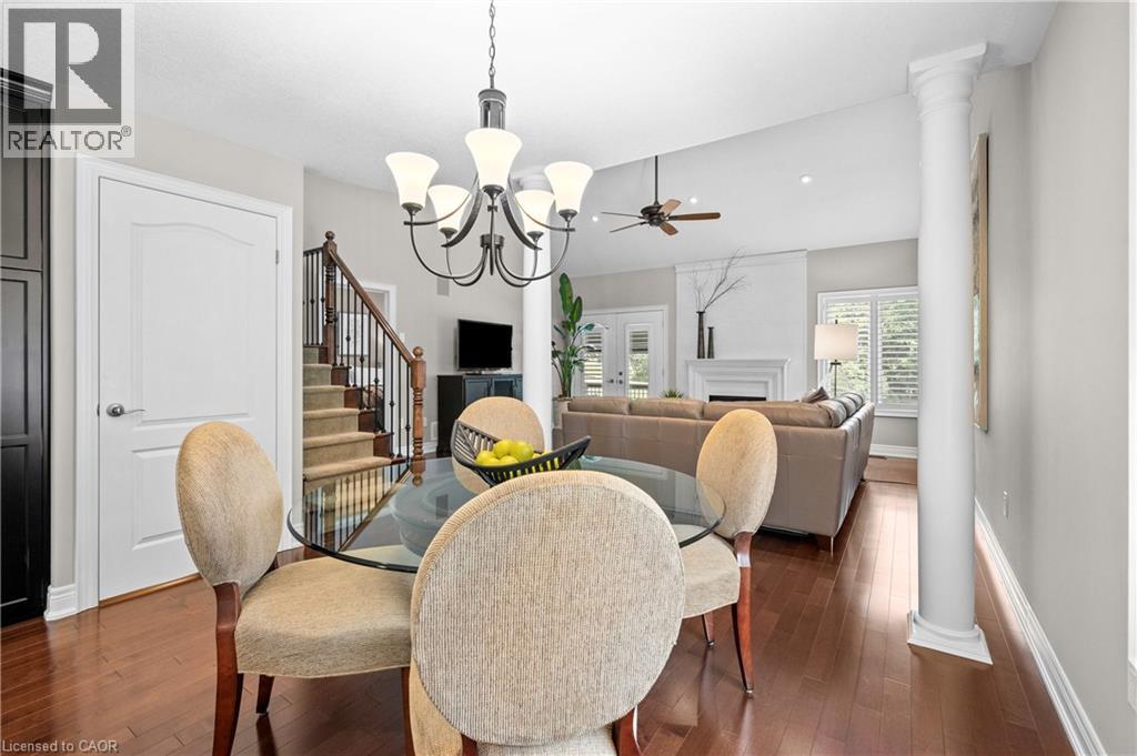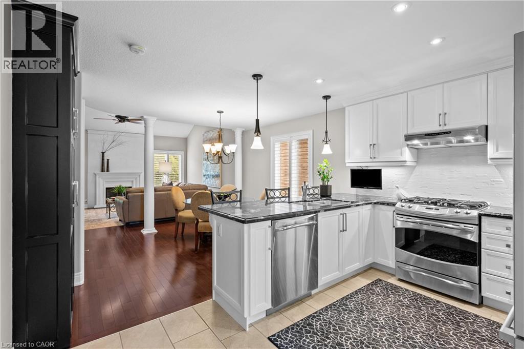 Welcome to The Bungalows of Ancaster South - an exclusive enclave of executive homes tucked away in one of Ancasters most desirable locations. Built by Starward Homes in '12, this immaculate end-unit bungaloft offers 1993 sq ft (above grade), 2 bdrms, 2.5 baths, & the rare advantage of no immediate rear neighbours. A stone entrance & private drive off the main road lead into this meticulously maintained community. The homes striking facade of red brick, stone, & stucco is complemented by a 2 car grg w/ inside entry & 2 add surface parking spots. Step inside through the elegant front door w/ a transom window into a foyer that sets the tone for the rest of the home. The form din rm w/ crown moulding offers the perfect space for entertaining. The open-concept main lvl feat a bright kitch w/ timeless white cabinetry (including bonus dark pantry cabinetry), granite countertops, S/S app, undermount lighting, & breakfast bar seating for 3+. A dinette sits off to the side, framed by circular columns. The liv rm impresses w/ vaulted ceil, a gas FP w/ a cast stone surround & associated mantel, and French drs leading to an oversized raised deck - complete w/ Sunbrella awning for added shade. The main lvl primary bdrm incl crown moulding, a 4-pc spa-like ensuite w/ corner glass shower, soaker tub, granite vanity, & walk-in closet. The main-lvl laund & powder rm add convenience. Upstairs, the loft space overlooks the liv rm & is perfect as a home office, den, or other multi-purpose space. A lrg 2nd bdrm w/ a bonus reading nook & a 3-pc bath completes the upper lvl. Add feat: hrdwd flrs, Cali shutters, rounded drywall corners, elegant lighting, fresh paint, c-vac, updated furn & c-air (21), & an unspoiled bsmt w/ 2 oversized windows & a bath rough-in. Enjoy turn-key living w/ fees incl building insur, ext maint, parking, & access to common elements. Min to parks, shopping, restaurants, golf, highways, & top schools, this home offers upscale living w/ unbeatable amen. (id:51158)