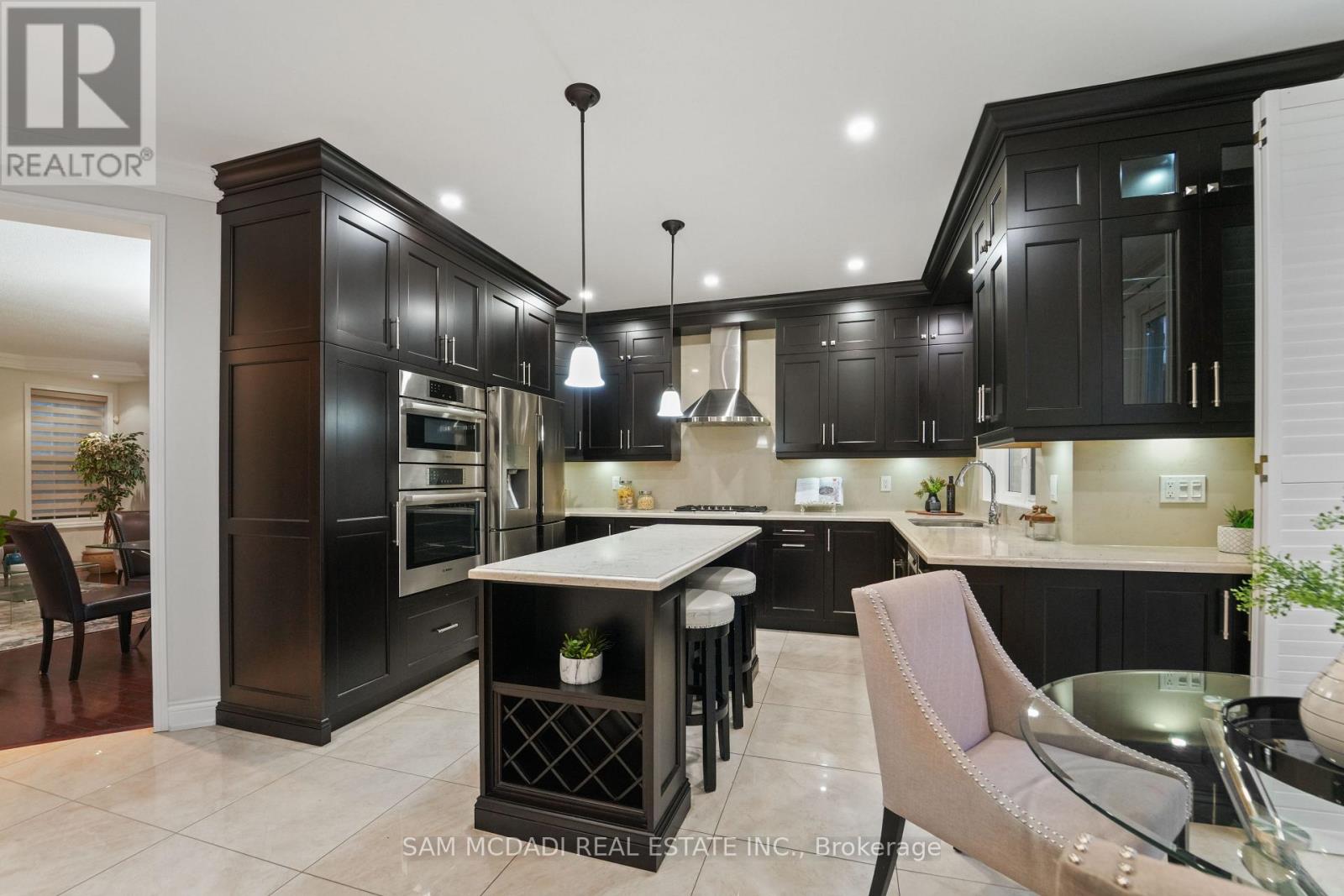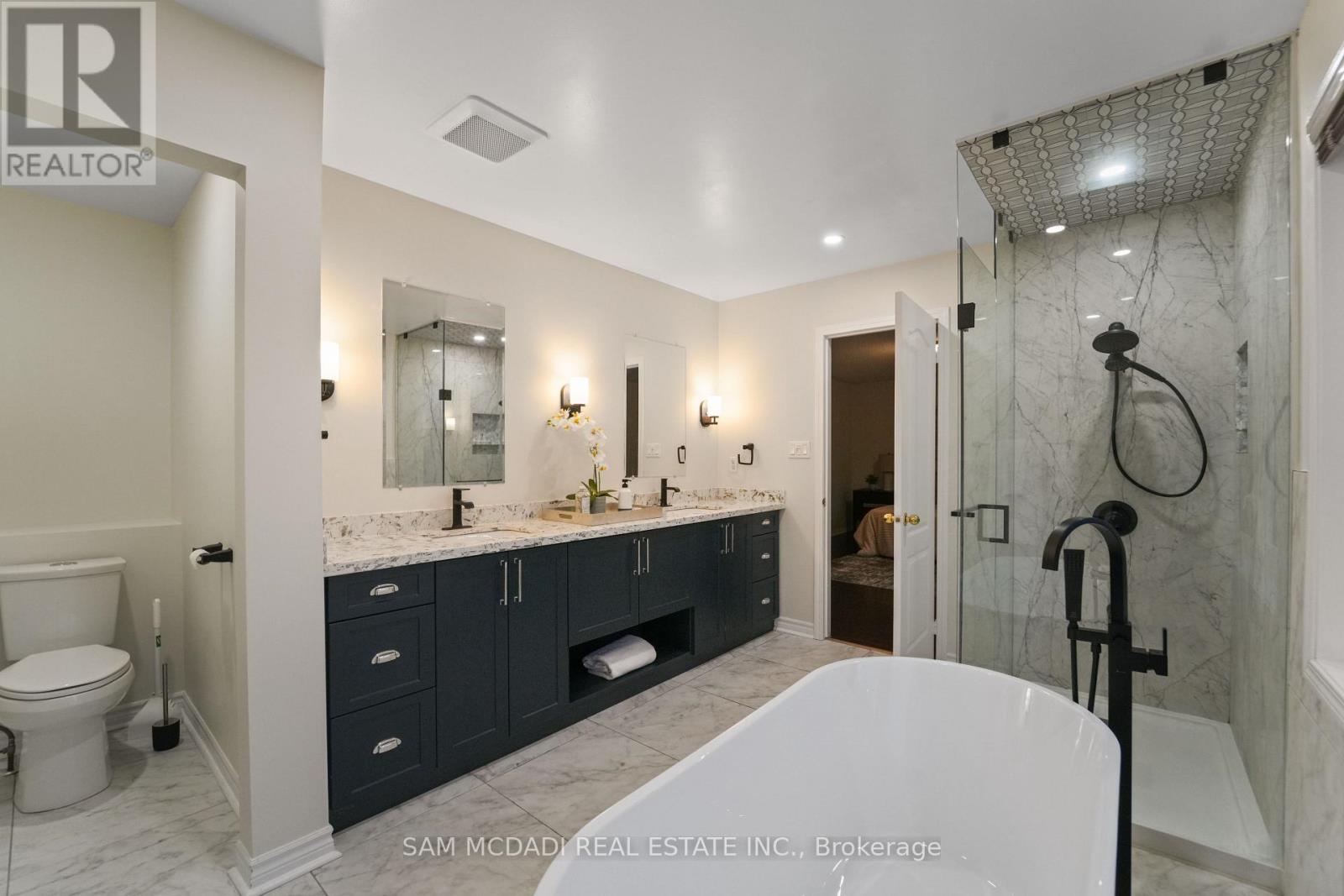 Welcome to this thoughtfully curated residence nestled in Mississauga's family-friendly Lisgar neighbourhood. Designed for modern family living, this detached home offers 4+2 bedrooms, 4 bathrooms, a nearly 4,000 SF of interior living space. A grand open-to-above foyer with 9-ft ceilings sets the tone, complemented by pot lights, tray ceilings with crown moulding and hardwood floors. The custom-designed kitchen is both a culinary haven as it is functional, featuring premium built-in appliances, granite countertops, a centre island, full-height stone backsplash, and elegant cabinetry with pullout pantry, Lazy Susan, wine rack, cutlery organizers, and lit glass display cabinets. Overlooking the backyard, the great room with a gas fireplace provides a warm space for everyday living, while French doors open to a private main-floor office, ideal for a work from home setup. Above, the primary suite offers a walk-in closet and a newly renovated 5-piece ensuite with soaker tub and glass shower. Three additional bedrooms, one with vaulted ceilings, share a renovated bath with a separate shower and enclosed toilet room. A spacious laundry room with sink completes the upper level. The professionally finished basement includes a second kitchen, 3-piece bath, two bedrooms including one with custom built-ins, a den, and a large recreation area with pot lights and hardwood flooring. This flexible space is ideal as an in-law suite or for income potential. Additional highlights include fresh interior paint, a 2016 roof, and newer windows in select bedrooms. Located in a vibrant, family-focused community just minutes from top-rated schools, scenic parks, playgrounds, walking trails, community centres, and Meadowvale Town Centre. Enjoy quick access to Osprey Marsh, Lisgar GO Station and major highways 401, 403, and 407 for easy commuting. This is a rare opportunity to own a beautifully updated, move-in ready home. (id:51158)