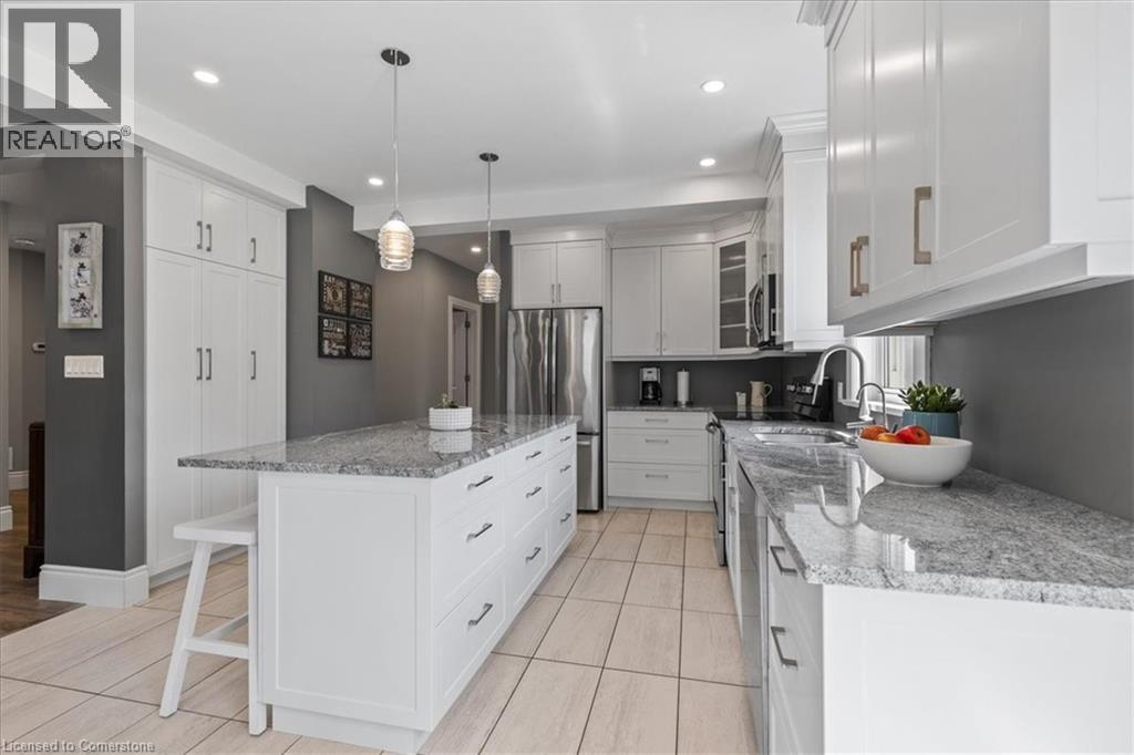 Experience the charm of small-town living in St. Clements — with all the space your growing family needs. This beautifully renovated and meticulously maintained home offers over 2,000 square feet of comfortable, modern living. The open-concept main floor features a bright living and dining area with a stylish combination of quality laminate and ceramic tile flooring. A versatile main floor den provides the perfect spot for a home office, kids’ playroom, or cozy family sitting area. The kitchen is sure to impress with its granite countertops, additional pantry storage, and included stainless steel appliances. Soft-close cabinetry and a large centre island — also with granite — offer functionality and a welcoming space to gather, with seating for four. From the dining area, step through sliding doors to your deep 215-foot backyard — ideal for entertaining, relaxing, or growing your own fresh vegetables. This home offers three separate entrances: a traditional front entrance, a side entry leading into a convenient mudroom, and a third entrance that could serve as private access to the basement. Downstairs, you’ll find a spacious rec room with brand new carpet, a laundry area with washer and dryer included, a generous storage room, and a cold room that doubles as a great space for indoor hockey practice (18’3” x 7’6”). Upstairs, you’ll discover four well-sized bedrooms, all with matching laminate flooring, and a full 4-piece bathroom. A walk-up attic offers bonus storage space. Situated on a 48’ x 215’ lot, the backyard is the perfect setting for BBQs, cozy nights by the fire, and making lasting memories. (id:51158)