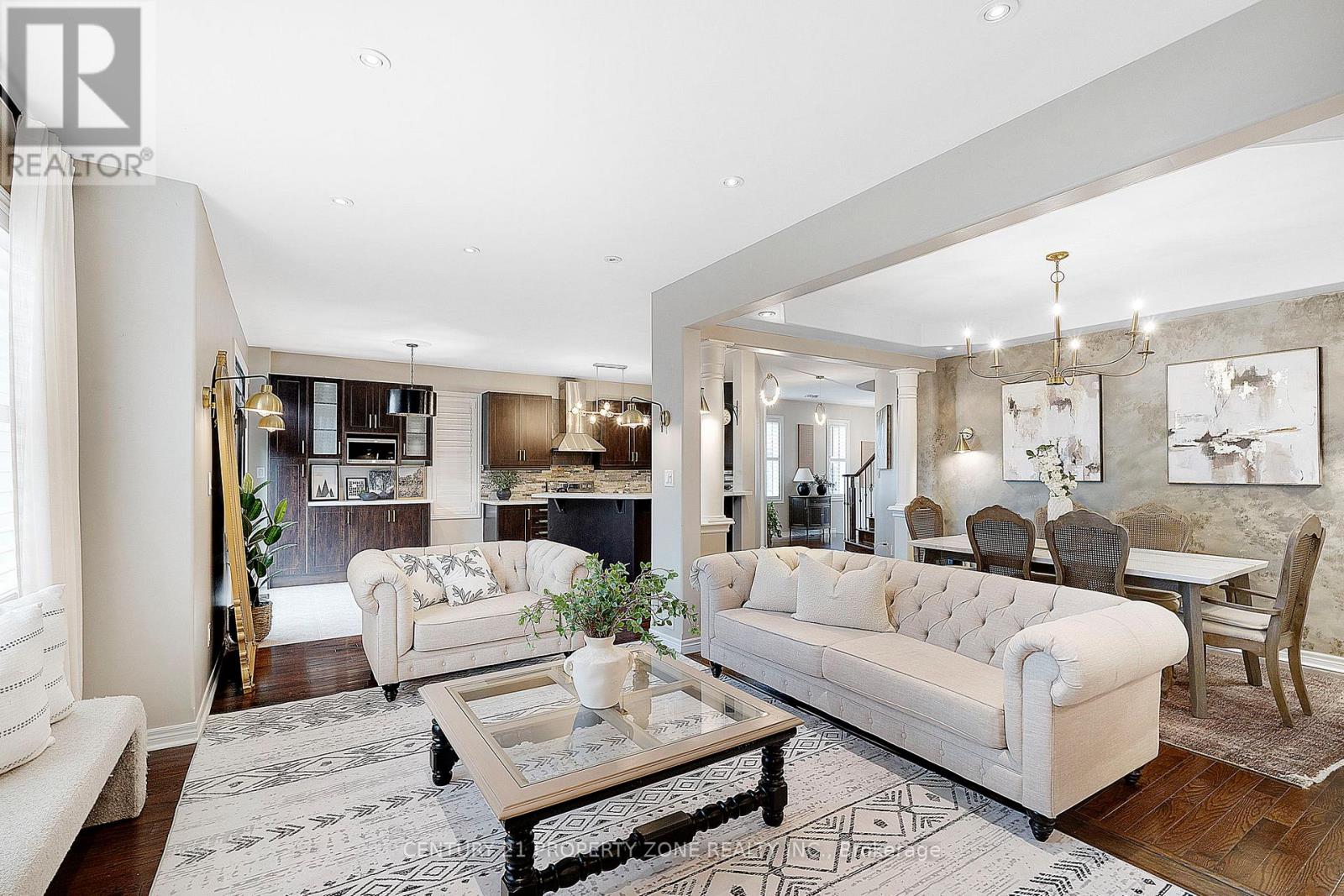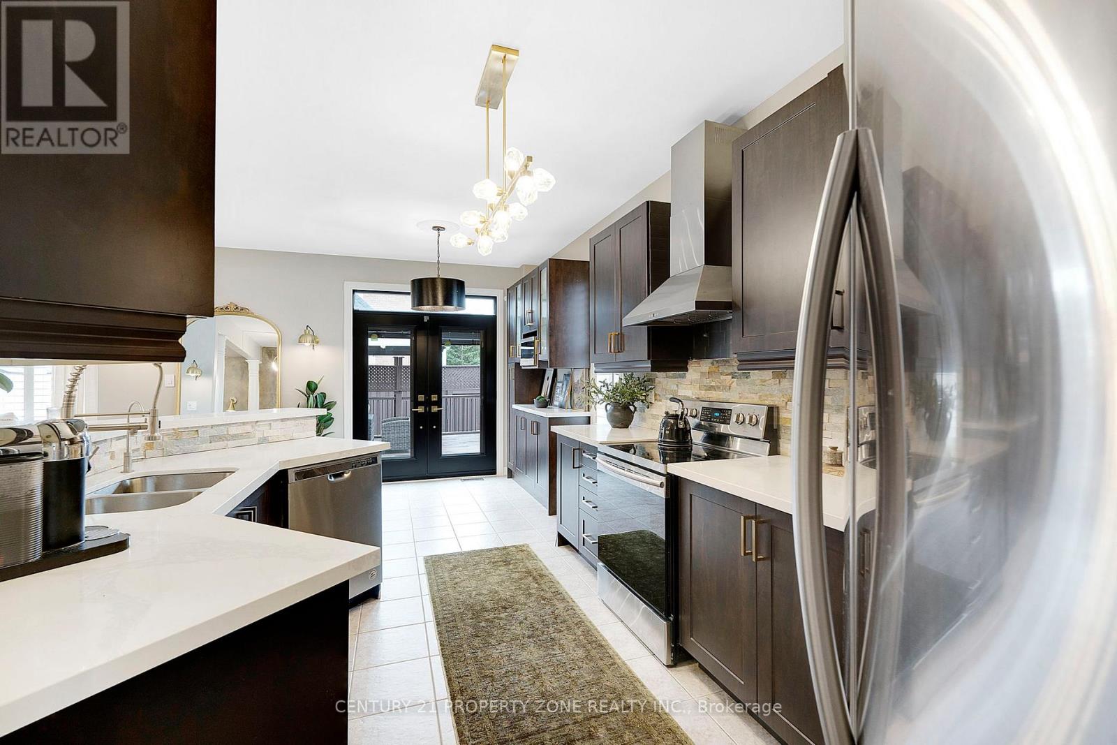 Welcome to this stunning corner-lot detached home in one of Milton's most desirable neighborhoods. This beautiful residence sits proudly on a premium corner lot and features a double car garage, a bright and spacious floor plan, and countless upgrades throughout. As you enter, you're greeted by a welcoming foyer that opens to a separate family room and a large, sun-filled living area, both designed to create the perfect atmosphere for everyday living and entertaining. The formal dining area offers ample space for family dinners and gatherings, while the upgraded extended kitchen stands out with its sleek modern finishes, quartz countertops, stainless steel appliances, and plenty of cabinetry for extra storage. Upstairs, the home continues to impress with a second living area on the 1.5-level floor, ideal as a media room, study space, or cozy retreat. The entire home features California shutters, providing a clean and contemporary touch while maintaining privacy and light control. The upper level hosts four spacious bedrooms, each with custom-designed closets offering thoughtful organization and generous storage. The loft area adds flexibility, perfect for a home office or play area. The fully finished basement expands the living space even further with a modern kitchen, a full bathroom, and an open-concept recreation area - an excellent setup for in-laws, extended family, or guests. Step outside to enjoy the beautifully landscaped backyard, complete with an oversized deck that's perfect for summer barbecues, family gatherings, or simply relaxing outdoors. Ideally located close to top-rated schools, scenic parks, shopping, restaurants, the Milton GO Station, Highway 401, and the upcoming university campus, this home truly offers living with convenience. Recent Upgrades Include : Roof (2024), Furnace & A/C (2023), Updated Carpet (2024), New backyard door, Custom closets, Coffered ceilings. (id:51158)