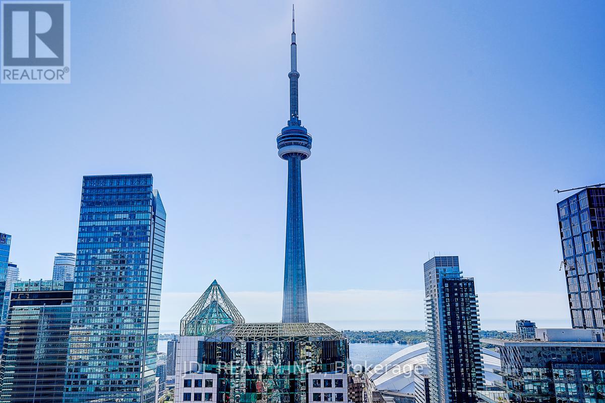 This elegant one-bedroom plus den unit is situated in the prestigious PJ Condos, located in one of the most sought-after neighbourhoods! Perched on a high floor, this modern, open-concept suite boasts 9-ft ceilings and large floor-to-ceiling windows offering unobstructed, stunning south-facing views of the CN Tower and Lake Ontario. Enjoy a host of luxurious amenities, including an outdoor pool with hot tub, sundeck, terrace with BBQ area, private party kitchenette and dining room, fitness centre, and business centre. With theatres, hospitals, restaurants, shops, and TIFF right at your doorstep, you're just minutes away from the Financial District, P.A.T.H., subway, streetcars, and more! **EXTRAS** Stainless steel appliances: fridge, stove, B/I dishwasher, microwave. washer and dryer, light fixtures, professionally installed window coverings, and Den with a sliding door can be used as 2nd Bedroom or office. (id:51158)